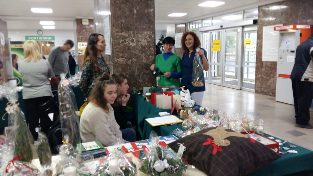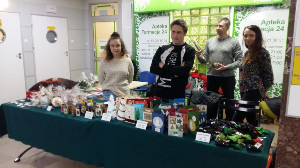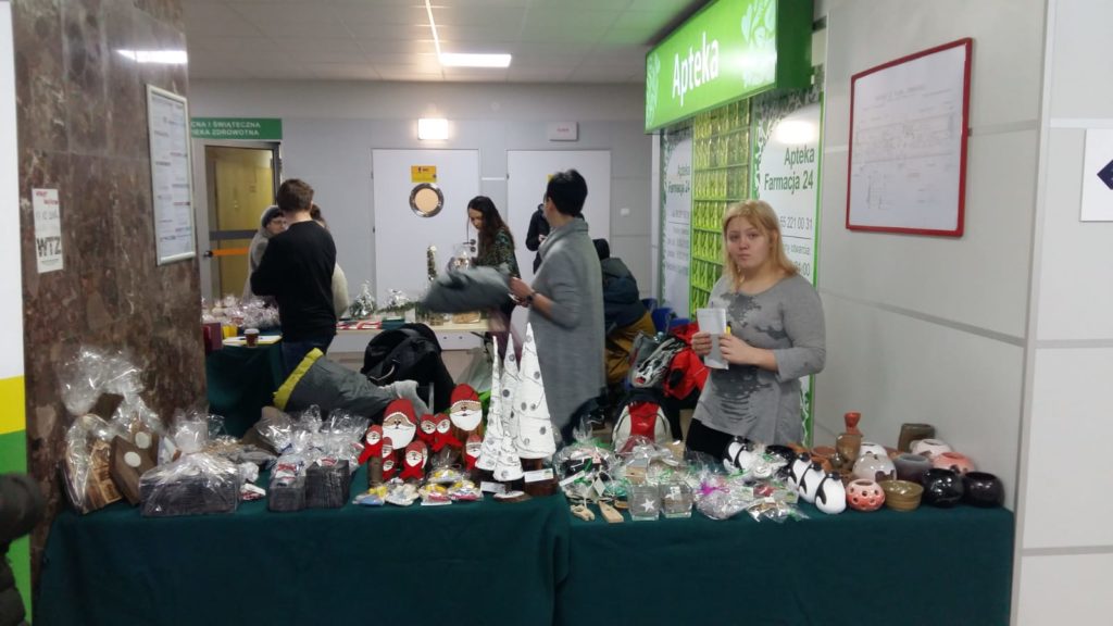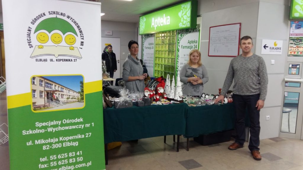W dniu 14 grudnia 2018r.  nauczyciele z uczniami naszego Ośrodka zorganizowali kiermasz świąteczny w Wojewódzkim Szpitalu Zespolonym w Elblągu.Na stoisku znaleźć można było wyroby z drewna, tkaniny, ceramiki, masy solnej,zimnej porcelany, filcu, skóry… Mieliśmy przepiękne stroiki, kartki świąteczne, choinki, bombki, mikołaje, renifery -czyli dla każdego coś miłego.Nasze rękodzieło cieszyło się sporym zainteresowaniem, a my spotkaliśmy się z bardzo miłym przyjęciem personelu szpitala. Otrzymaliśmy także zaproszenie na organizację kiermaszu wielkanocnego. Dziękujemy wszystkim osobom zaangażowanym w przygotowanie naszego stoiska.