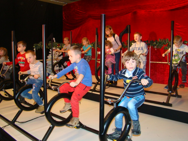 17 grudnia przedszkolaki pojechały do Gdańska do Wielkiej Fabryki Elfów. Atrakcji było co niemiara: zabawy na dmuchańcach, układanie puzzli, zabawy multimedialne, gra na bębnach, poczta, jazda na czarodziejskich rowerach. Nadszedł wreszcie wyczekiwany przez wszystkie dzieci moment, spotkanie ze Św. Mikołajem. Mikołaj znalazł czas dla każdego dziecka, wysłuchał najskrytszych marzeń. Teraz będziemy z niecierpliwością oczekiwać na ten świąteczny wieczór wigilijny, z nadzieją, że wszystkie marzenia się spełnią…