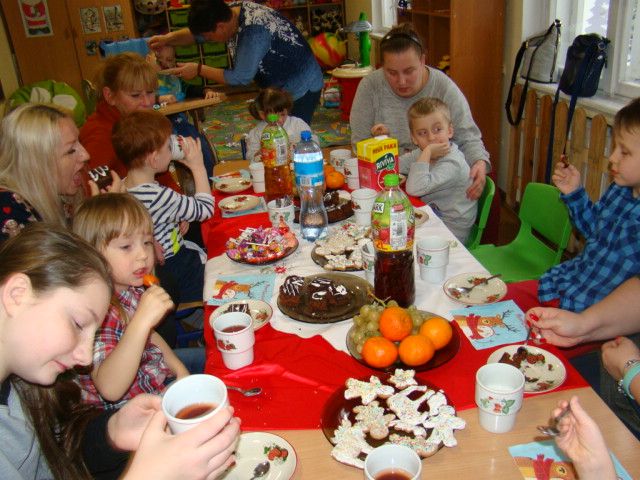 przygotowanego stołu, a następnie częstowali się świątecznymi