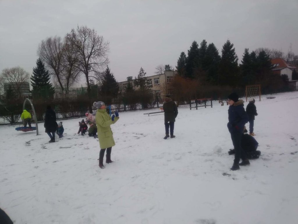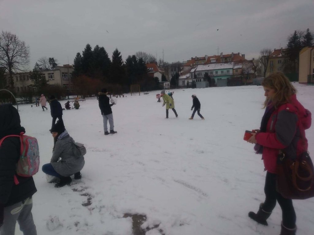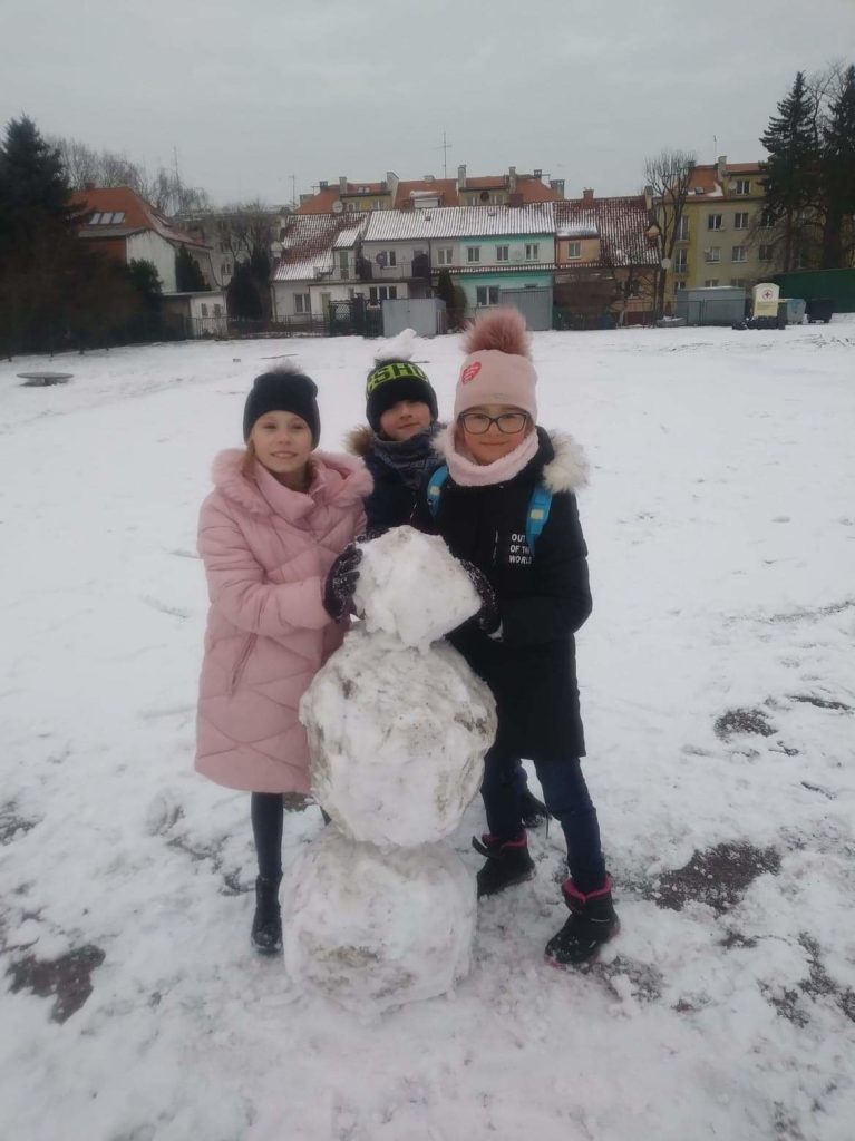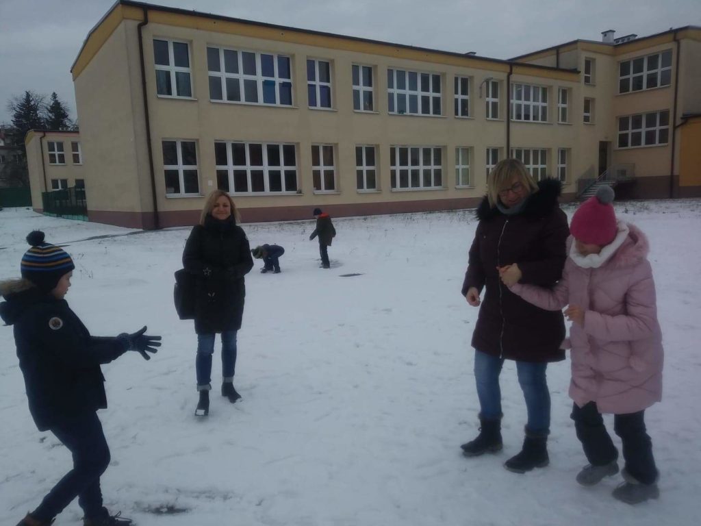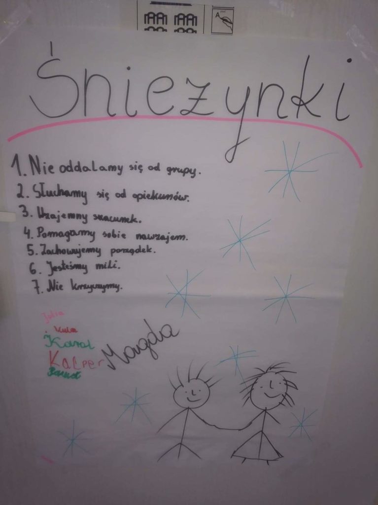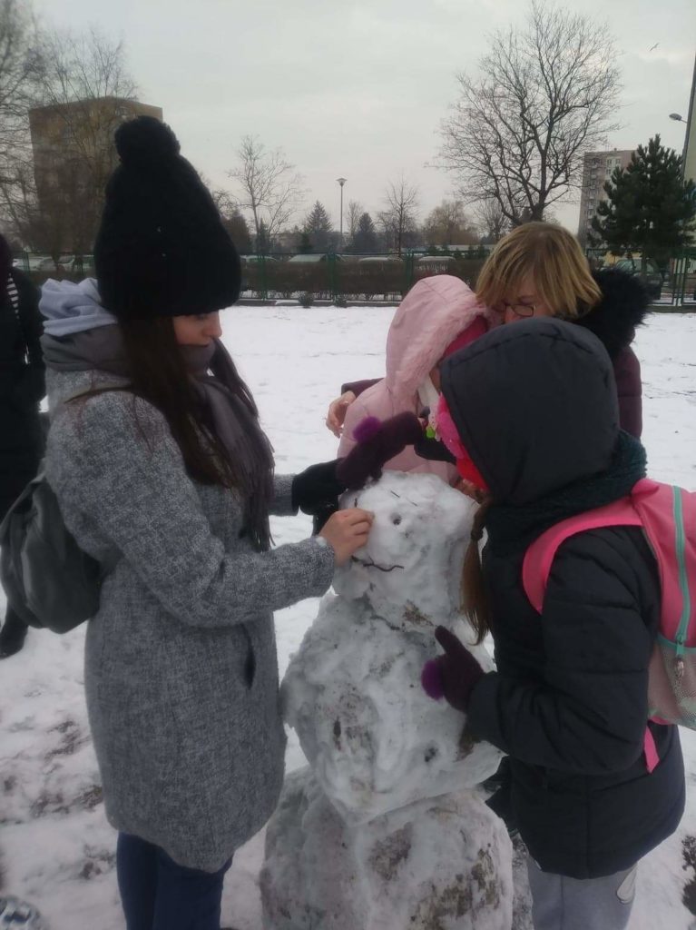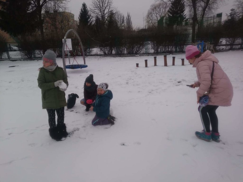 Pierwszy dzień rozpoczęliśmy zabawami integracyjnymi. Stworzyliśmy własne kodeksy grupowe. Następnie Pan policjant przypomniał nam zasady bezpiecznego zachowania się podczas ferii zimowych. Kolejnym punktem programu było wyjście do kina Światowid na projekcję filmu „Ralph Demolka”. Wracając każda grupa ulepiła swojego bałwana. W sali przećwiczyliśmy udzielanie pierwszej pomocy przedmedycznej.