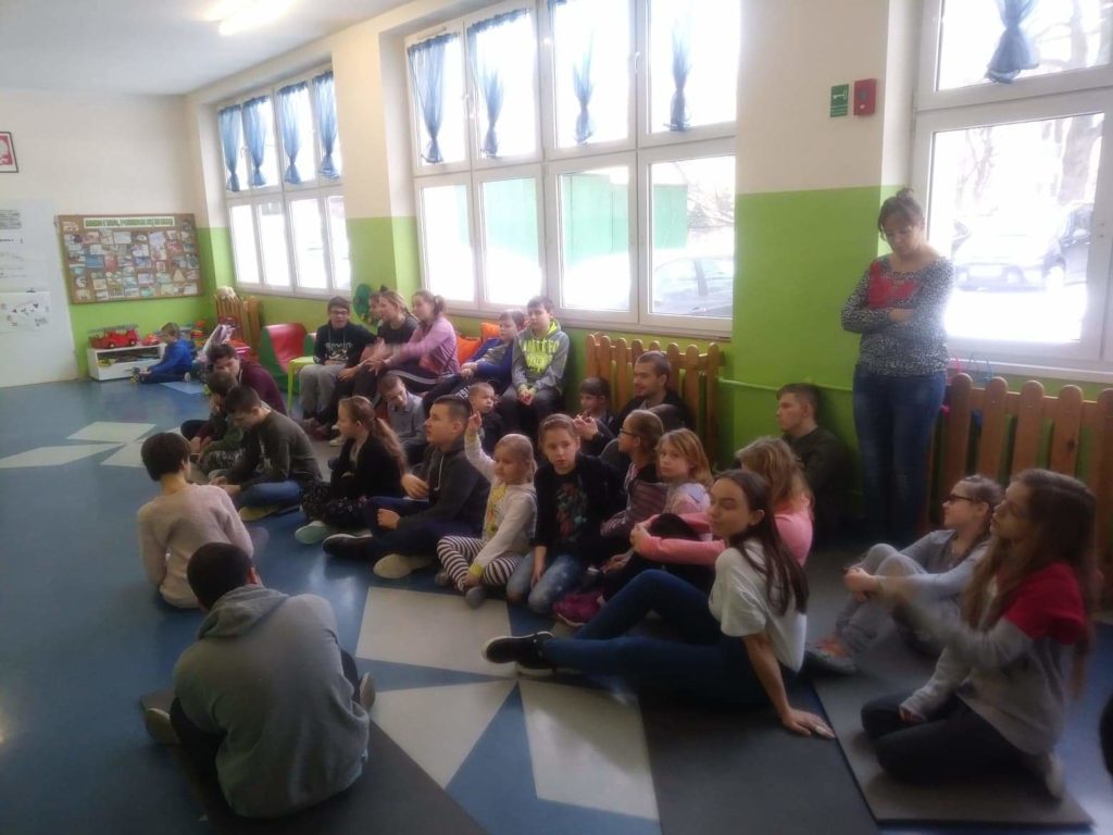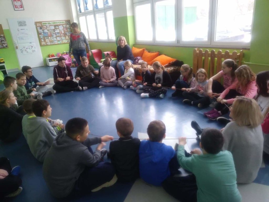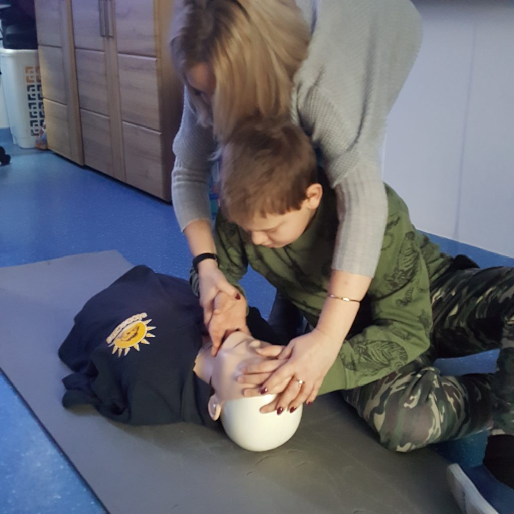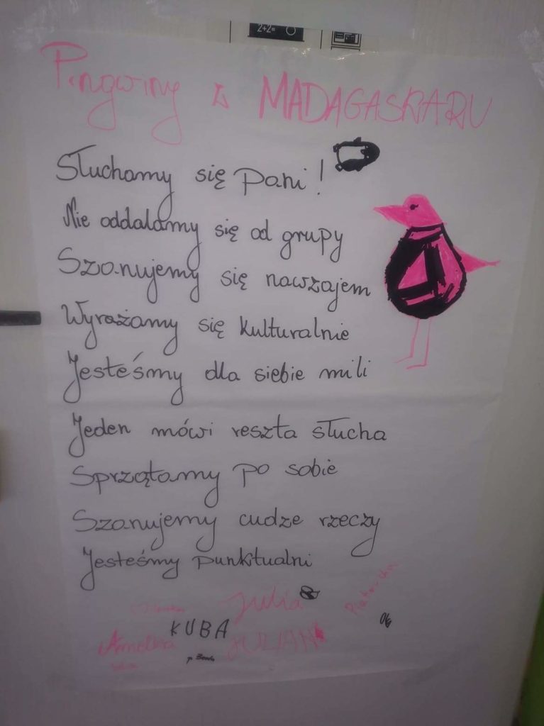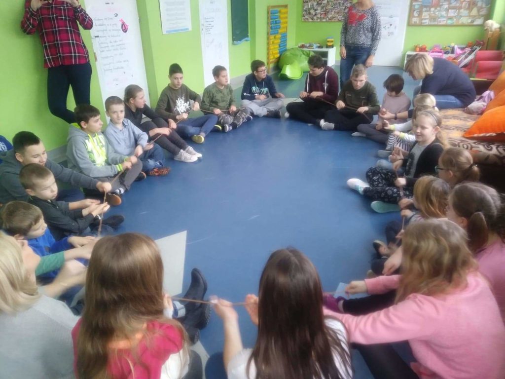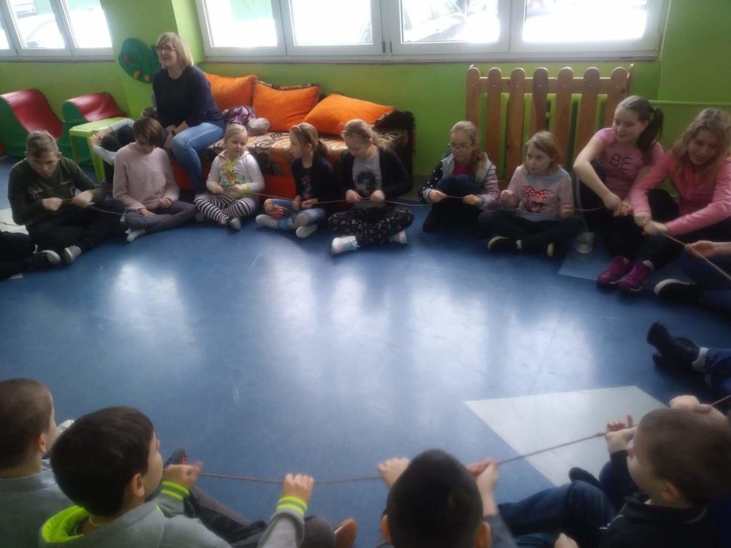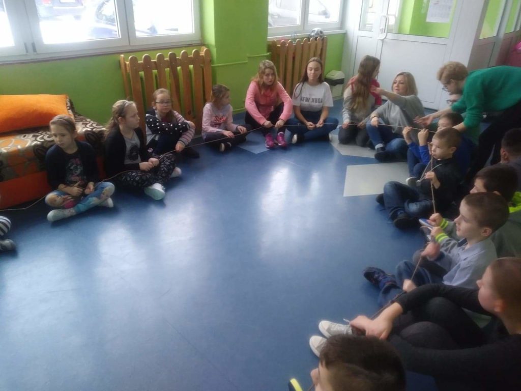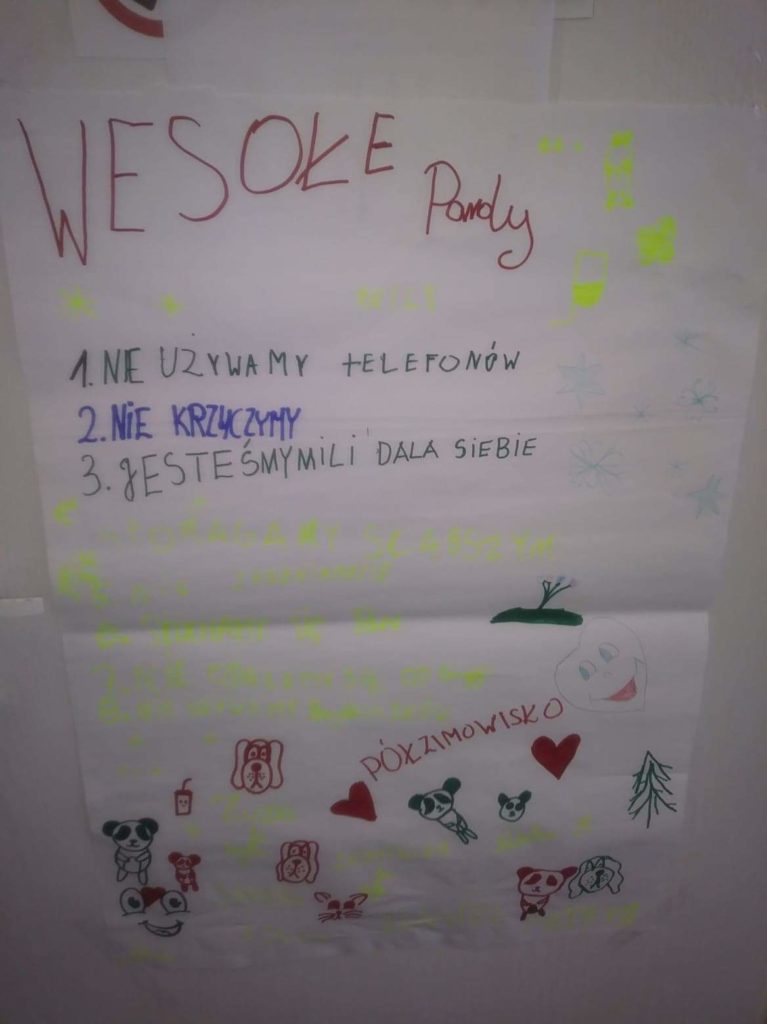 Pierwszy dzień rozpoczęliśmy zabawami integracyjnymi. Stworzyliśmy własne kodeksy grupowe. Następnie Pan policjant przypomniał nam zasady bezpiecznego zachowania się podczas ferii zimowych. Kolejnym punktem programu było wyjście do kina Światowid na projekcję filmu „Ralph Demolka”. Wracając każda grupa ulepiła swojego bałwana. W sali przećwiczyliśmy udzielanie pierwszej pomocy przedmedycznej.