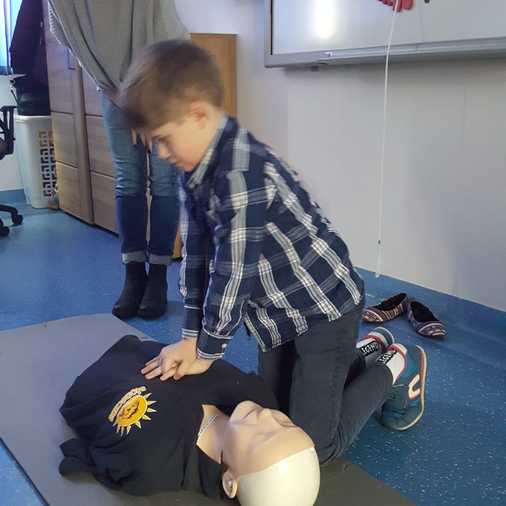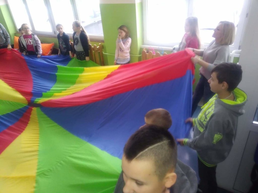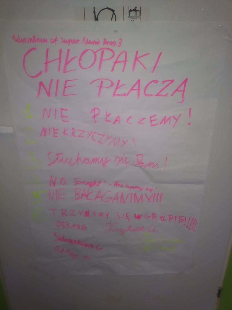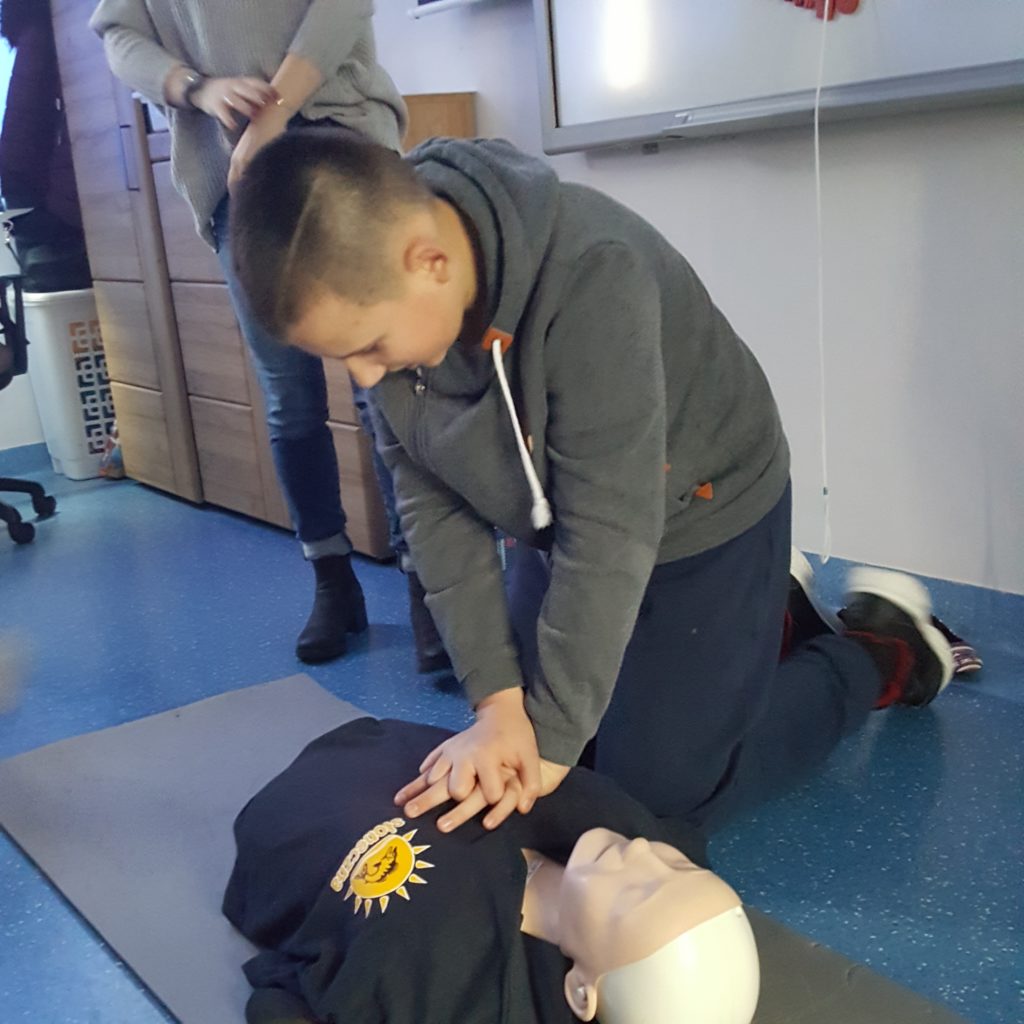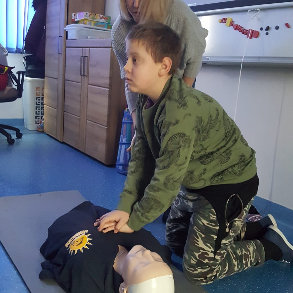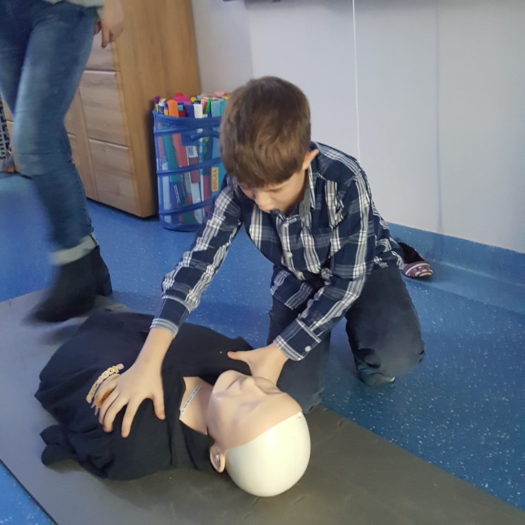 Pierwszy dzień rozpoczęliśmy zabawami integracyjnymi. Stworzyliśmy własne kodeksy grupowe. Następnie Pan policjant przypomniał nam zasady bezpiecznego zachowania się podczas ferii zimowych. Kolejnym punktem programu było wyjście do kina Światowid na projekcję filmu „Ralph Demolka”. Wracając każda grupa ulepiła swojego bałwana. W sali przećwiczyliśmy udzielanie pierwszej pomocy przedmedycznej.