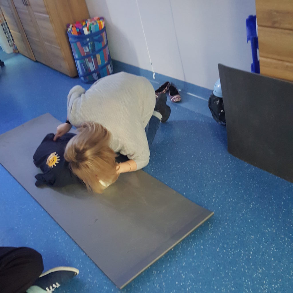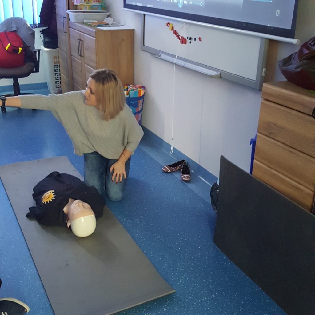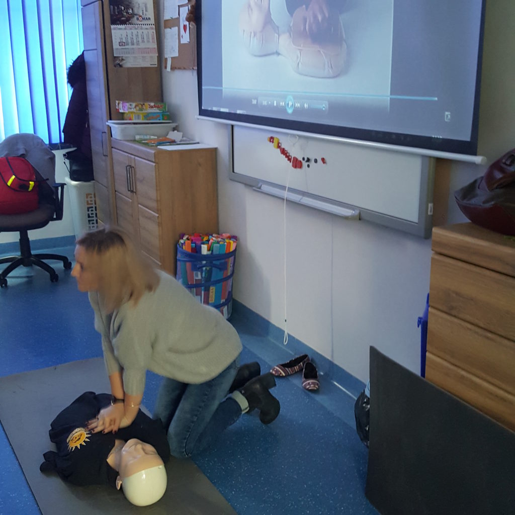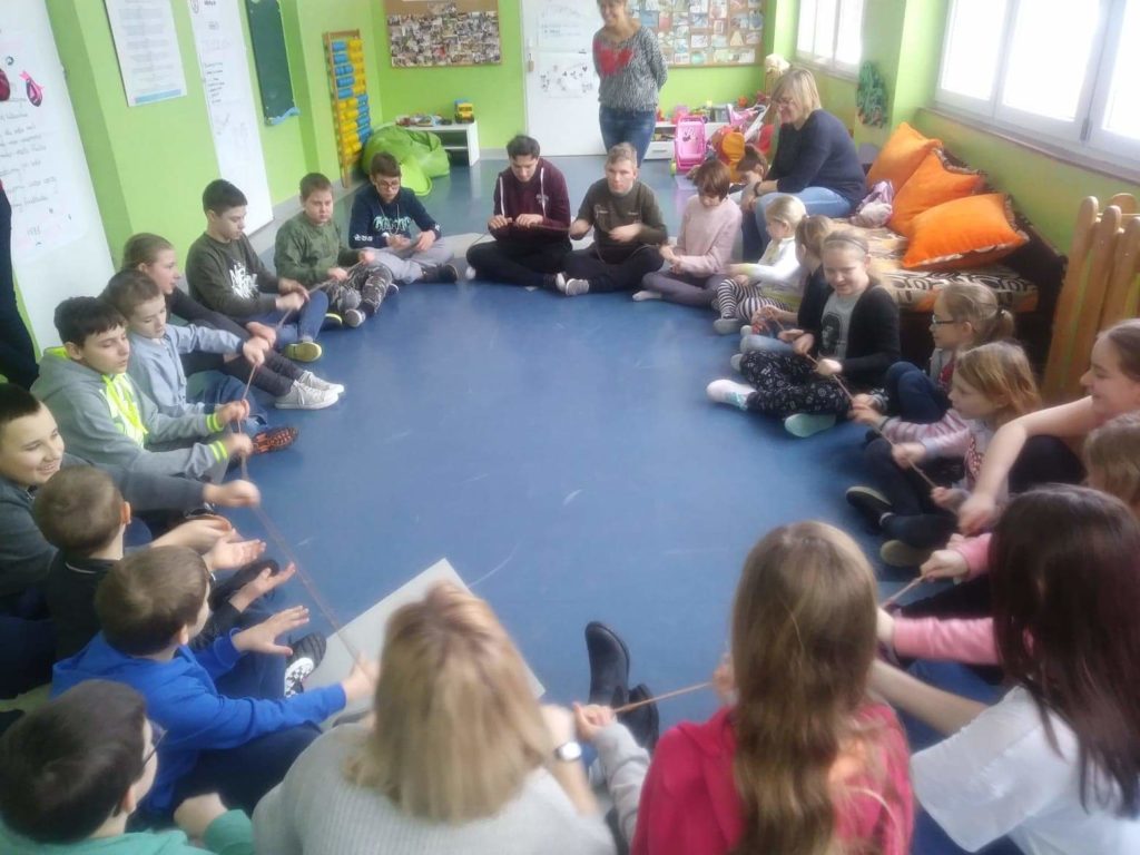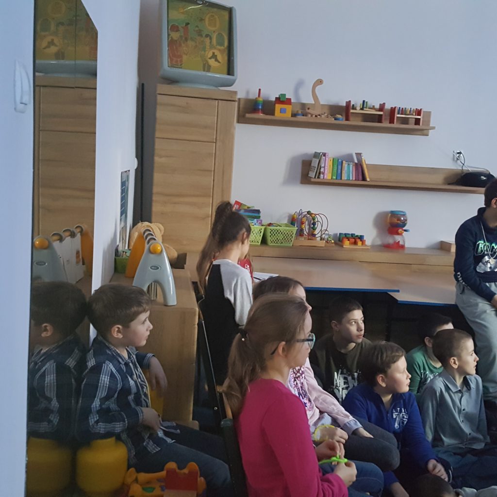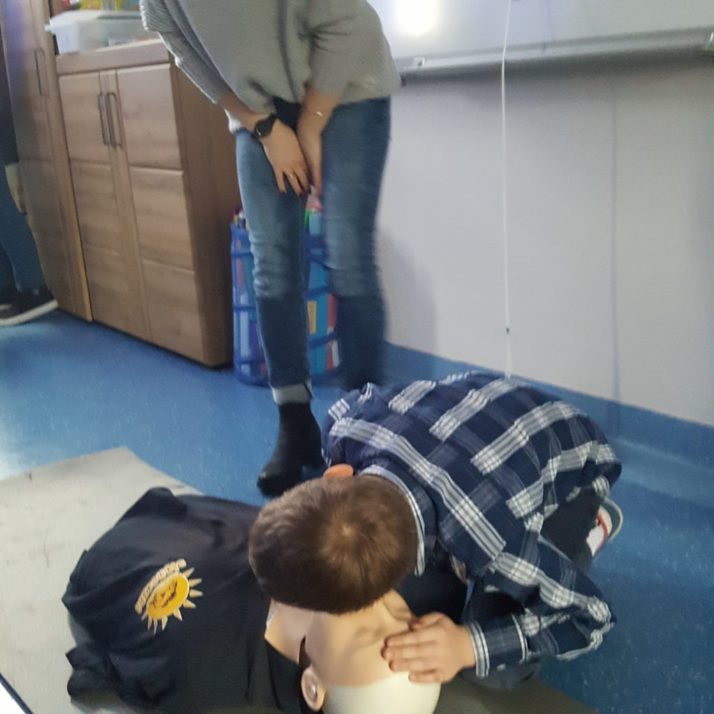 Pierwszy dzień rozpoczęliśmy zabawami integracyjnymi. Stworzyliśmy własne kodeksy grupowe. Następnie Pan policjant przypomniał nam zasady bezpiecznego zachowania się podczas ferii zimowych. Kolejnym punktem programu było wyjście do kina Światowid na projekcję filmu „Ralph Demolka”. Wracając każda grupa ulepiła swojego bałwana. W sali przećwiczyliśmy udzielanie pierwszej pomocy przedmedycznej.