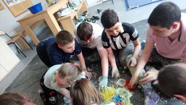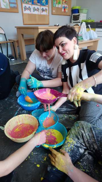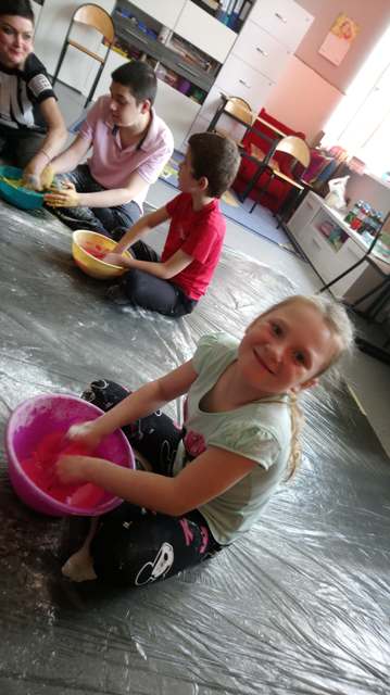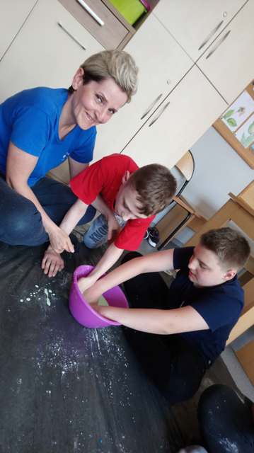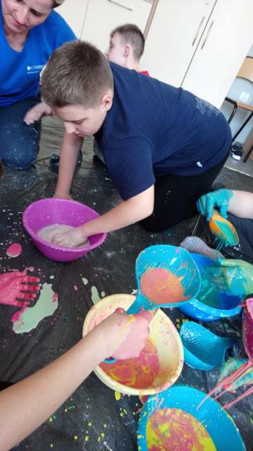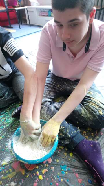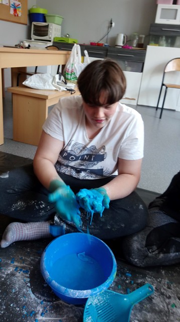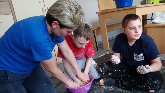 Dziś w naszym Ośrodku odbyły się warsztaty, które przeniosły wszystkich do krainy zmysłów. W zajęciach uczestniczyli uczniowie i nauczyciele naszej placówki. Podczas spotkania wszyscy mieli możliwość zanurzyć się w kolorowej cieczy nienewtonowskiej, następnie stworzyć przepiękny dywan sensoryczny z barwnej ciastoliny ozdobiony kolorowym ryżem i ziarnami różnej wielkości. Uczniowie wykorzystali materiały plastyczne, które samodzielnie przygotowali wyłącznie z produktów spożywczych. Było pachnąco i kolorowo.