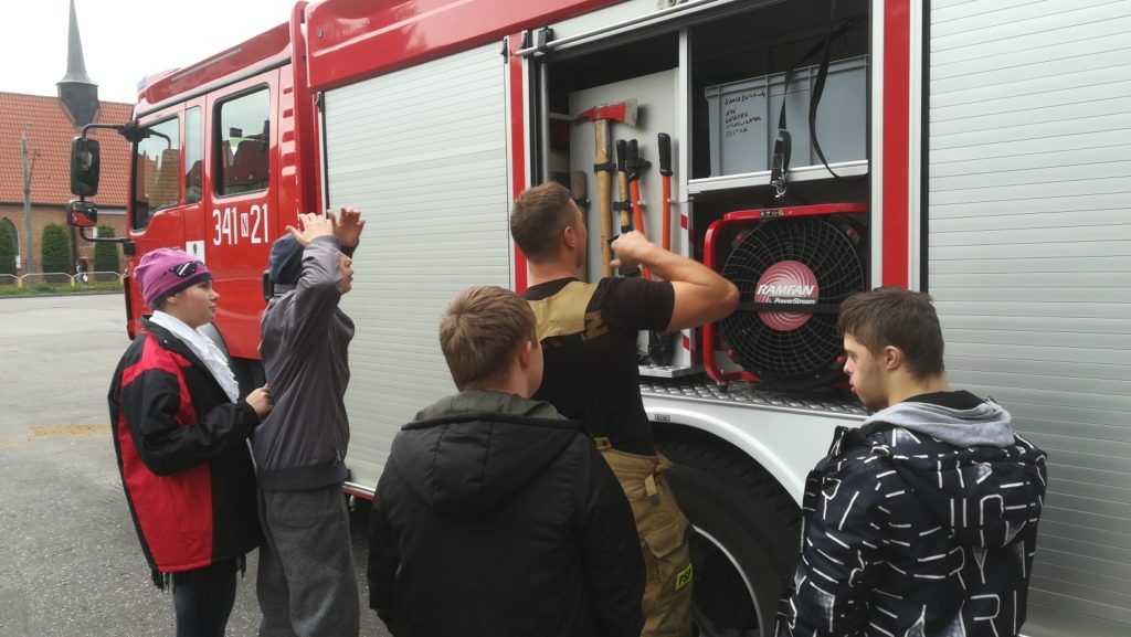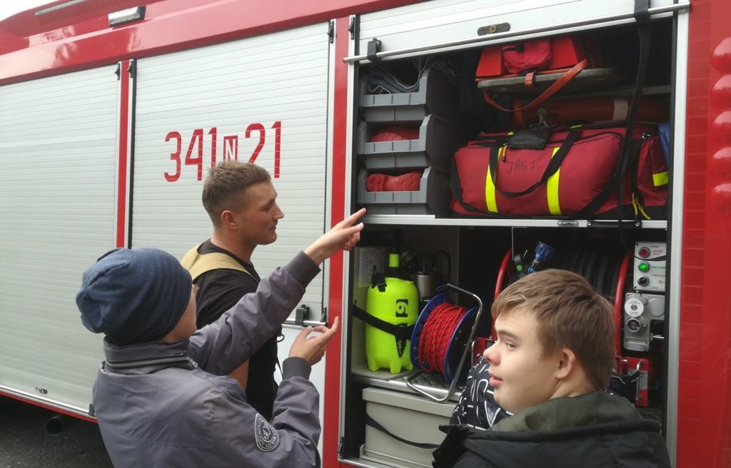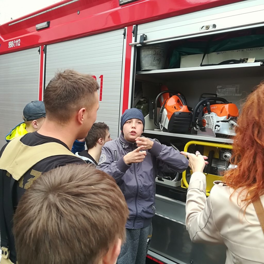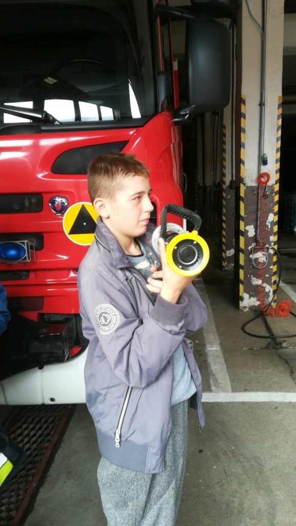 W dniu 18 października br. uczniowie kl VIII ZET odwiedzili strażaków z Jednostki Ratowniczo – Gaśniczej PSP przy ul. Bema. Celem spotkania było przybliżenie uczniom specyfiki pracy straży pożarnej oraz zasad bezpiecznego zachowania się w domu, szkole i w miejscu publicznym. Strażacy zaprezentowali dzieciom wyposażenie wozu bojowego, a także sprzęt niezbędny podczas akcji ratowniczych. Uczniowie przez chwilę mogli wcielić się w rolę strażaka zakładając hełm oraz siedząc w kabinie wozu strażackiego. Podczas spotkania uczniowie uzyskali cenną wiedzę dotyczącą niebezpiecznej i odpowiedzialnej pracy straży pożarnej. Spotkanie odbyło się w ramach akcji „Bezpieczny uczeń”. Na zakończenie dzieci podziękowały za miłe i interesujące spotkanie oraz niezapomniane przeżycia.