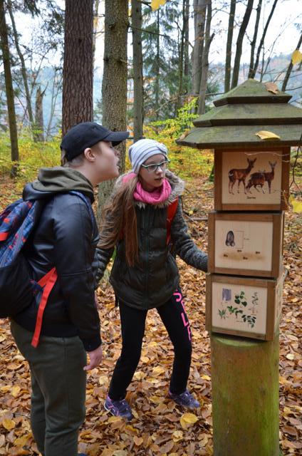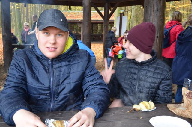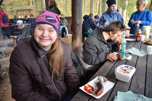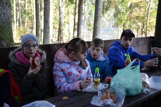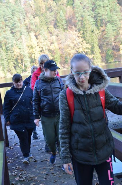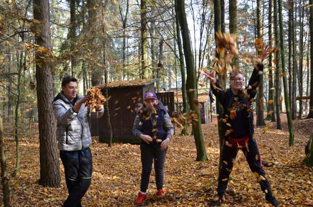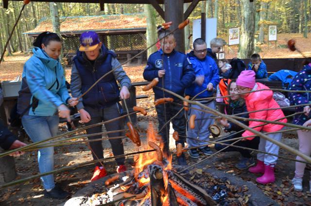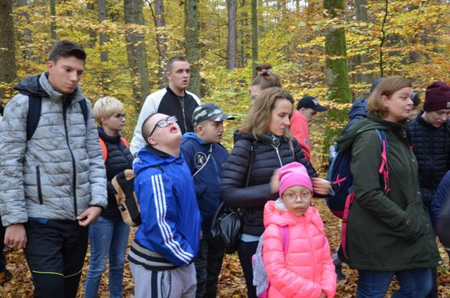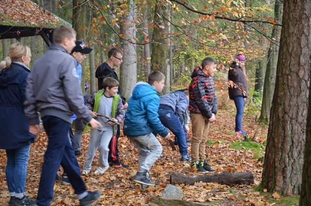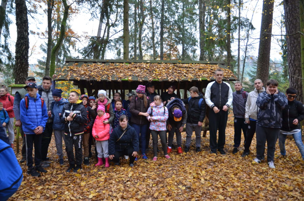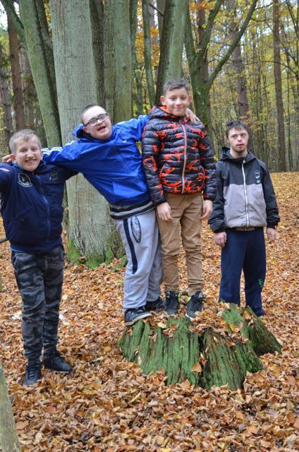 W piękny, słoneczny październikowy poniedziałek uczniowie zespołów edukacyjno- terapeutycznych odwiedzili leśnictwo Zaporowo.  Pan Leśniczy Antoni Czyż  poprowadził nas ścieżką edukacyjną  „Leśne prawdy” nad jeziorem Pierzchalskim opowiadając o tajnikach i sekretach lasu, roślinach i zwierzętach tam żyjących. Nie zabrakło też trochę  historii i kilku informacji o mieszkających kiedyś na tych terenach Wikingach oraz pozostałych po nich kurhanach. Maszerując wyznaczonymi trasami, słuchaliśmy szeleszczących pod nogami liści. Oglądaliśmy  ciekawe miejsca np .paśniki, karmniki, poidła dla zwierząt oraz miejsca, gdzie żerują bobry. Celem naszej wędrówki była urocza polana nad brzegiem jeziora i ognisko, na które największe łasuchy czekały od wyjazdu z Elbląga. Kiełbaski i pieczone ziemniaki zniknęły w mgnieniu spadającego liścia. Zabawy, gonitwy, spacery, rzuty szyszką  do celu, trochę gimnastyki na powalonych drzewach, odpoczynek na tarasie widokowym a także zbieranie grzybów, wiadomo że tylko jadalnych, dopełniło ten udany wyjazd.