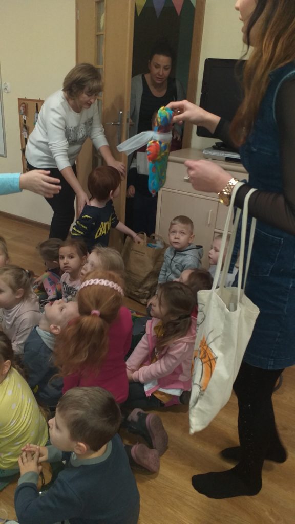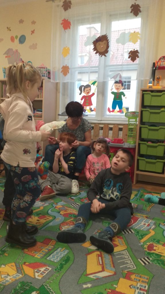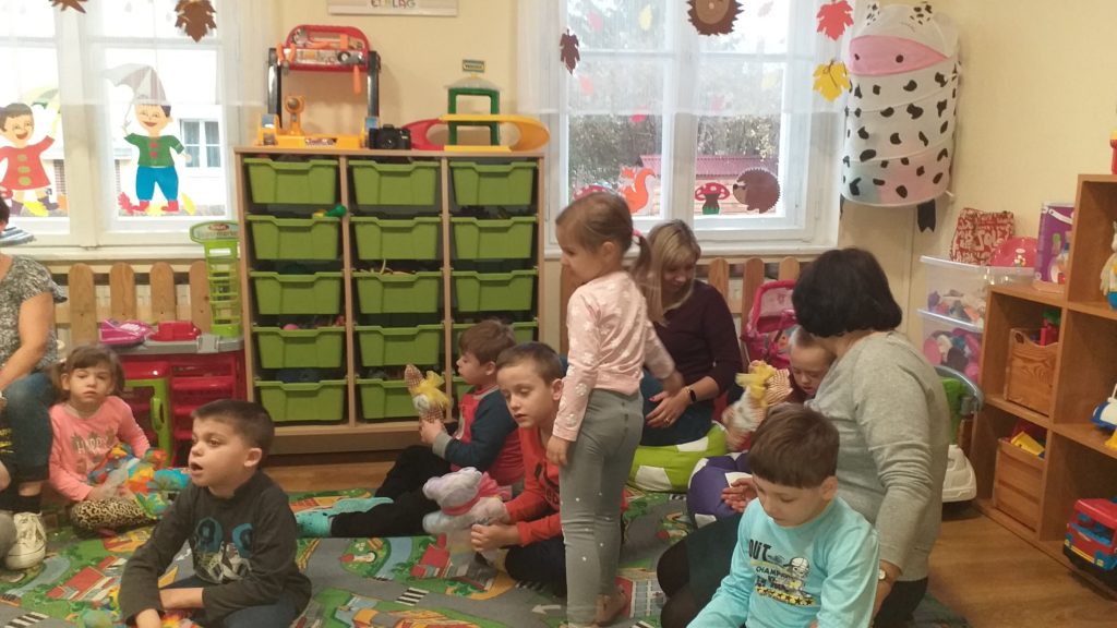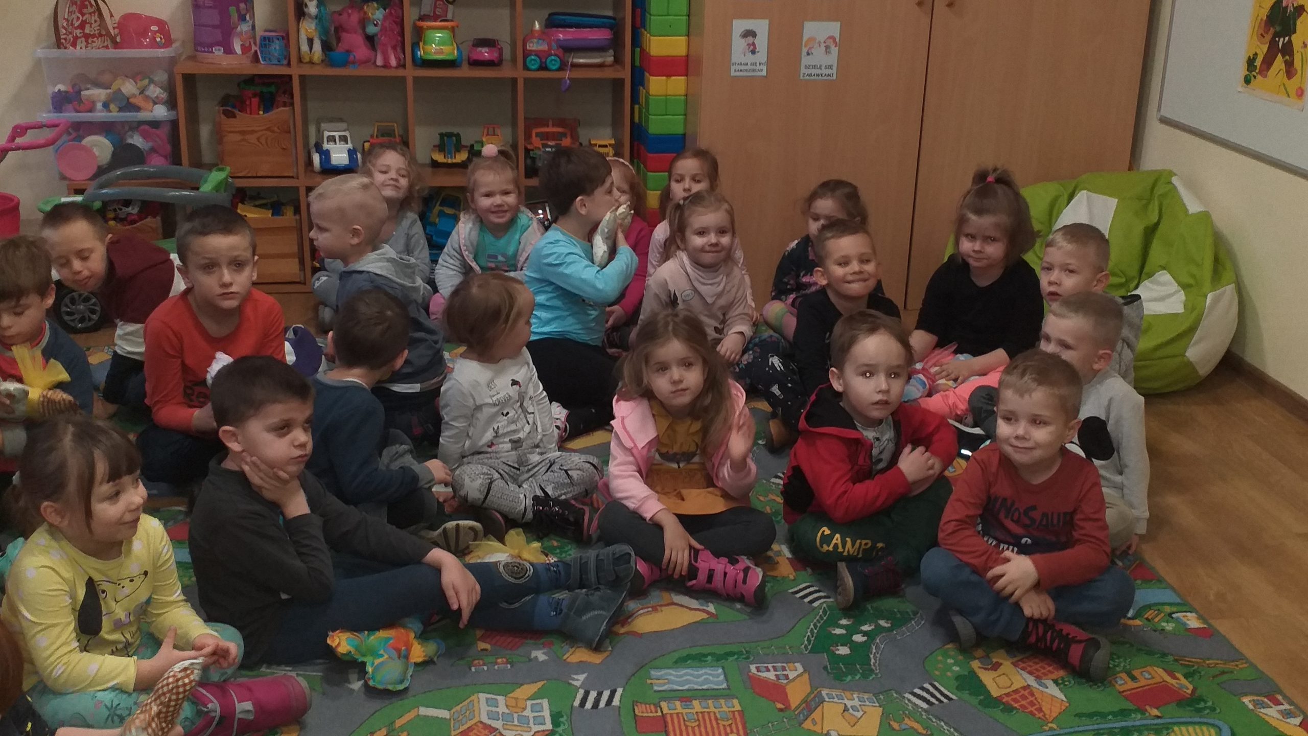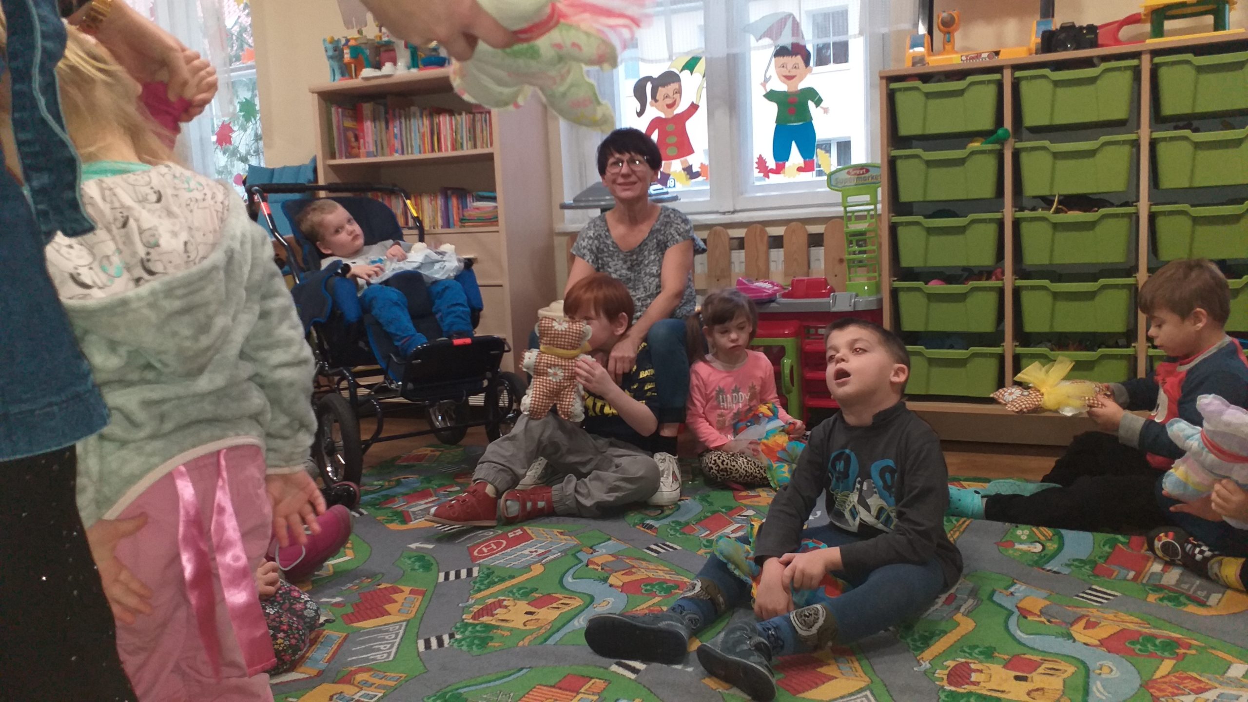 25 listopada obchodzimy święto pluszowych misiów. Dzieci z punktu przedszkolnego bawiły się w tym dniu przy piosenkach o misiu, wyszukiwały ukryte misie wśród zabawek, ustawiały misie w pociąg, dzieliły na małe i duże oraz słuchały bajki o „Złotowłosej i trzech misiach”. Uwieńczeniem dnia była wizyta sympatycznych przedszkolaków z przedszkola nr 33, które wręczyły naszym dzieciom misie uszyte z kolorowego materiału. Podziękowaliśmy gościom oklaskami i słodkościami.