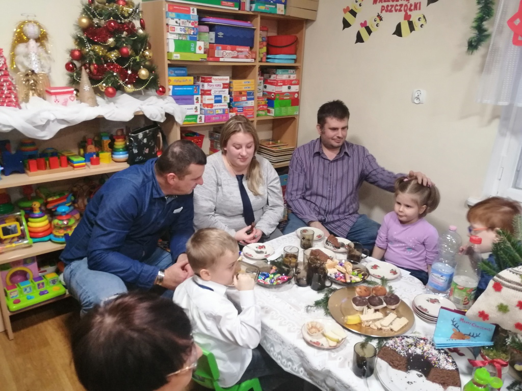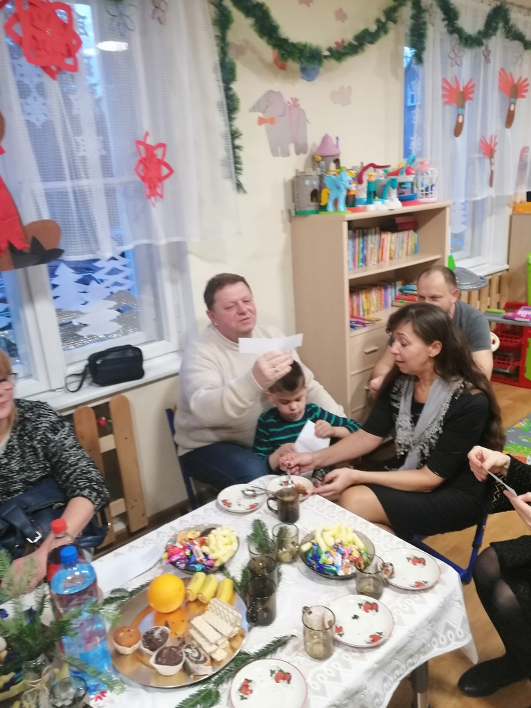 Czas Bożego Narodzenia. „Waleczne pszczółki” zaprosiły swoich rodziców na świąteczne spotkanie, które przebiegało w radosnej atmosferze. Dzieci zaprezentowały krótką część artystyczną, a następnie zaprosiły rodziców do stworzenia wspólnego stroika. Rodzice i dziadkowie pomagali swoim pociechom w tworzeniu i w wyniku tego powstały przepiękne świąteczne dekoracje. Zagraliśmy również na Bum Bum Rurkach kolędę „Przybieżeli do Betlejem”. Świąteczne spotkanie zakończyliśmy wspólnym biesiadowaniem przy domowych ciastach przygotowanych przez rodziców.