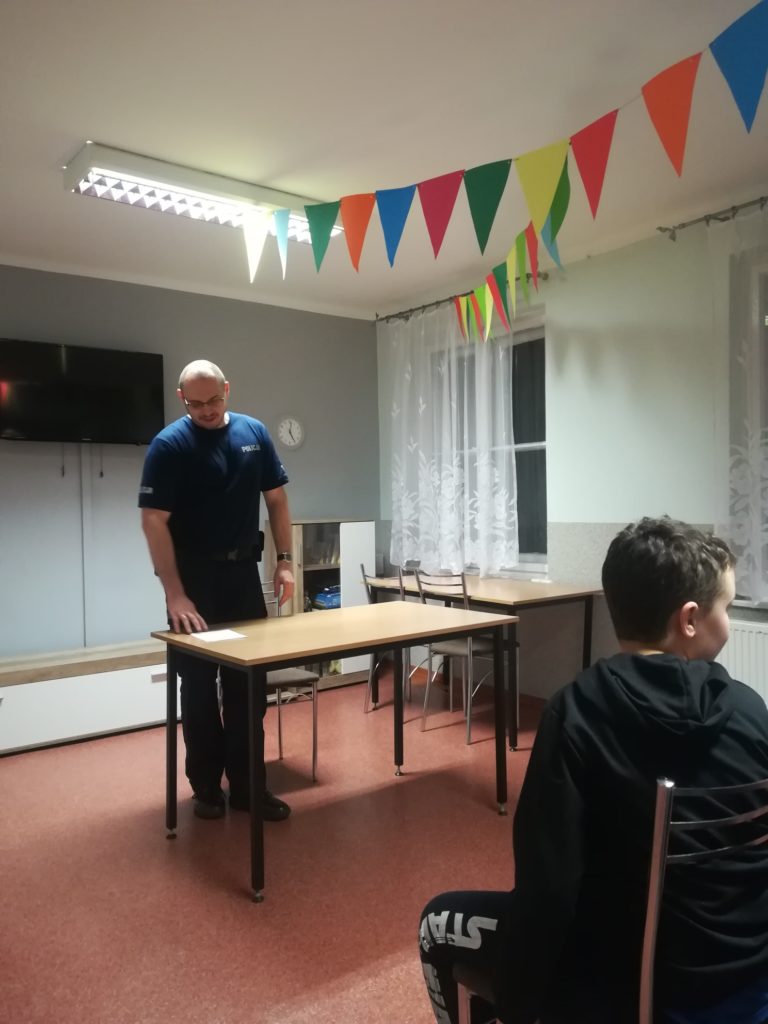 13 stycznia w Internacie odbyły się zajęcia z policjantem dzielnicowym z KMP w Elblągu p. Patrykiem Kiedrowskim. Spotkanie dotyczyło m.in. profilaktyki i zagrożeń związanych z zażywaniem substancji psychoaktywnych, palenia papierosów i spożywania alkoholu.