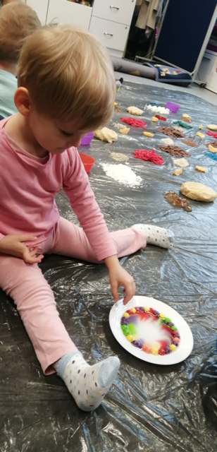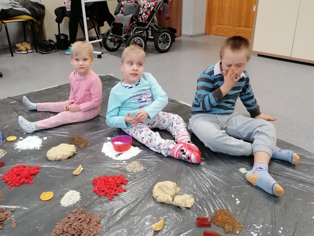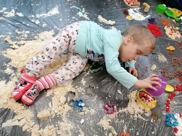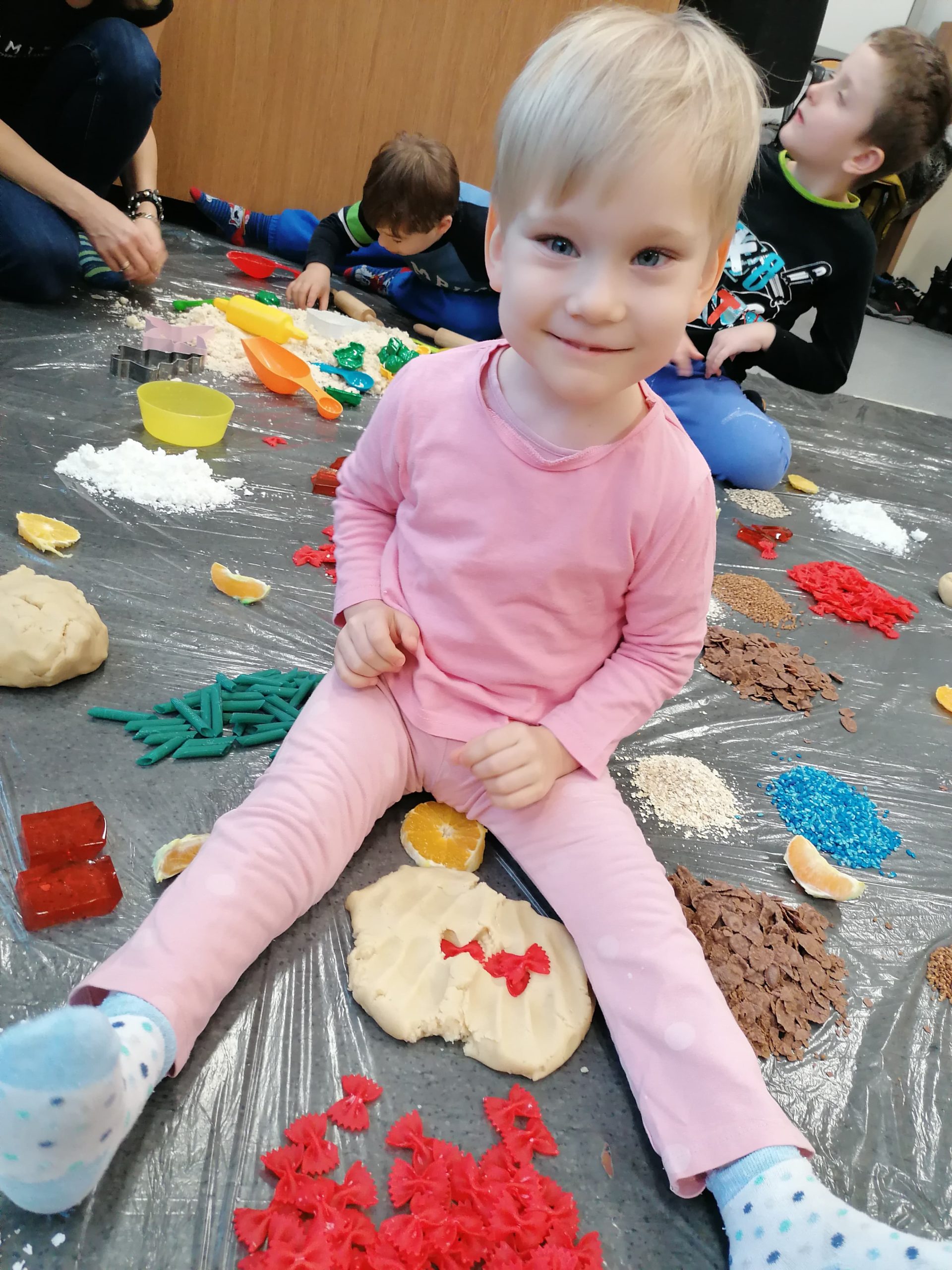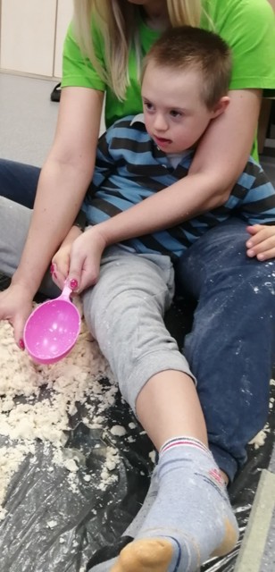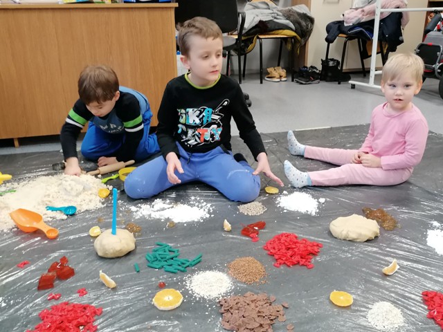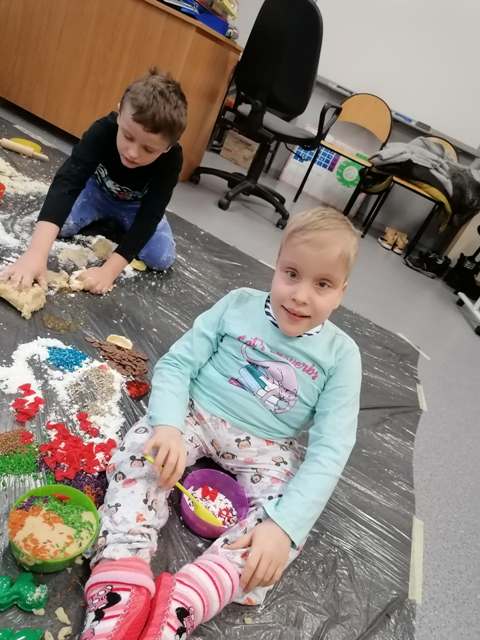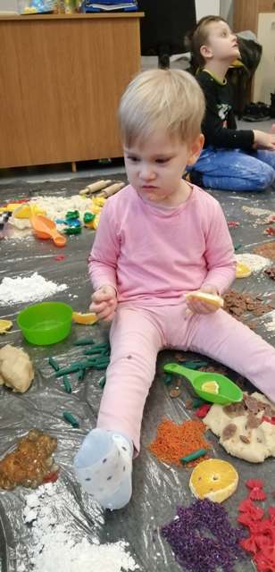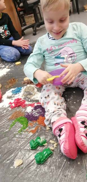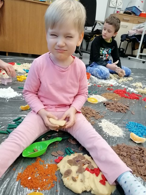 Grupa Tygrysków Urwisków z naszego przedszkola uczestniczyła w zajęciach sensoplastycznych ®, którym towarzyszyły produkty sypkie, naturalne barwniki, moc faktur i kolorów a przede wszystkim wspaniała i odkrywcza oraz budząca do samodzielnego myślenia, zabawa. Każde z dzieci miało do dyspozycji mnóstwo ekologicznych produktów, z których powstały ciekawe wytwory.