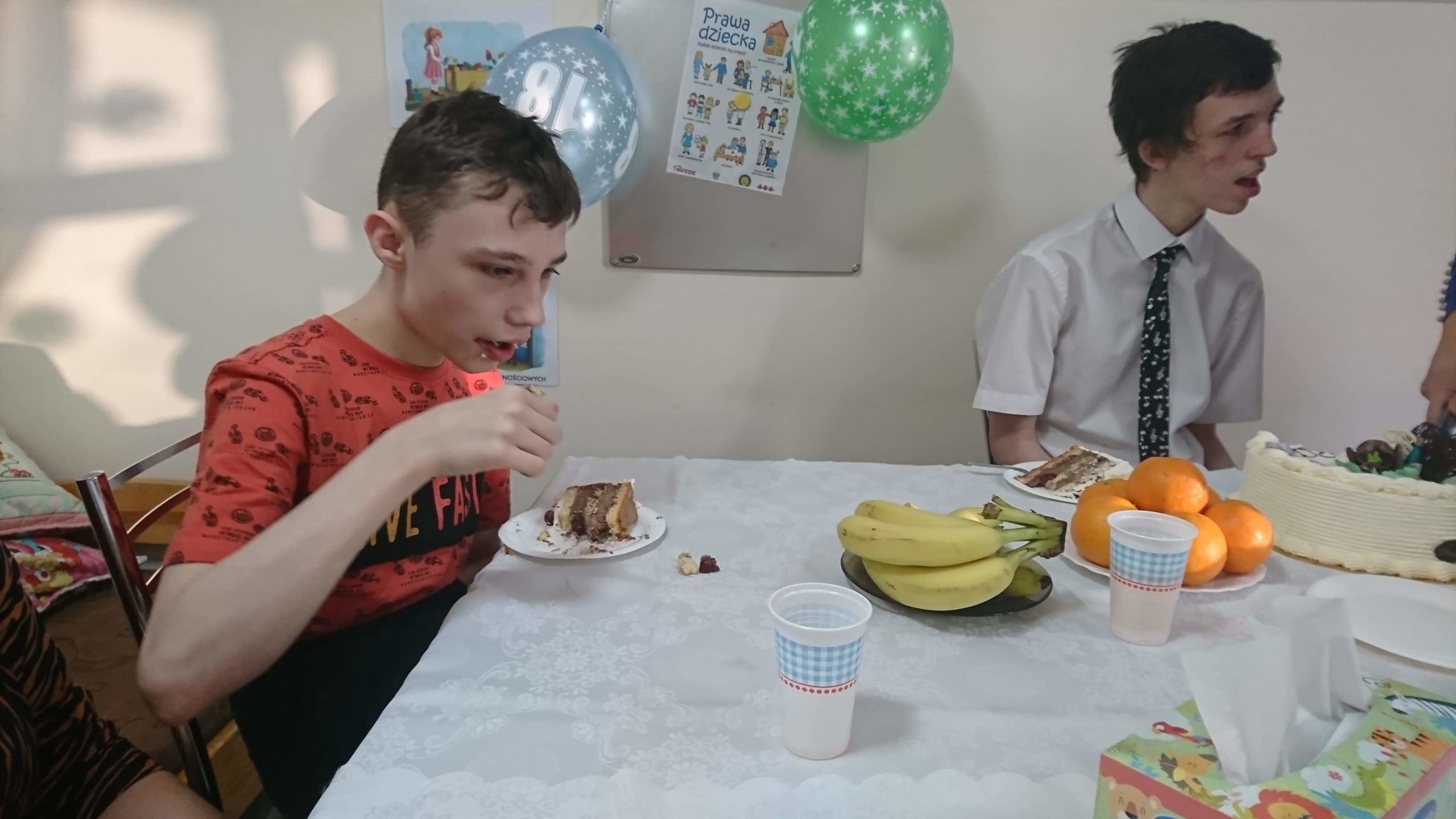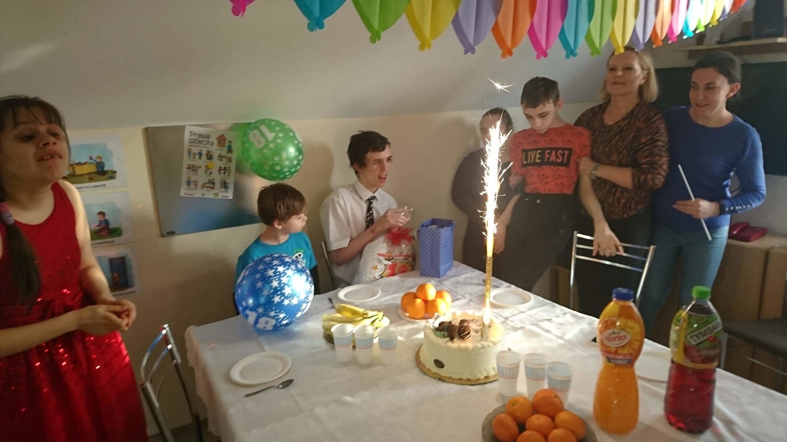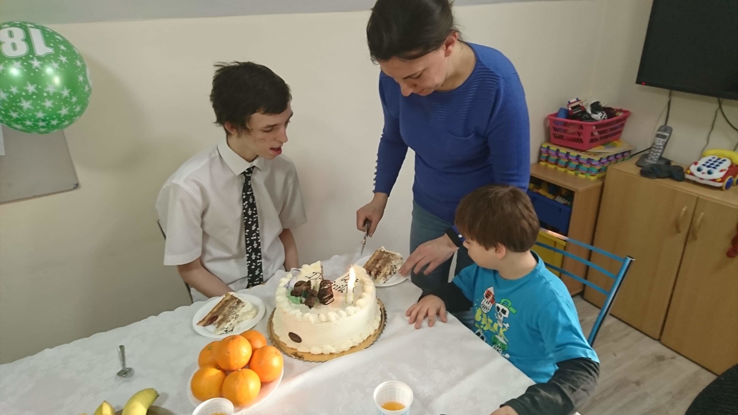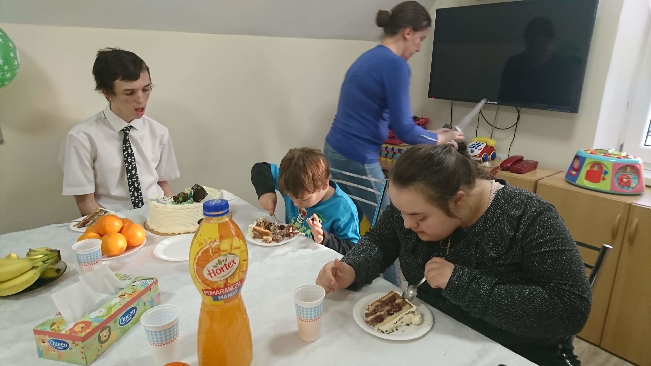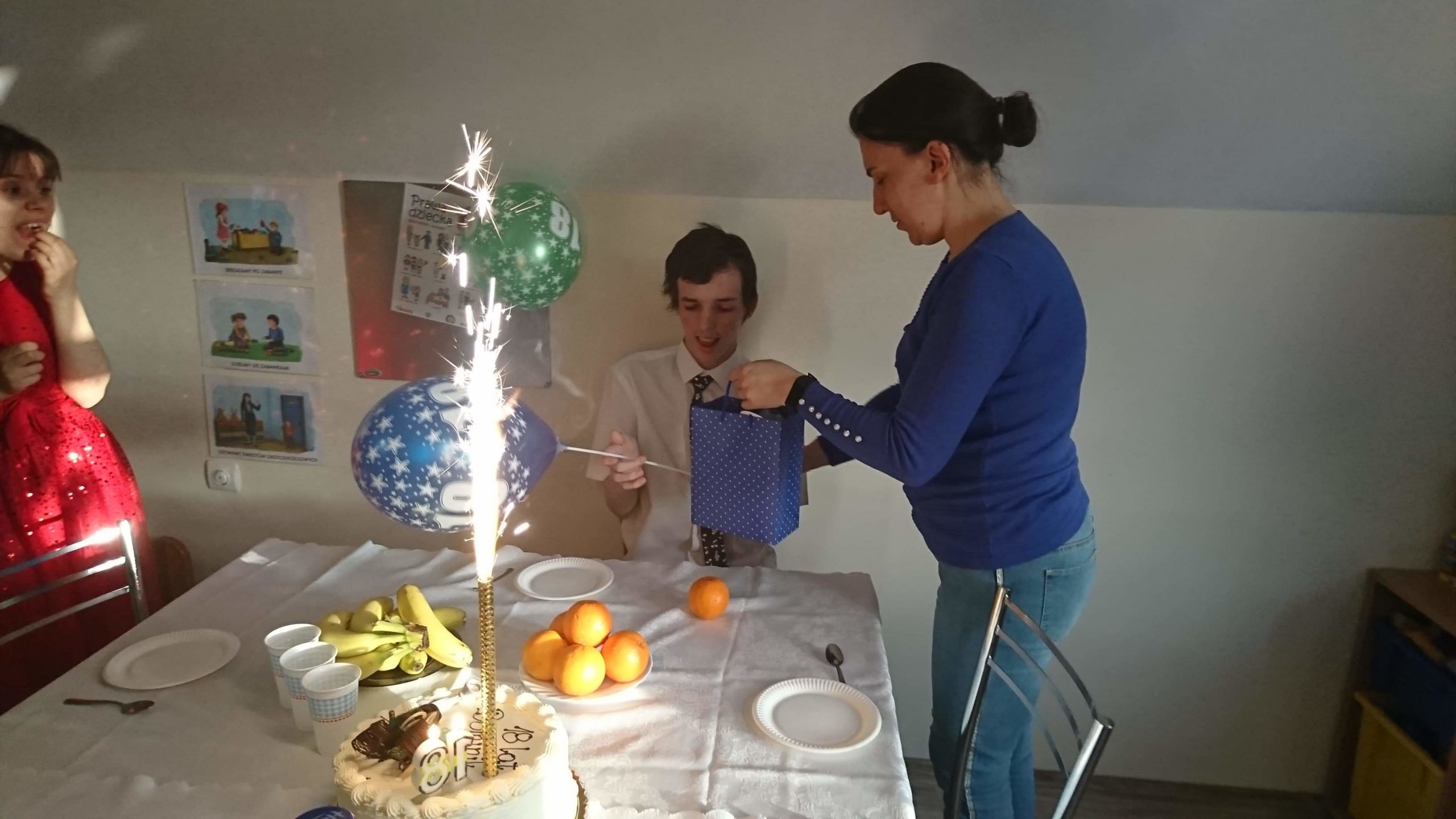 Dominik dostał urodzinowy prezent, a na stole nie zabrakło oczywiście pysznego tortu. Impreza była bardzo udana! Wychowankowie spędzili wspólnie miło czas, pojawiły się nawet tańce.