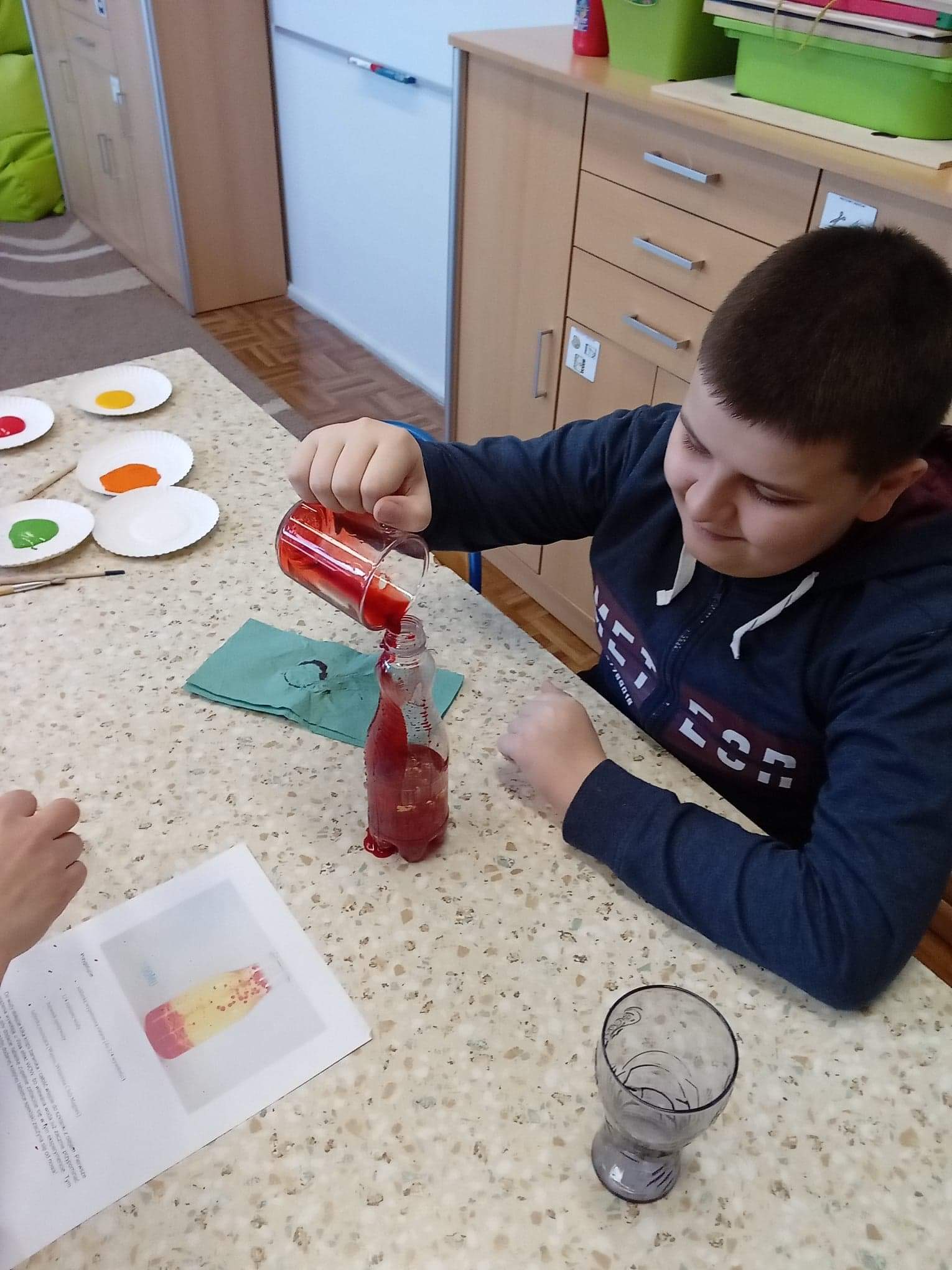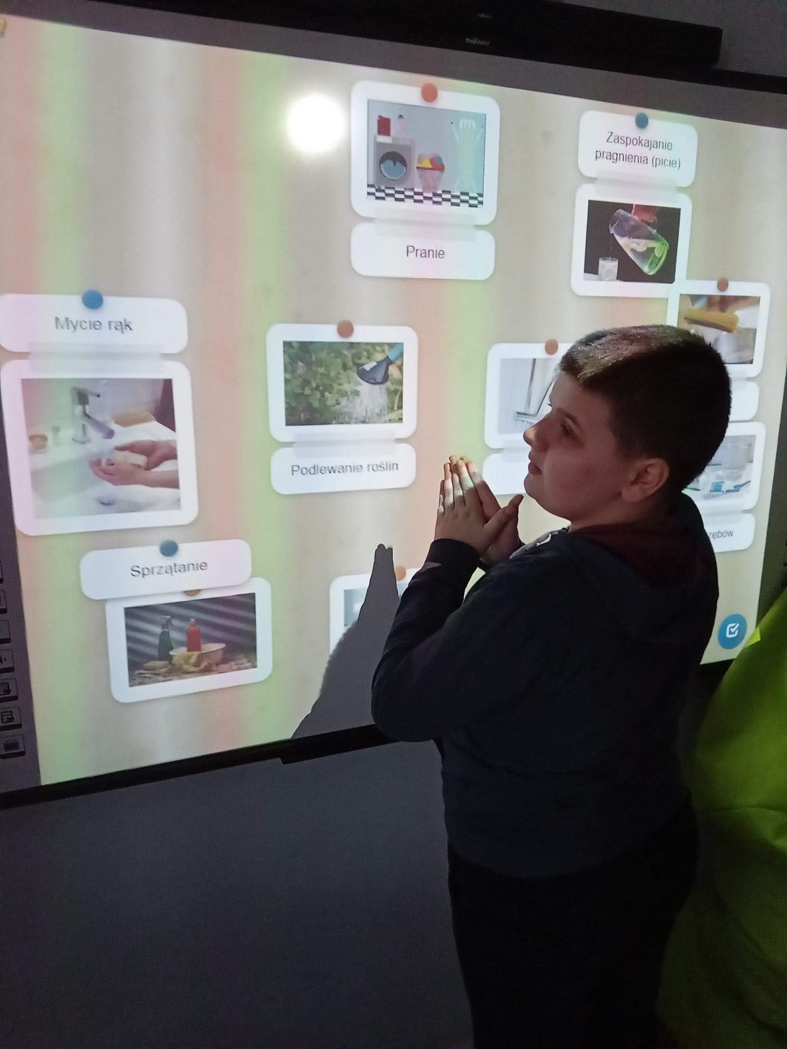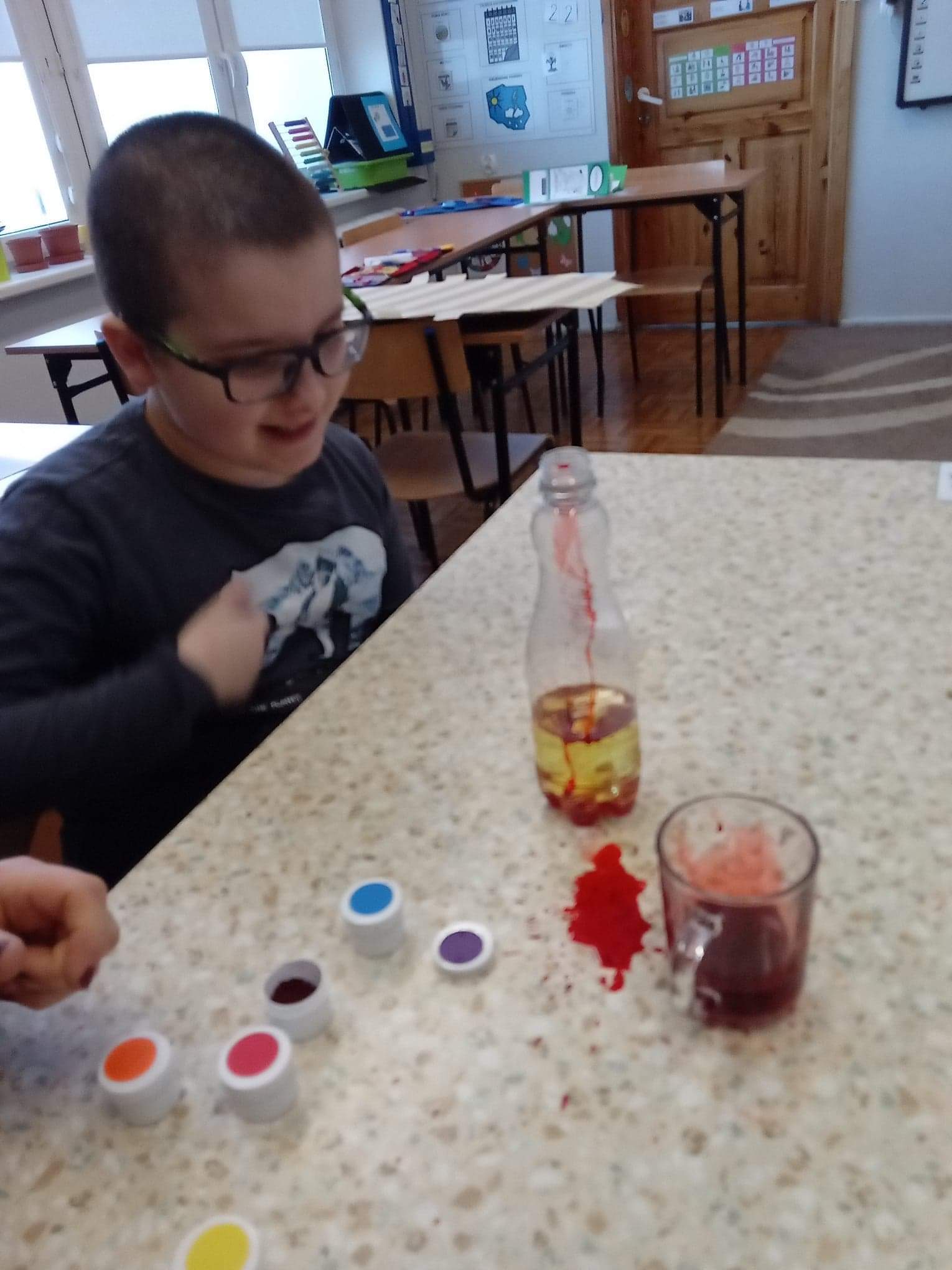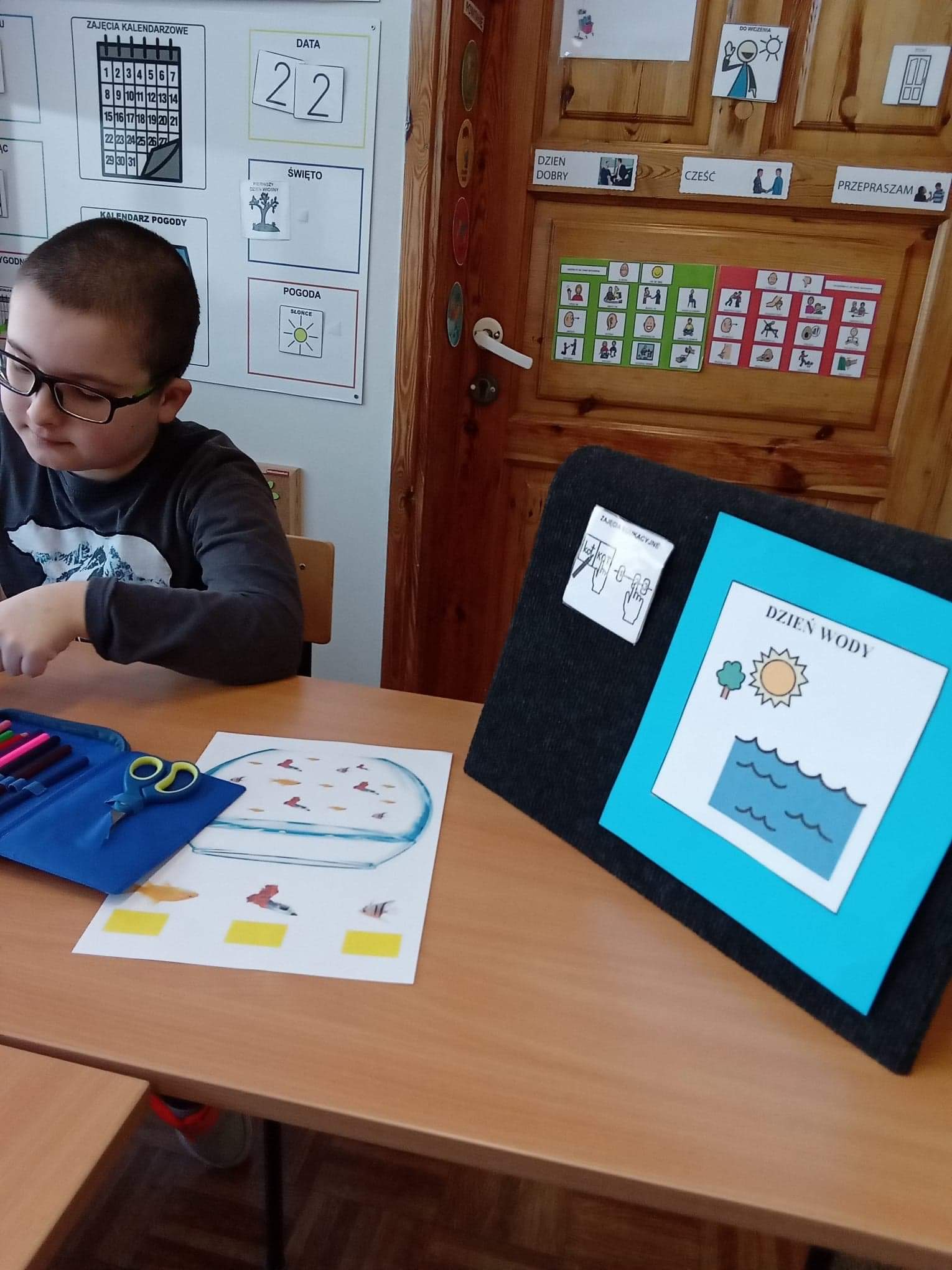 Otrzymaliśmy od Polskiej Akcji Humanitarnej bezpłatne materiały online dla różnych grup wiekowych, w tym scenariusze zajęć quizy, karty dyskusji do filmów, broszury merytoryczne, animację i poradnik akcyjny. Nasi uczniowie mieli możliwość zapoznania się z materiałami na lekcjach. Przygotowane materiały wzbudziły w nich duże zainteresowanie. Z ciekawością rozwiązywali wybrane zadania, nie zabrakło również eksperymentów z wodą. Uczniowie wykonali również prace konkursowe o wodzie. Hasłem przewodnim konkursu było „Woda źródłem życia”. Otrzymali również małą niespodziankę w postaci butelki wody i zawieszki na szyję przypominające o Światowym Dniu Wody.