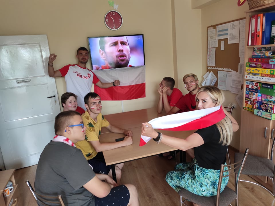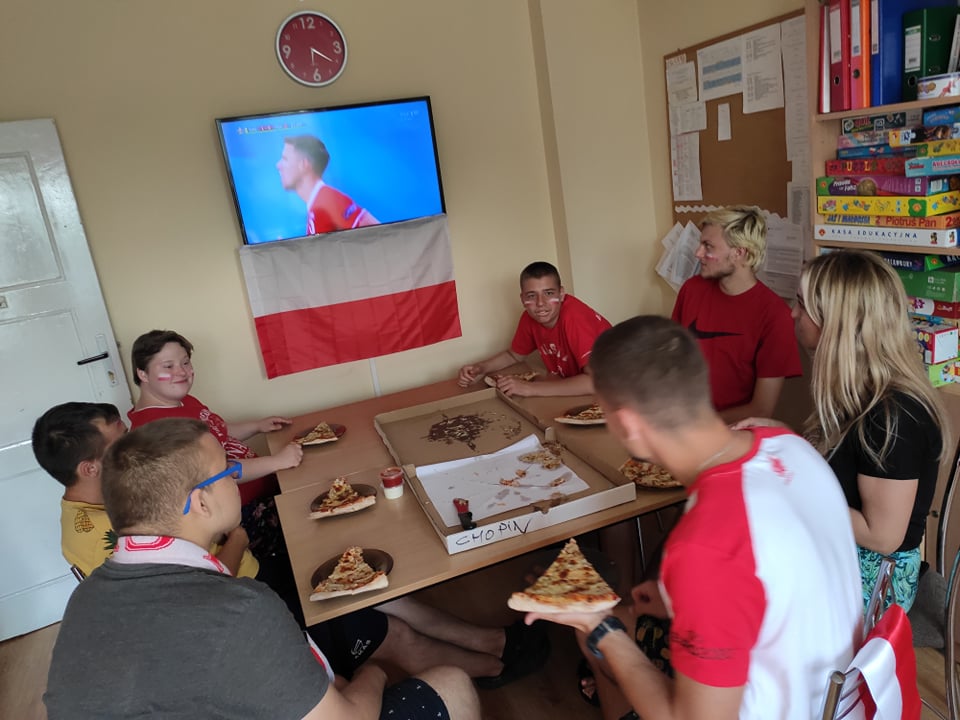 Podczas środowego meczu Mistrzostw Europy 2020 pomiędzy Polską i Szwecją zorganizowana została strefa kibica, tak aby mecz o wszystko obejrzeć wspólnie w kibicowskiej atmosferze. Wszyscy ubrani w barwy narodowe starali się pomagać naszej drużynie dopingiem przeżywając wspólnie kolejne akcje na boisku. Smutek porażki naszej reprezentacji zrekompensowały nam pizza i słodkie napoje.
