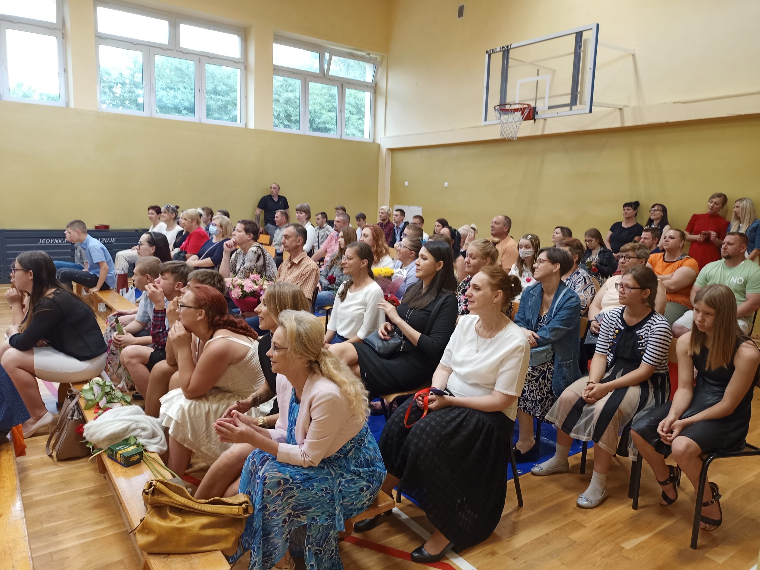 Po roku wytężonej pracy, wielu sukcesach i radościach, ale też trudnościach i smutkach wszyscy zatęskniliśmy za wakacjami. Ten upragniony moment w końcu nadszedł i w dniu 25 czerwca uroczystym apelem zakończyliśmy rok szkolny 2020/2021. Były podziękowania, przemówienia, kwiaty, dyplomy. Wyróżniający się uczniowie otrzymali świadectwa „z paskiem” z rąk dyrektora szkoły. Absolwenci klasy VIII e Szkoły Podstawowej oraz klasy III a i III b Branżowej Szkoły I stopnia po raz ostatni wystąpili przed społecznością szkolną. Odbierając z rąk wychowawców świadectwo potwierdzające ukończenie szkoły wkroczyli w etap ważnych wyborów, decyzji, realizacji marzeń i życiowych planów. Spotkanie oficjalne uwieńczone zostało częścią artystyczną, podczas której pożegnaliśmy odchodzące na emeryturę nauczycielki – Panią Wicedyrektor Grażynę Jędrzejczak i Panią Wiesławę Palkowską, odchodzącą na emeryturę pielęgniarkę Panią Krystynę Skolimowską oraz odchodzącą z pracy Panią Małgorzatę Junikowską.