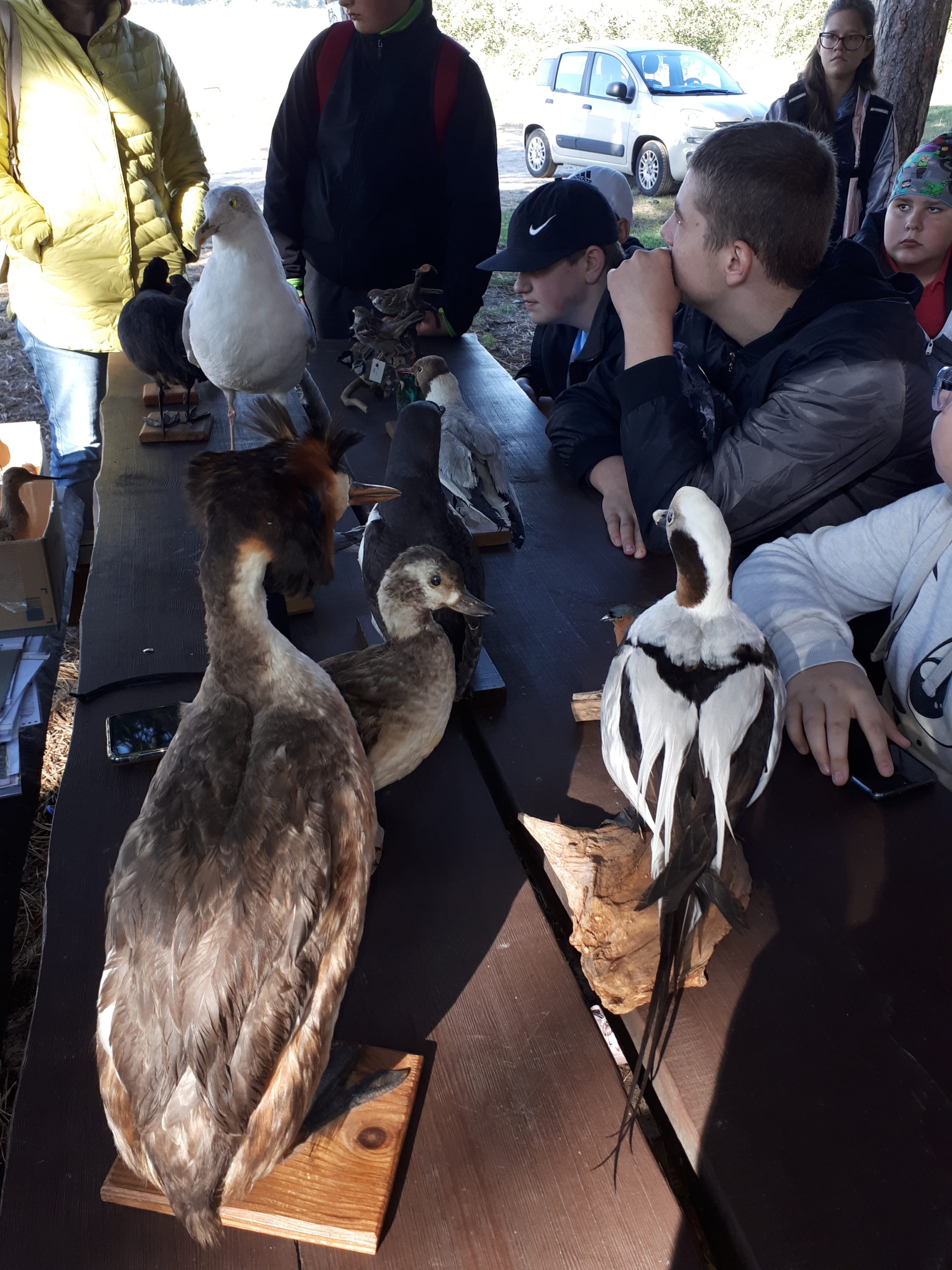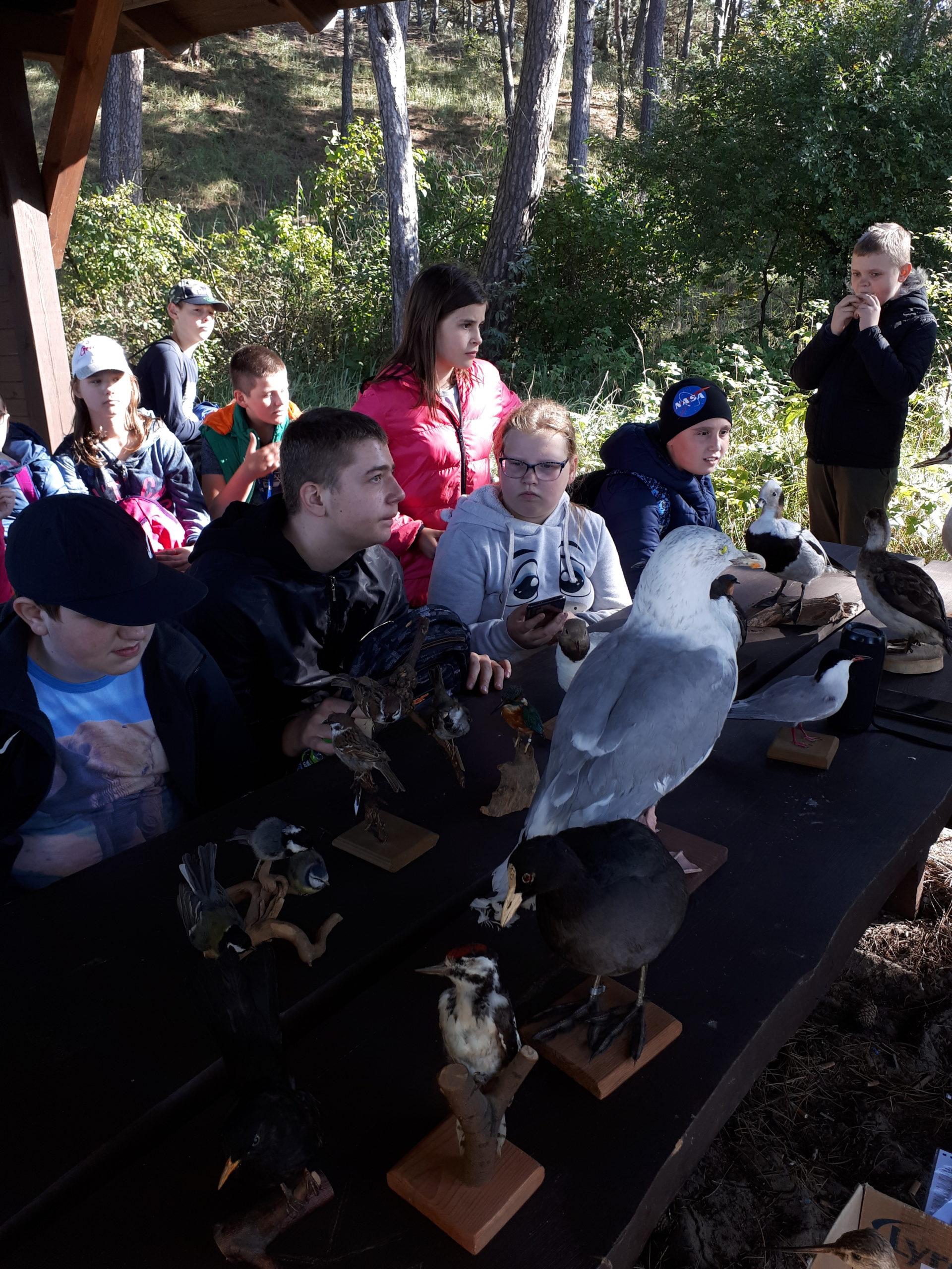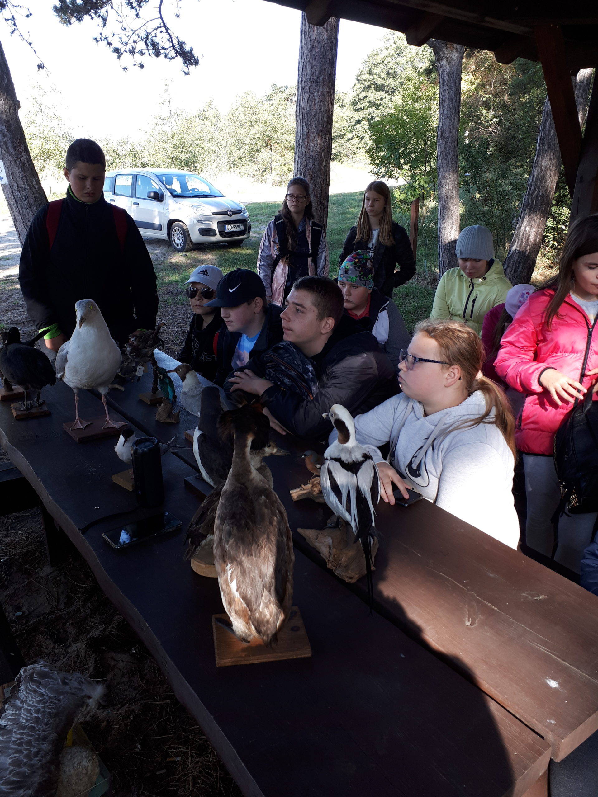Dzięki uprzejmości Pani Alicji Bielskiej- kierownik Stacji Ornitologicznej PAN poznaliśmy skrzydlatych przyjaciół Wyspy Sobieszewskiej z sikorką, dudkiem, kawką, bąkiem, perkozem czy kormoranem w tle światła lornetek, dzięki którym wszystko było jak na dłoni. Spacer wzdłuż ujścia Wisły Śmiałej przekonał nas, że rezerwat Ptasi Raj to ostoja ptactwa wodnego i błotnego, w którym królują kaczki, łabędzie, gęsi, mewy, rybitwy oraz mało przyjazne grono drapieżców z bielikiem, jastrzębiem, myszołowem czy sokołem na czele. Wędrówka ścieżką dydaktyczną z tablicami informacyjnymi, opatrzona komentarzem ornitologa, okazała się nieocenionym źródłem wiadomości nt. trybu życia, ptasich trików w codziennej walce o przetrwanie, czy zabawnych rytuałów w okresie przedlęgowym. Wystawa eksponatów była nie lada wyzwaniem, jako że przyszło nam się zmierzyć z określaniem nazwy ptaków po ich wyglądzie. I tu z pomocą przyszła pani Alicja, która drogą pogadanki kształcącej docierała do naszych głów i wyobraźni. Bez trudu ustaliliśmy, że cwaniarą, która podrzuca innym własne jajka, jest dobrze wszystkim znana kukułka, zaś dzięcioł- określany mianem lekarza drzew, stuka w pień w poszukiwaniu żony, by wiosną zwabić samicę. W ramach ciekawostek dowiedzieliśmy się, że w rankingu najpiękniej śpiewających ptaków prym wiodą kosy i zięby. W dyskusji nad rolą ptaków w ekosystemie, opinia ornitologa, w osobie pani Alicji, okazała się zdecydowanie przyjazna szpakom, które są najskuteczniejszymi pogromcami szkodników przyrody ożywionej.