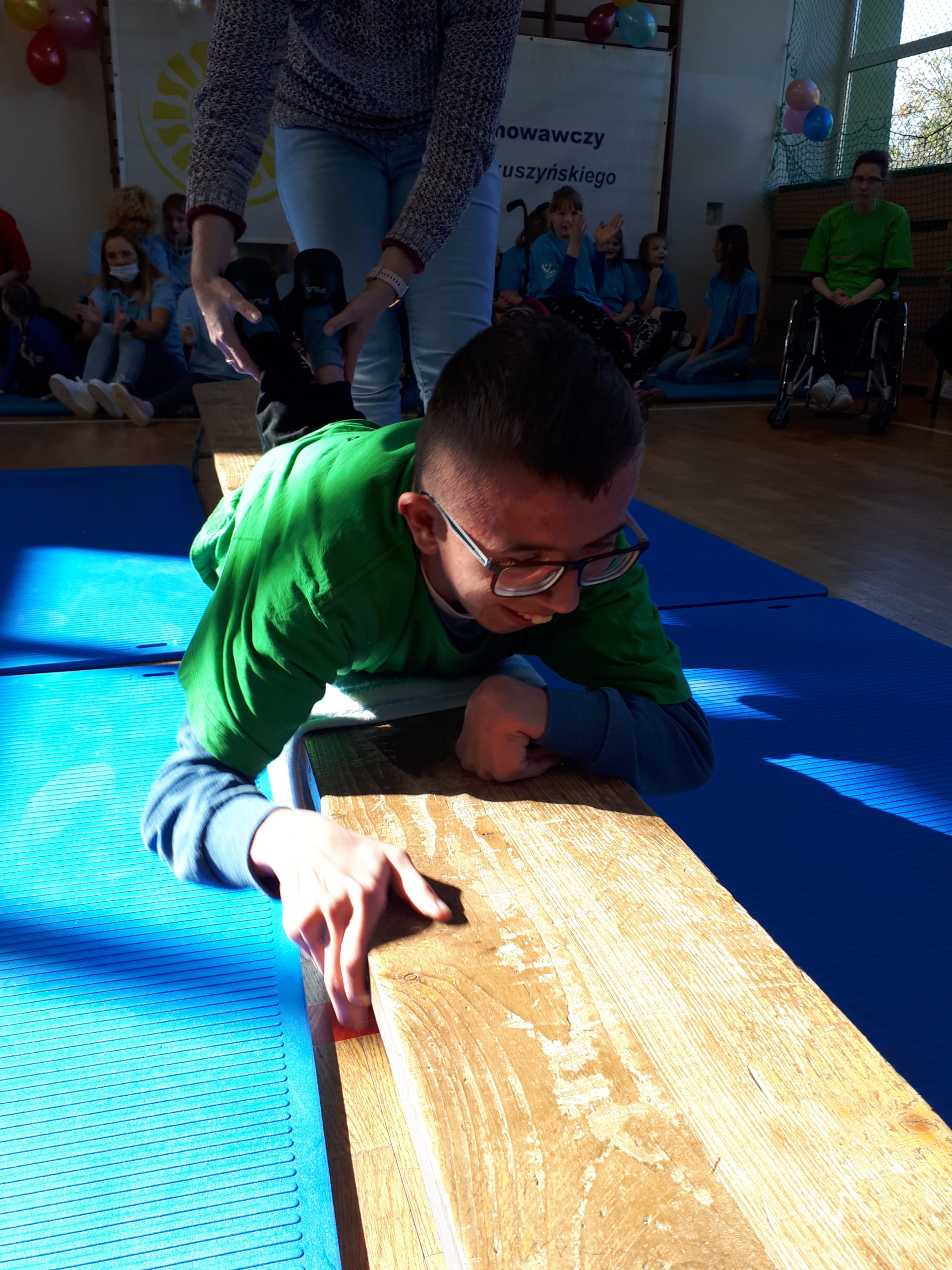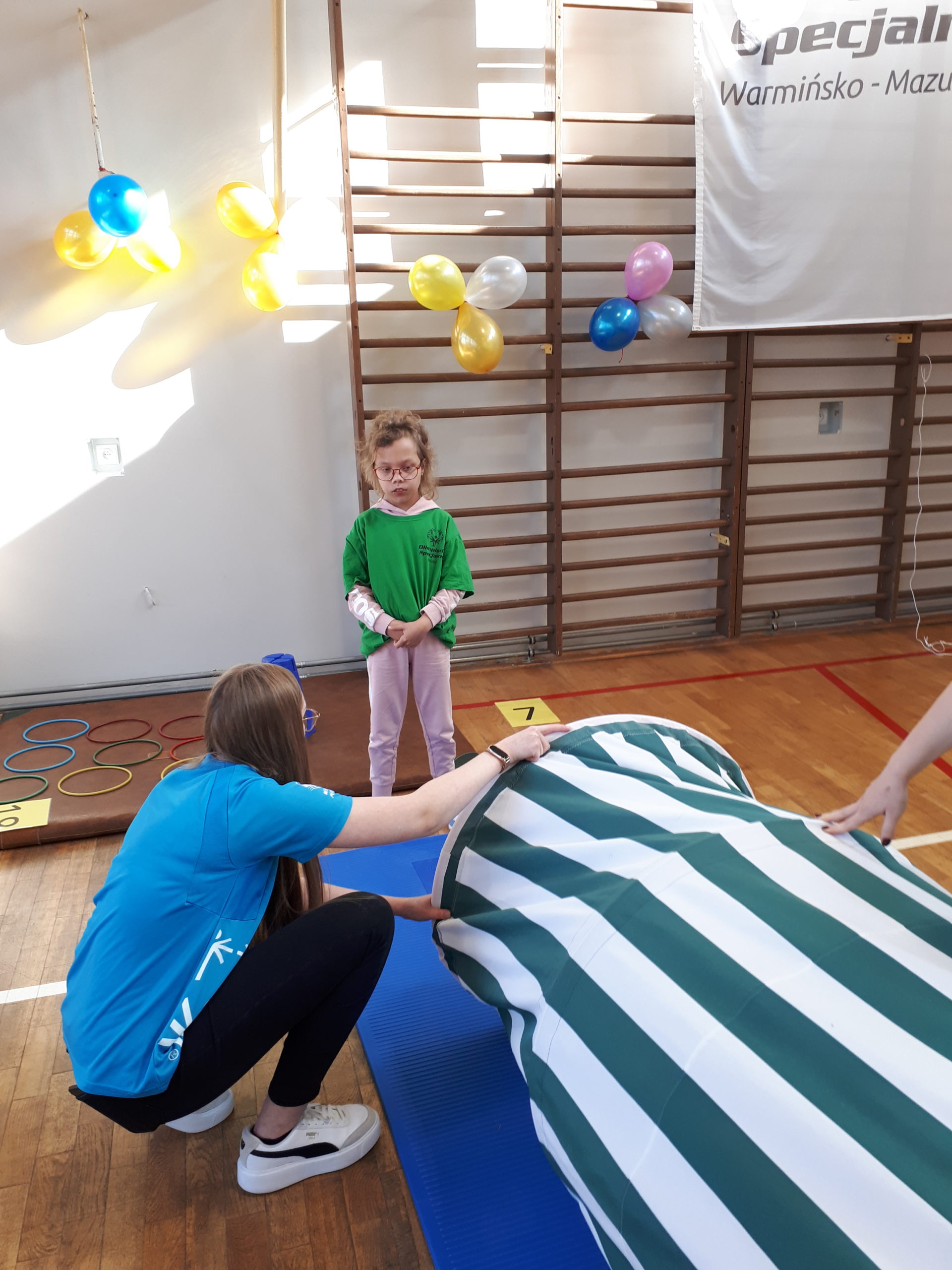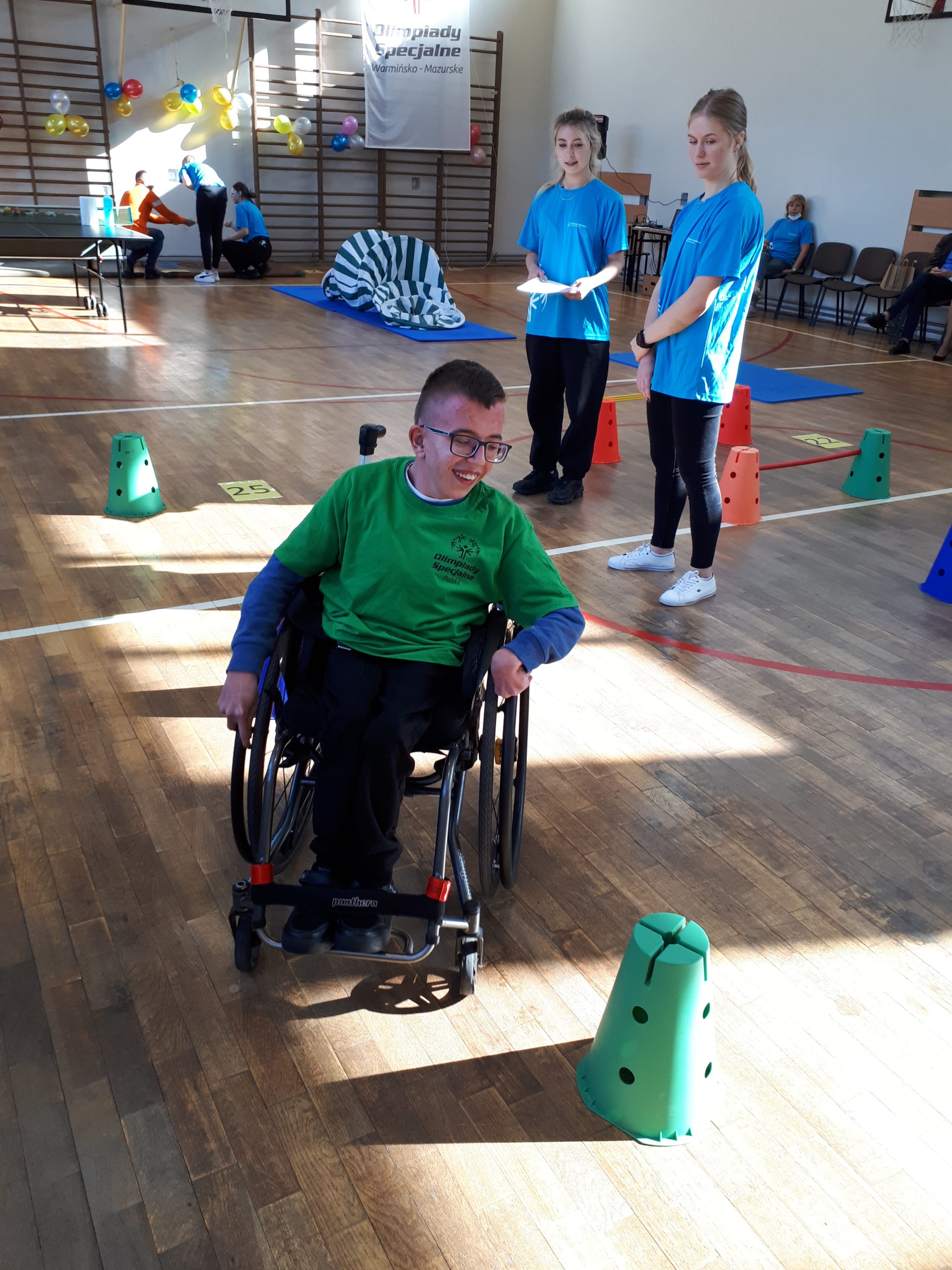 Dnia 7.10. 2021r. odbył się XVII Dzień Treningowy Programu Aktywności Motorycznej Olimpiad Specjalnych / MATP/. Naszą szkołę na zawodach reprezentowali zawodnicy Klubu OS „Rekord”- Klara Korab, Sebastian Jaworski i po raz pierwszy Zuzanna Ciesielska. Zawody odbyły się zgodnie z ceremoniałem Olimpiad Specjalnych, a mianowicie : odsłuchano hymn Olimpiad, złożono ślubowanie. Zawodnicy mieli do wykonania trzy konkurencje dostosowane do ich możliwości np. pokonanie przeszkód, samodzielne przejście po ławeczce, czy też rzut piłeczką palantową do celu. Mimo, iż MATP nie polega na rywalizacji, to jednak zawodnicy mają możliwość pokazania swoich umiejętności i mogą zaistnieć jako prawdziwi sportowcy. W tych zawodach wszyscy byli zwycięzcami, w myśl idei, że już sam udział jest nie lada wyróżnieniem. Tak więc, wszyscy nasi zawodnicy zostali wyróżnieni i nagrodzeni złotymi medalami.