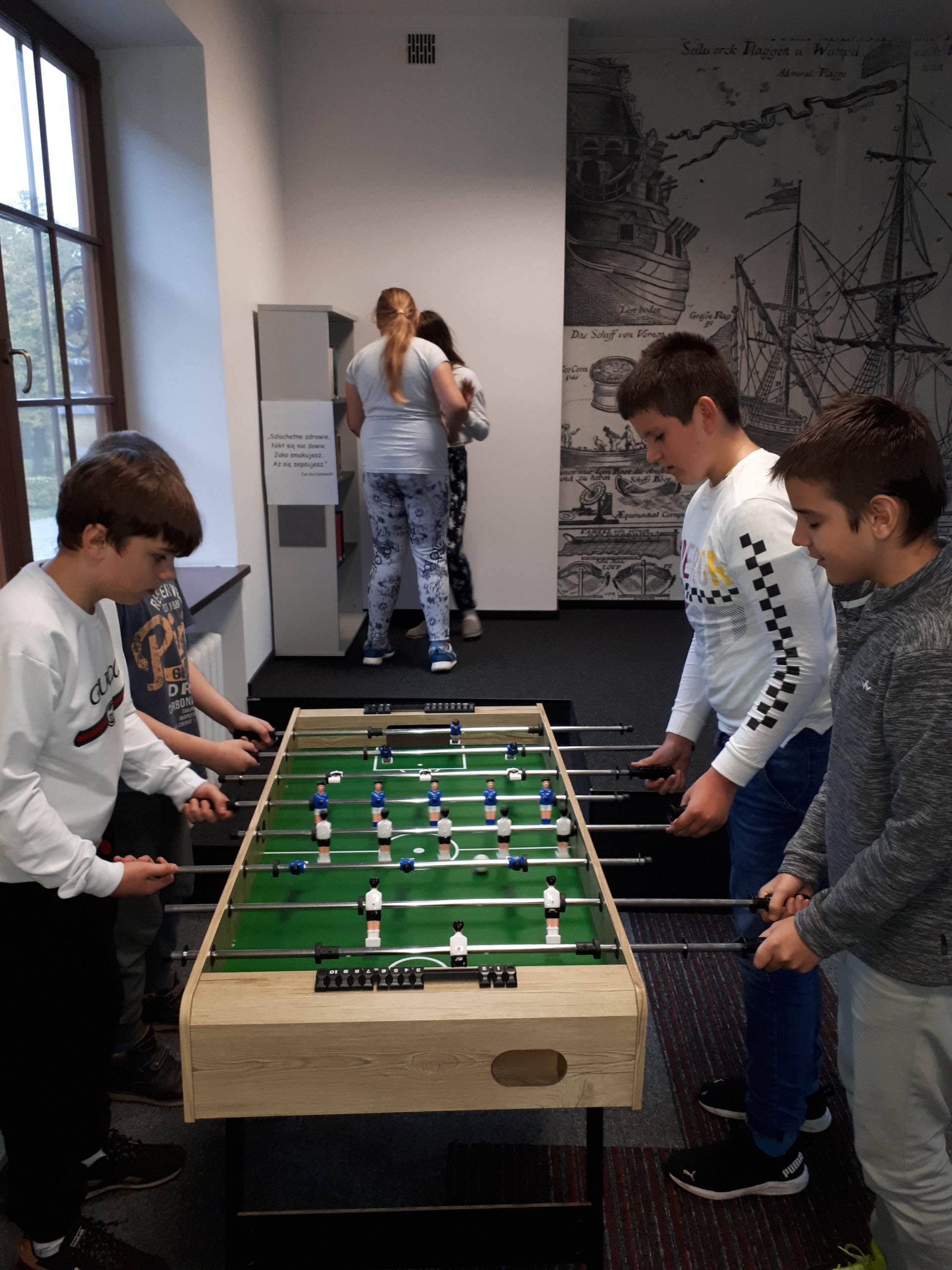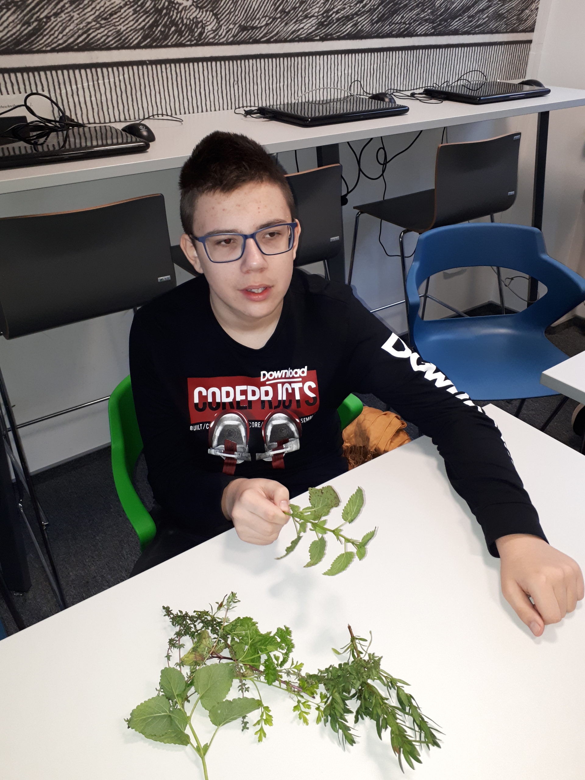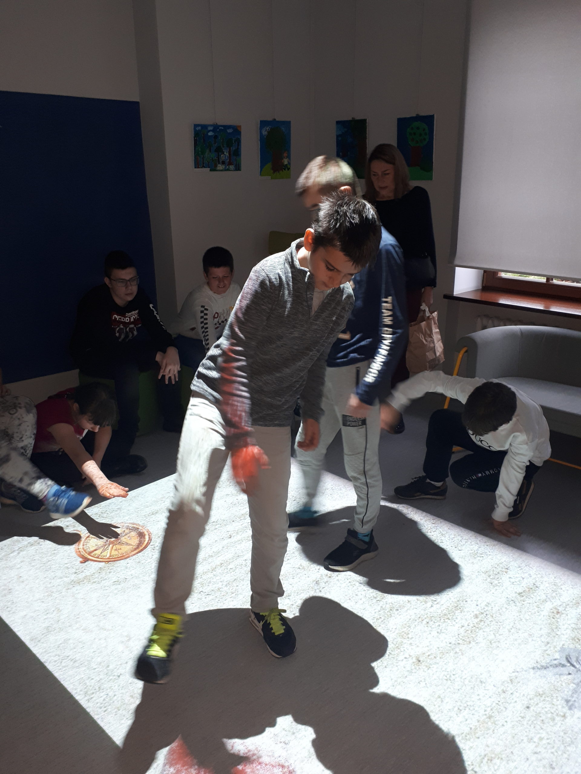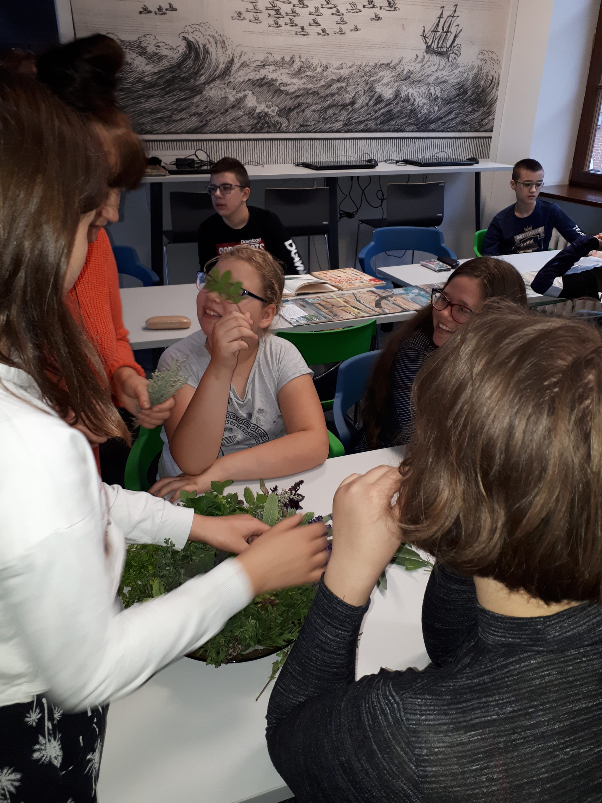 W toku warsztatów plastyczno – literackich eksplorowaliśmy polisensorycznie, poznając wygląd, zapach, smak, dotyk roślin zielnych z lawendą, miętą, szałwią, lubczykiem, bazylią czy majerankiem na czele. Niemałym zaskoczeniem był dla nas fakt, że płatki nagietka czy nasturcji są jadalne i zdobią stoły najbardziej renomowanych restauracji świata. Dopełnieniem zajęć było czytanie cytatów z książką w roli głównej oraz ustalanie przesłania zawartego w metaforze. Przysłowiową wisienką na torcie okazała się gra w piłkarzyki oraz zabawy ruchowe na podłodze interaktywnej. Zajęcia okazały się nader ciekawym spotkaniem z książką, w której wszystko, jak w życiu, zdarzyć się i zaskoczyć nas może…