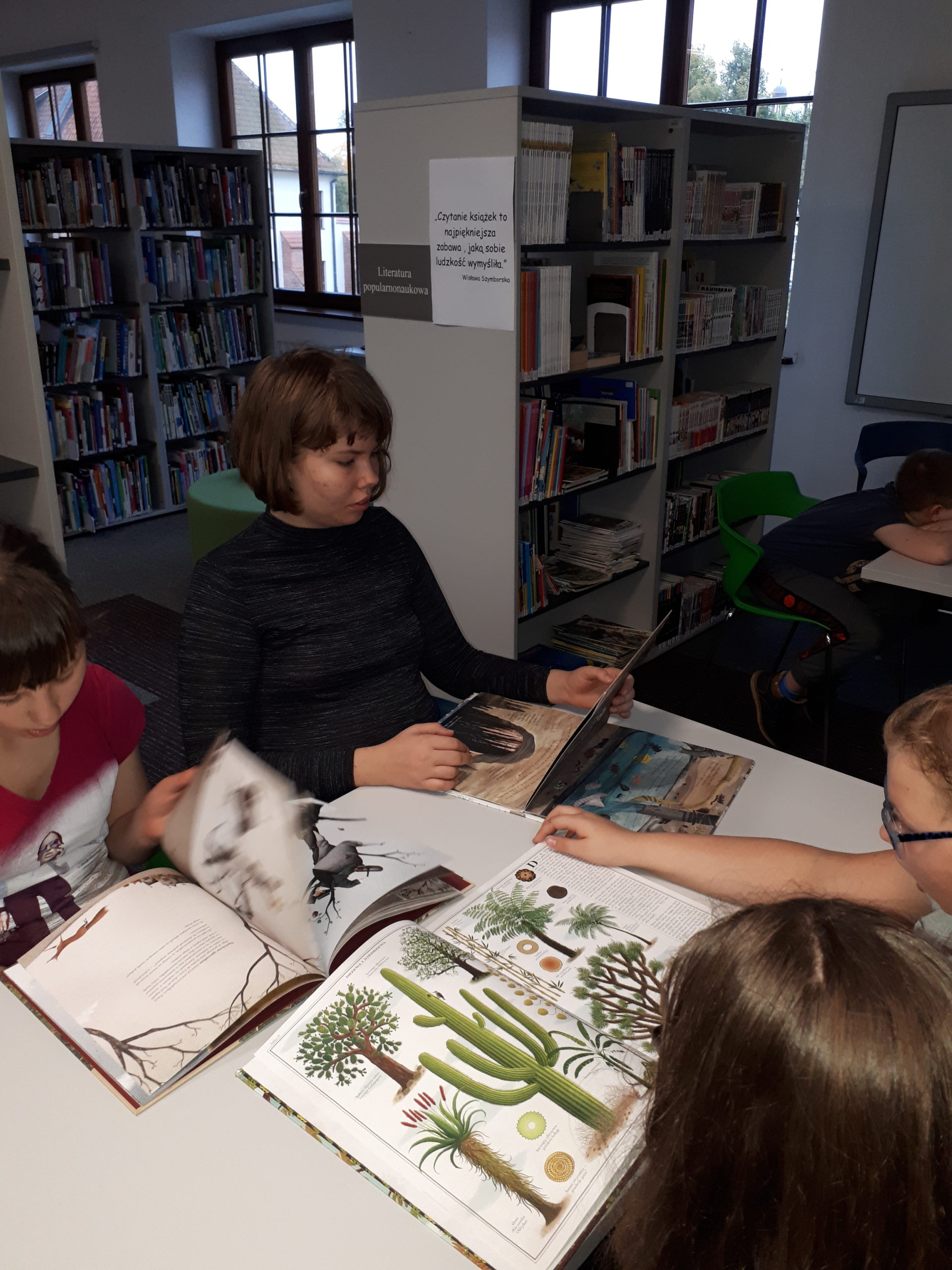 W myśl rozbudzania pasji czytelniczych w nowym roku szkolnym udaliśmy się z wizytą do Biblioteki Młodego Czytelnika. Tu z wielką uprzejmością zajęła się nami pani Mariola, która ową przygodę z książką rozpoczęła od spotkania w „Tajemniczym świecie pod stopami”. Dowiedzieliśmy się, że każdy z nas pielęgnuje w sobie pewien ogród, pełen roślin, będących odzwierciedleniem naszych mniej czy bardziej skrywanych, uświadomionych marzeń i pragnień. W ogrodzie naszej duszy rośliny mają magiczną moc, a pisał o tym już przed wieki sam mistrz Jan Kochanowski, wychwalając zalety czarnoleskiej lipy, która na trwałe pozostała w rodzimej literaturze.