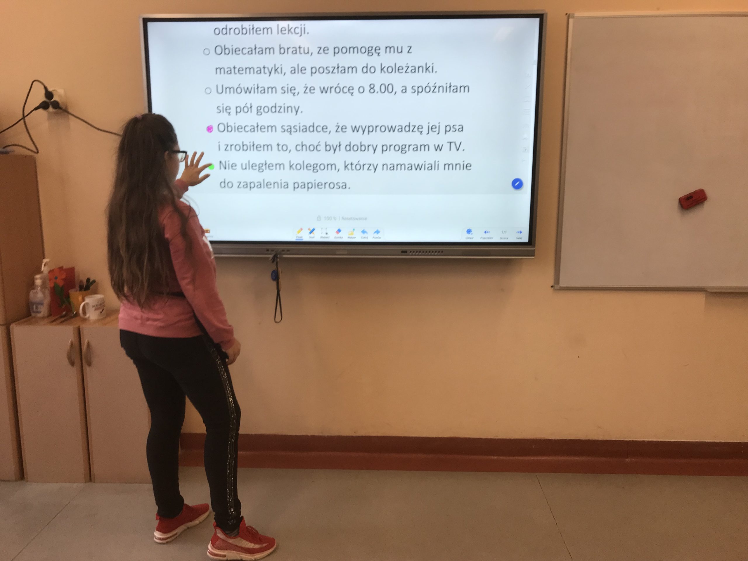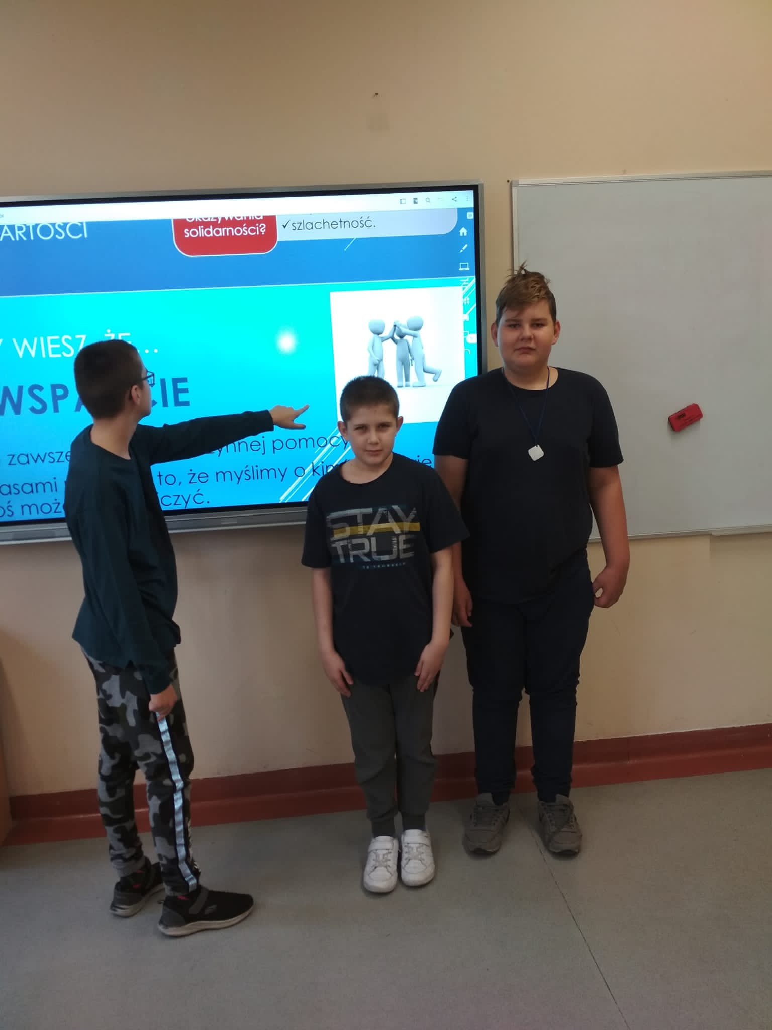 Na zajęciach pod opieką nauczycieli: pani Edyty Pardo i pani Magdaleny Janiak uczniowie dowiadują się, czym są uniwersalne wartości moralne. Dzięki lekturze opowiadań uznanych polskich autorów ze zbioru Gorzka czekolada t. 1 i 2, poznają istotę i skutki stosowania bądź zaniechania poszczególnych wartości, oraz tworzą krótkie prezentacje.