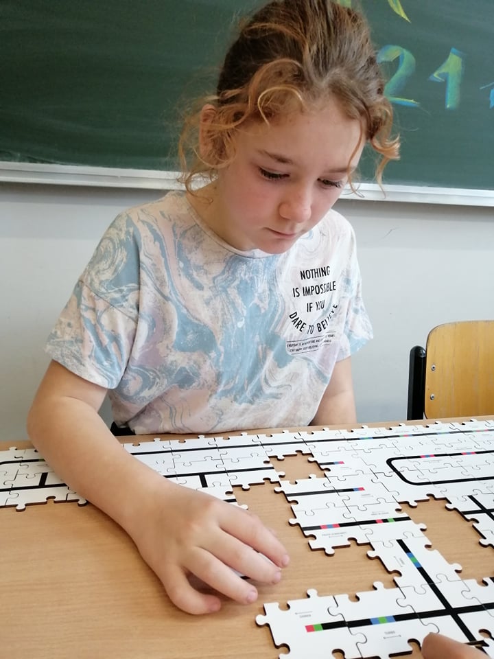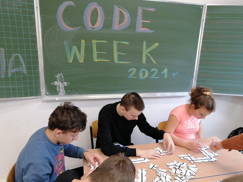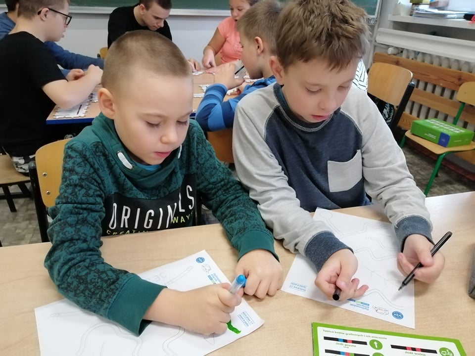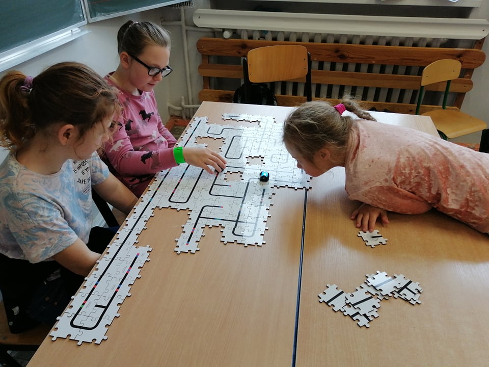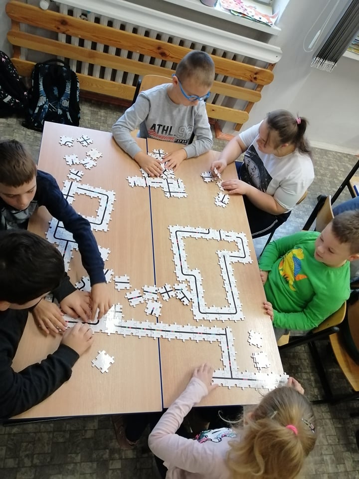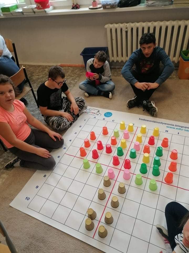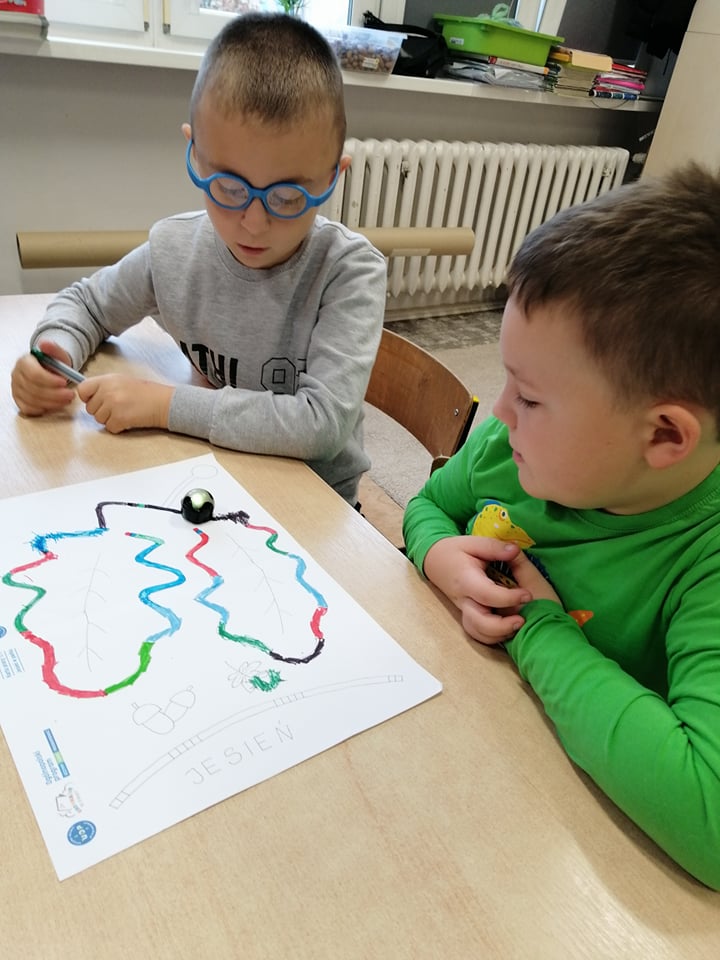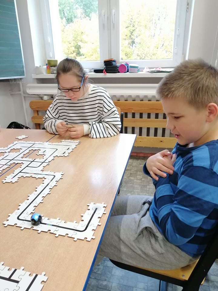 Uczniowie klas Szkoły Podstawowej wzięli udział w inicjatywie promującej programowanie i kodowanie. Uczestnicy spędzili czas w ciekawy i interesujący sposób. Podzieleni byli na grupy. Jedna grupa działała na macie do kodowania, tworząc z kubeczków wg kodu jesienne drzewo. Druga- tworzyła trasy z puzzli dla ozobotów, trzecia – rysowała drogę dla ozobotów, stosując własne kody. Ostatnia grupa odkodowywała drzewo, kolorując je jesiennymi barwami. Towarzyszyły nam ogromne emocje radości i fascynacji. Dzieci, oprócz umiejętności logicznego myślenia, obserwacji i dedukcji, doskonaliły umiejętność współpracy.