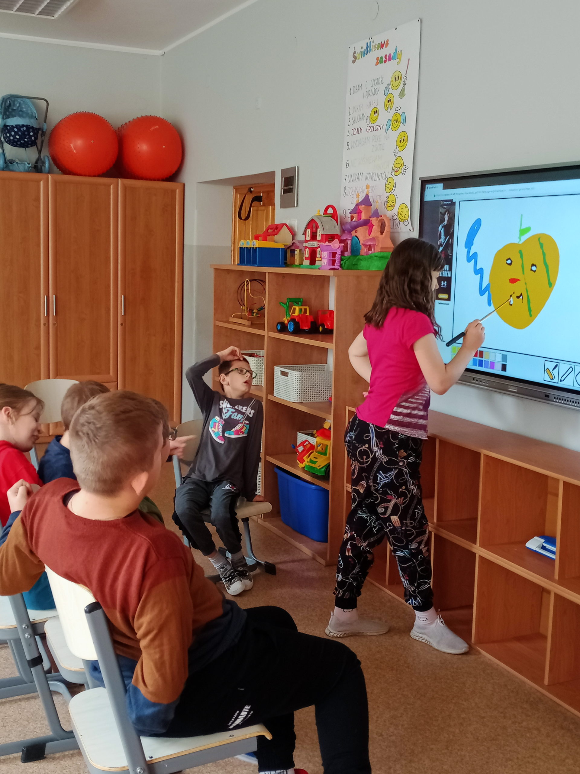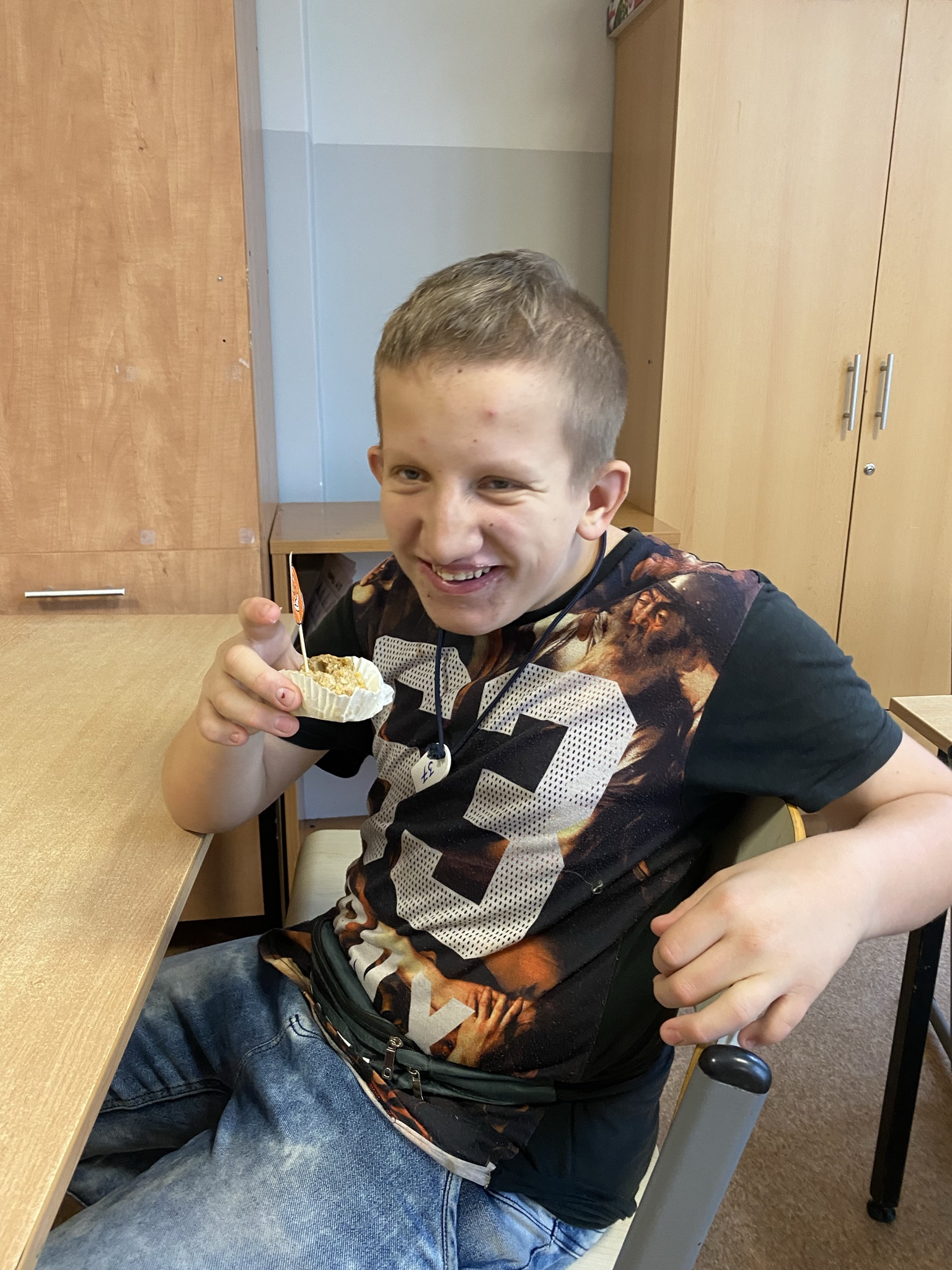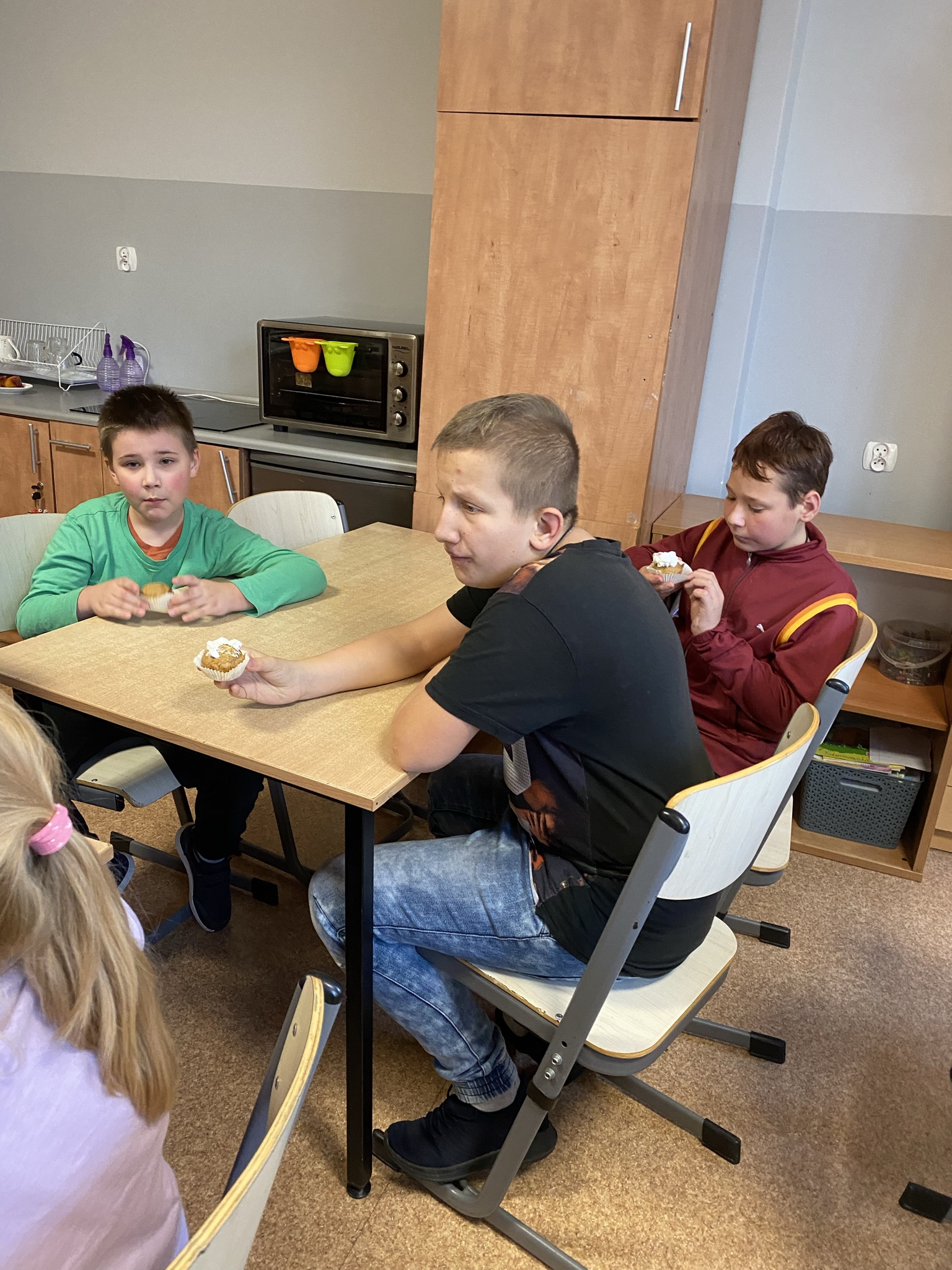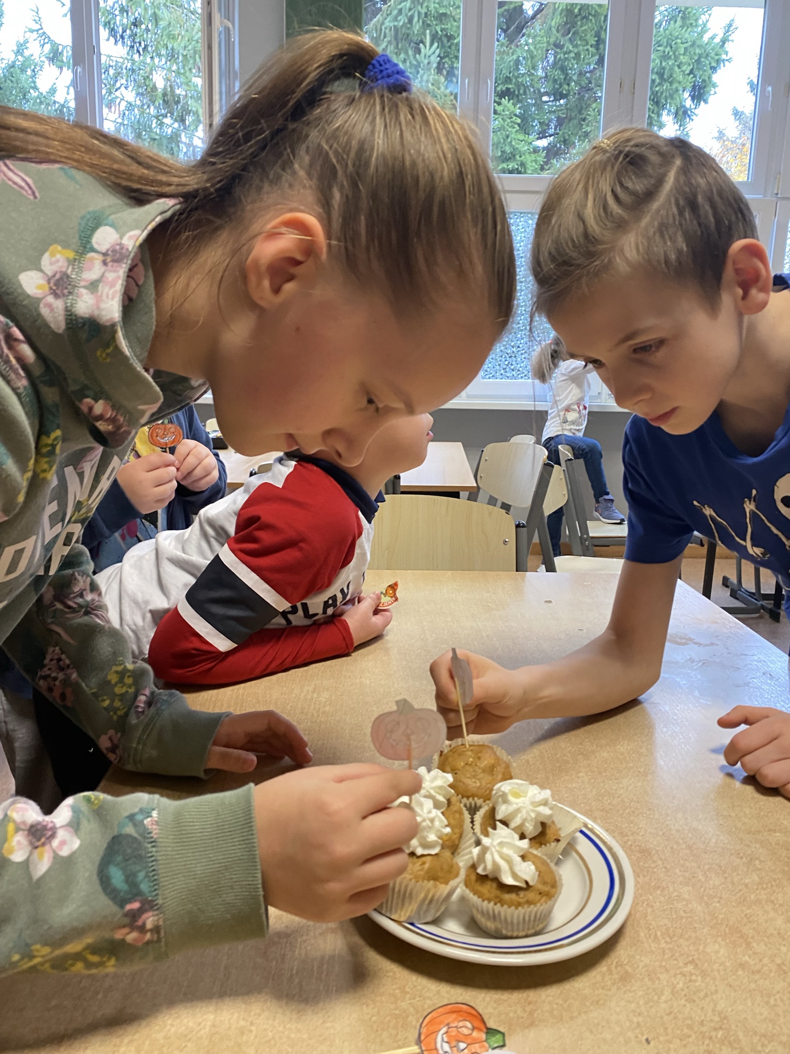 Wszystko nam bardzo smakowało. Dynia również może być elementem dekoracyjnym, dlatego wykorzystaliśmy jej walory dekorując świetlicę. W pachnącej ciastem atmosferze milej upływa czas.