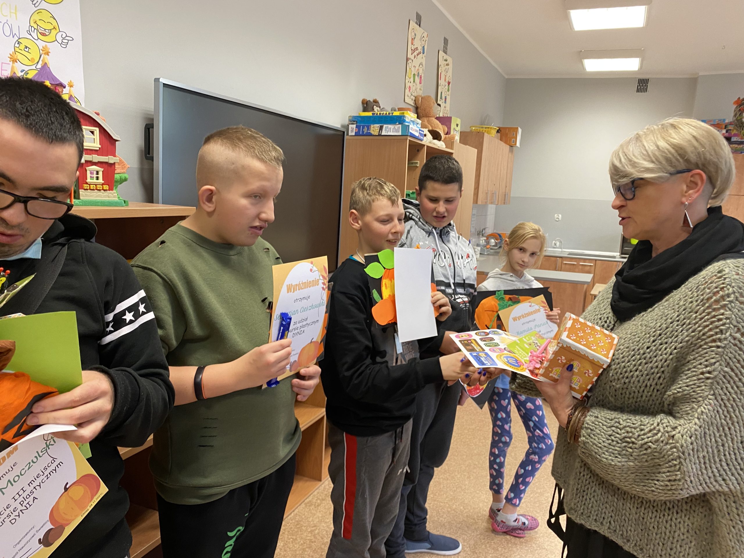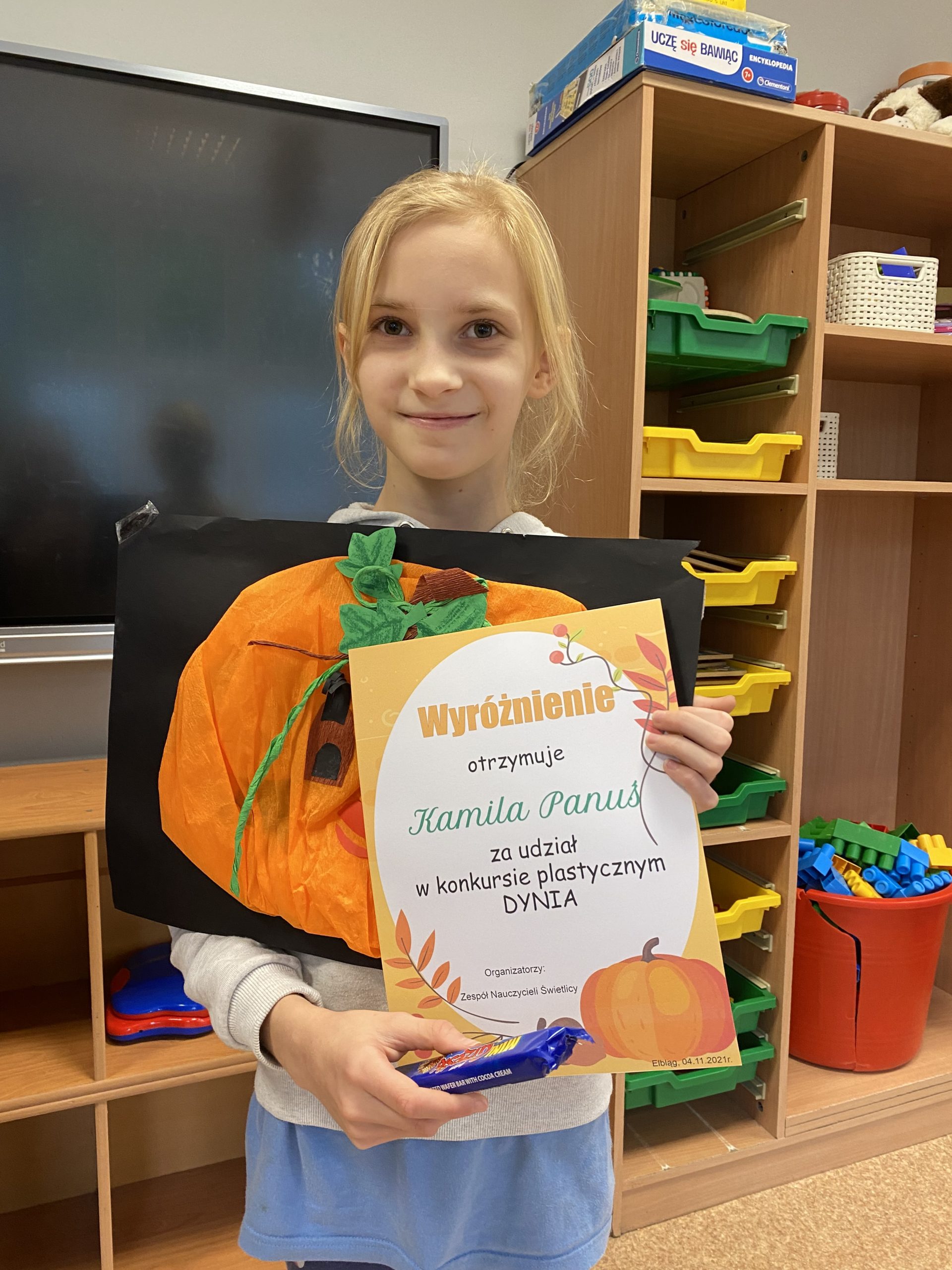 Świetlica szkolna korzystając ze Święta Dyni zaprosiła wszystkich uczniów naszej szkoły do udziału w konkursie plastycznym. Przez ostatnie dni października do świetlicy przynoszone były piękne prace. Ostatniego dnia komisja konkursowa nagrodziła i wyróżniła te najładniejsze.