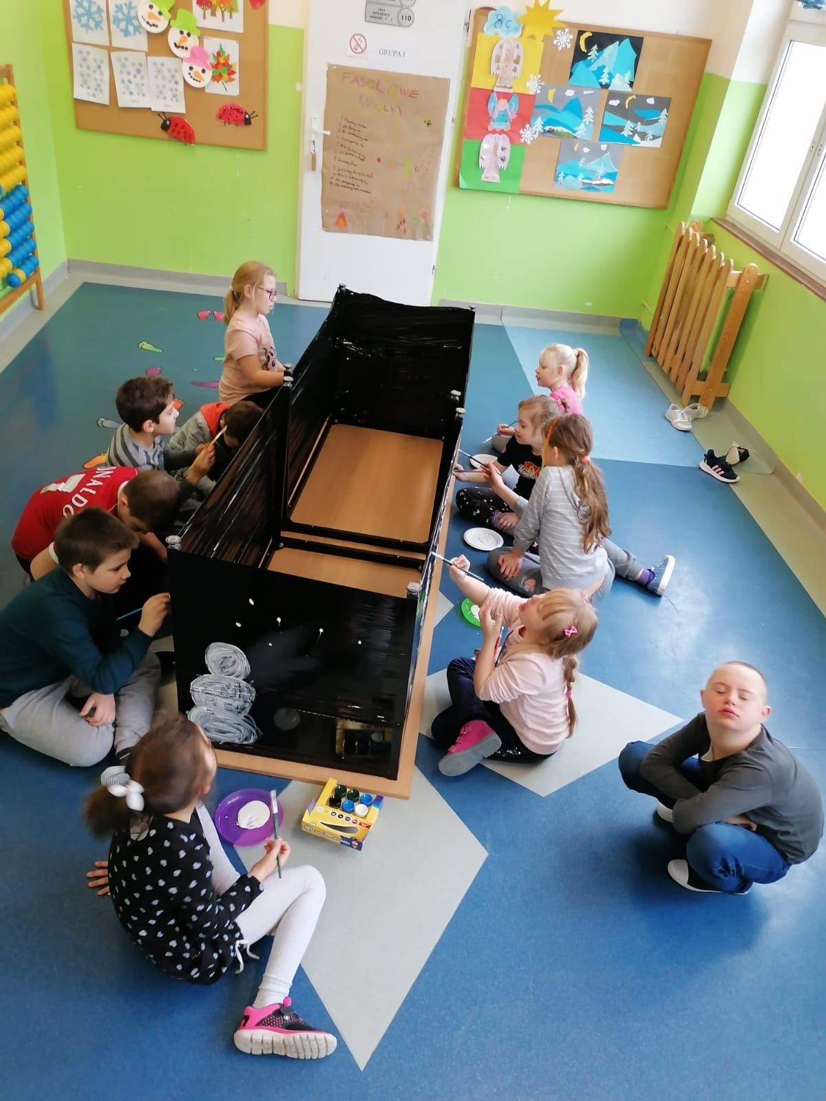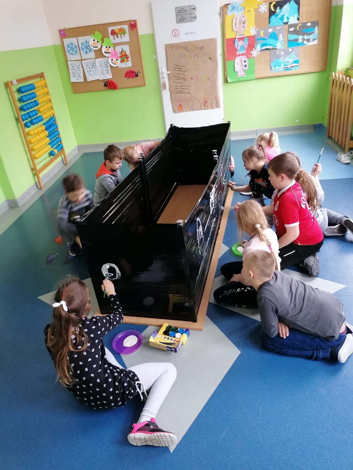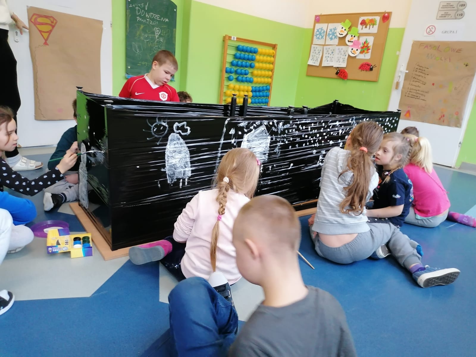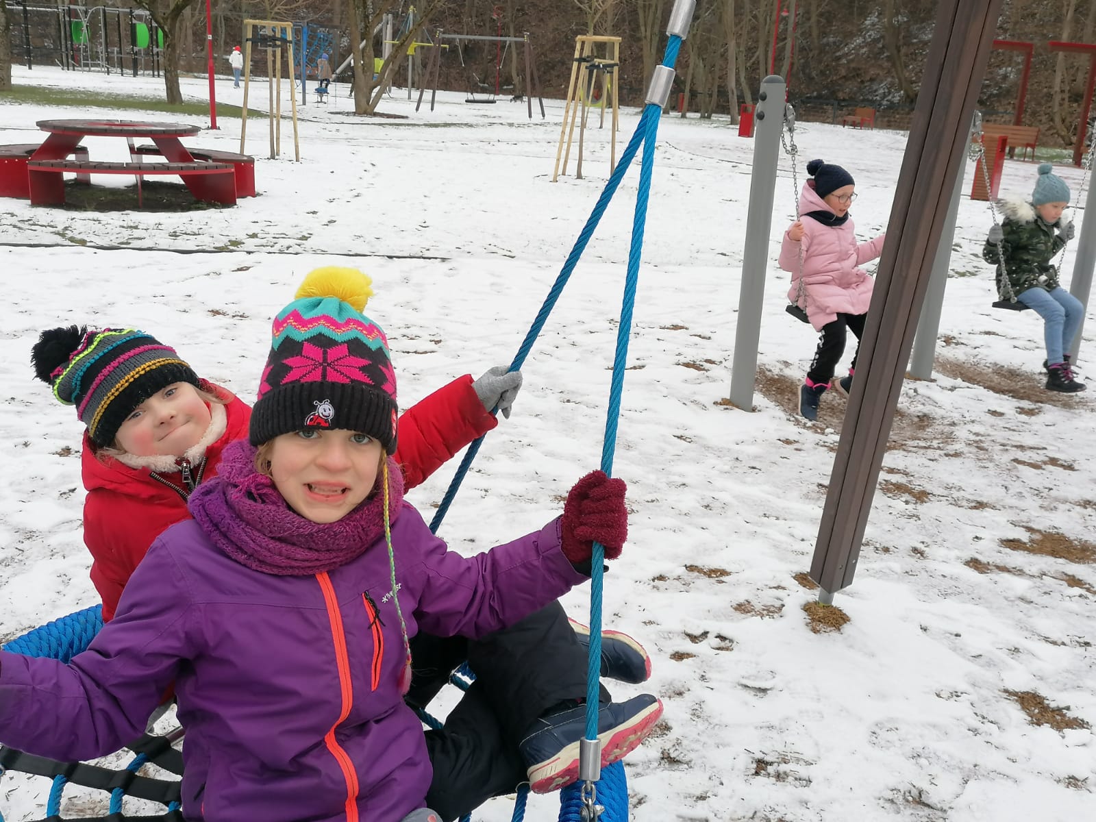 W czwartek uczestnicy półzimowiska udali się do kina Światowid na seans filmowy.  Po filmie odbył się spacer do Parku Dolinka. Po powrocie dzieci malowały na strechu zimowy krajobraz.