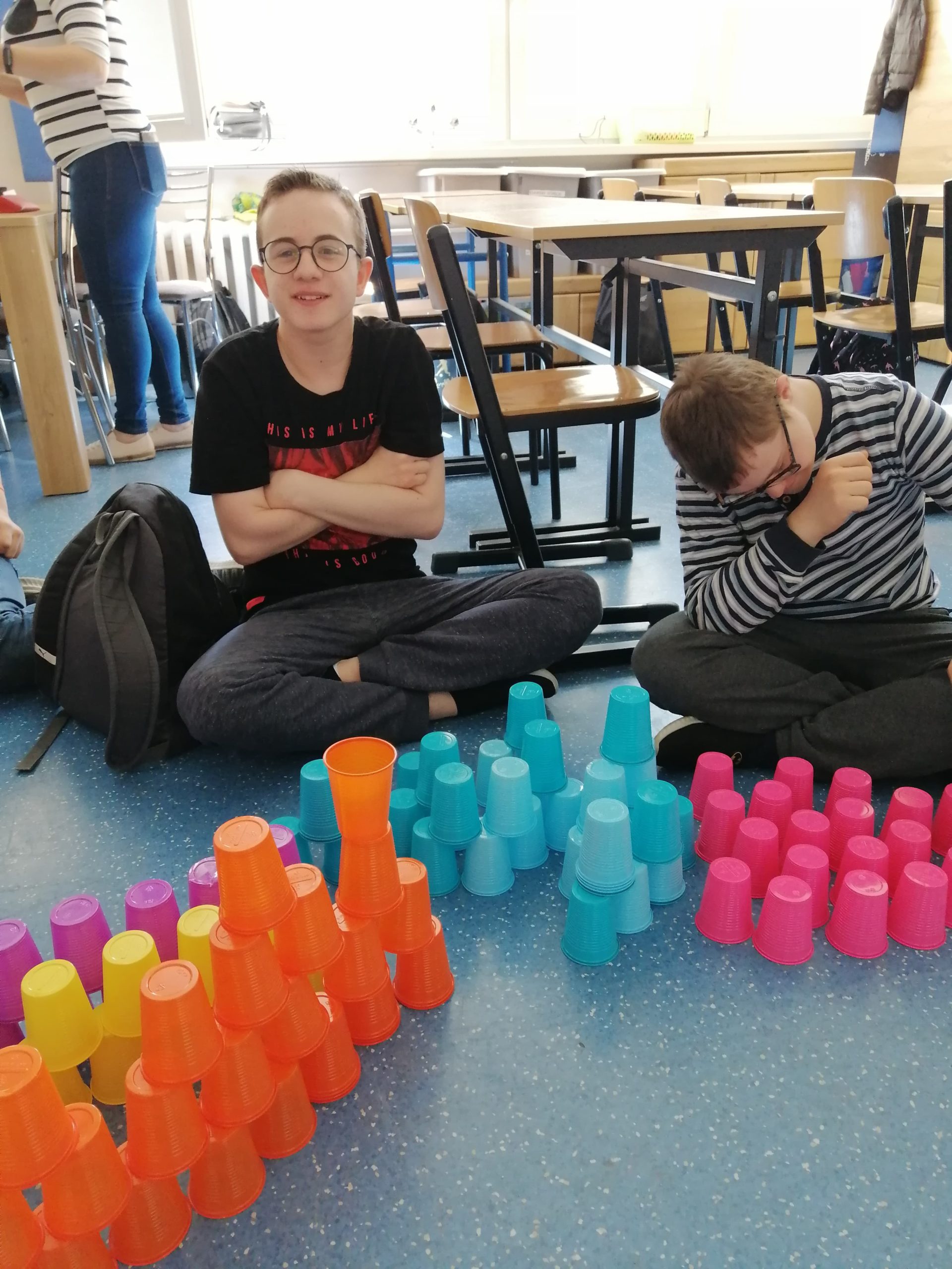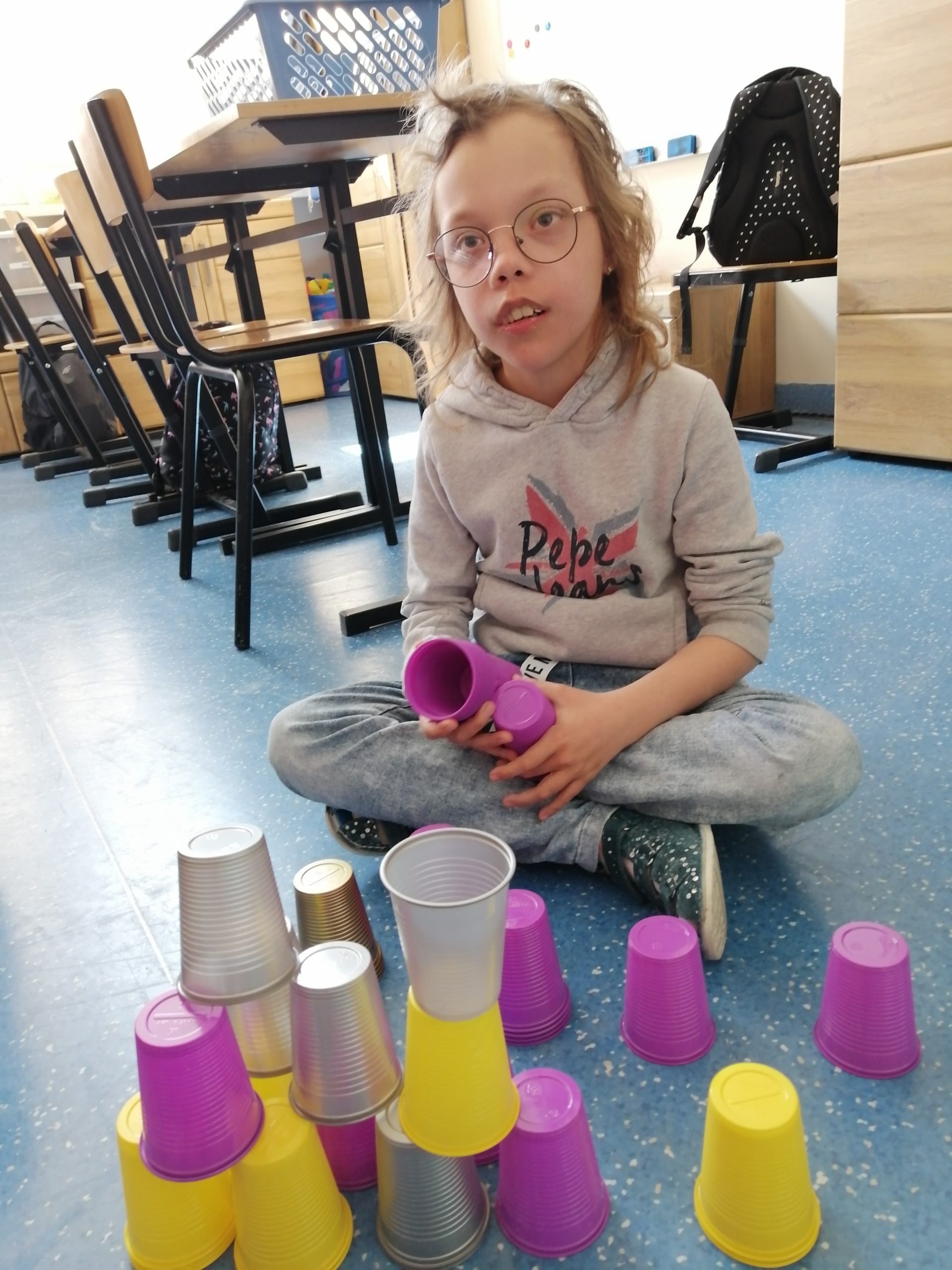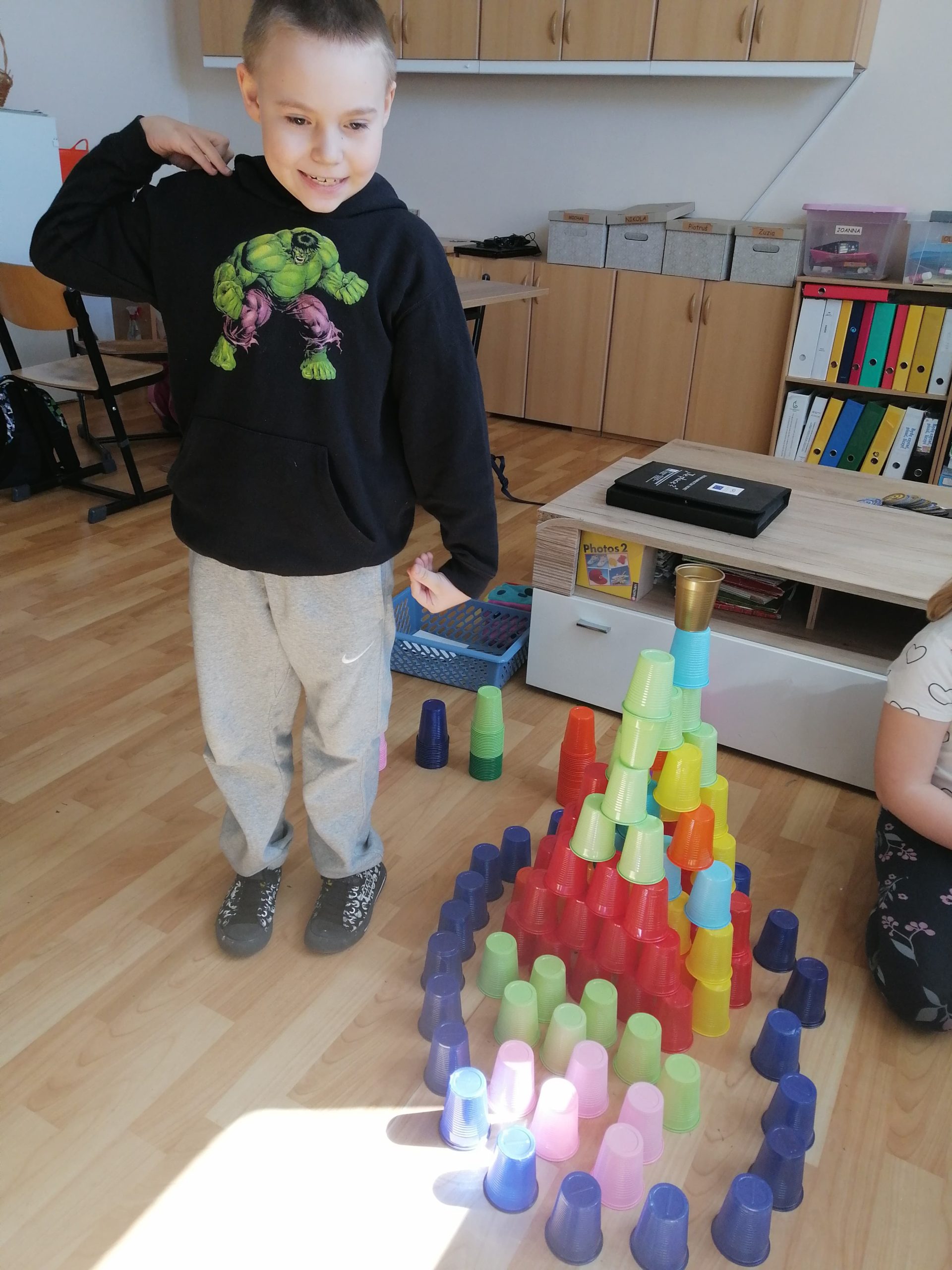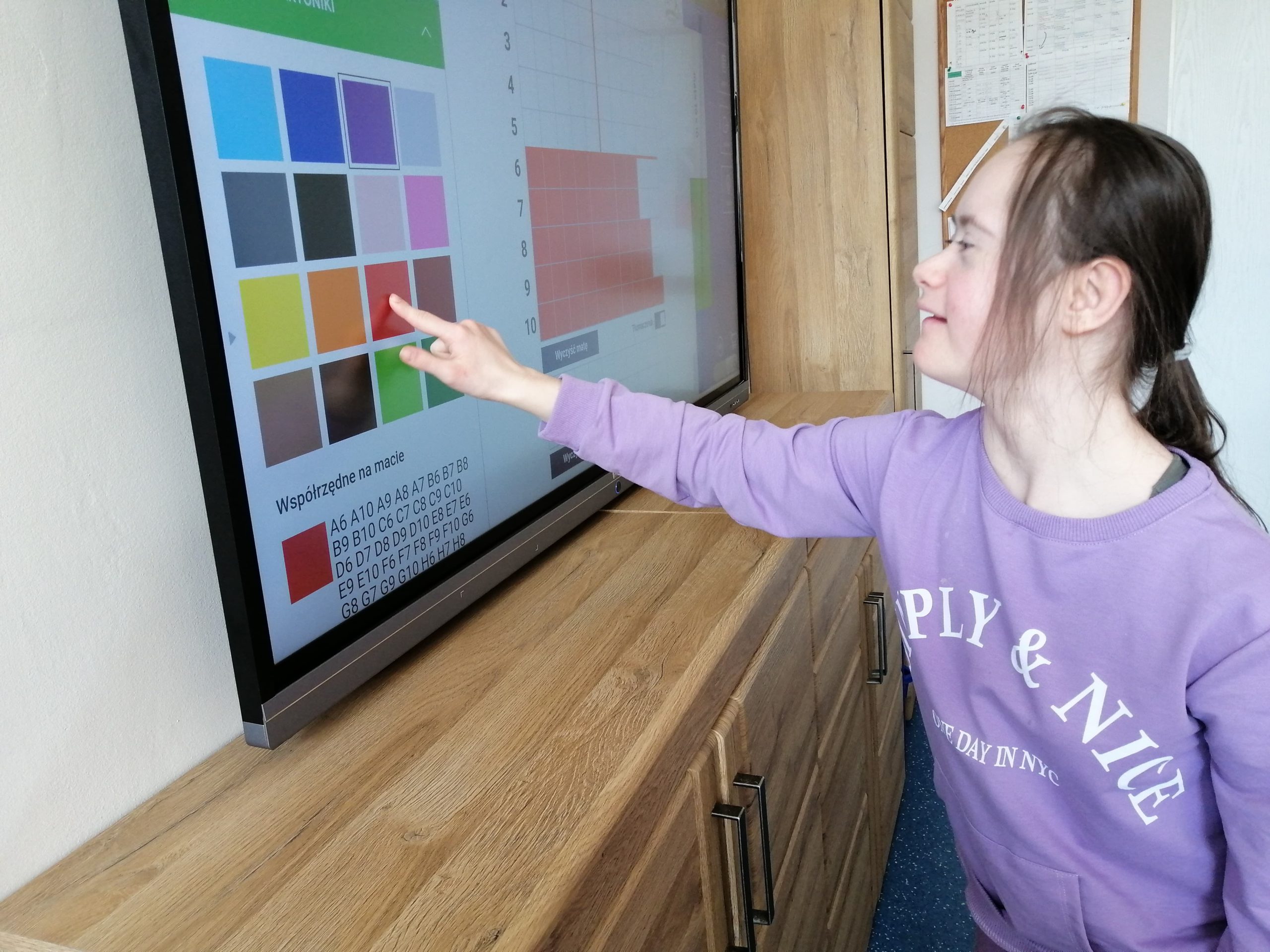 Klasy: Ia, IIc, VIIIc oraz VI/VIIa, wykorzystując wirtualną matę do kodowania, realizowały ciekawą tematykę, dotyczącą Polski. Utrwalały symbole narodowe oraz pierwsze stolice naszego kraju. Następnie wznosiły Pałac Kultury i Nauki oraz osadę Biskupin z kolorowych kubeczków. Na zakończenie spotkania utrwalały kolory, tworząc wirtualną flagę naszego kraju.