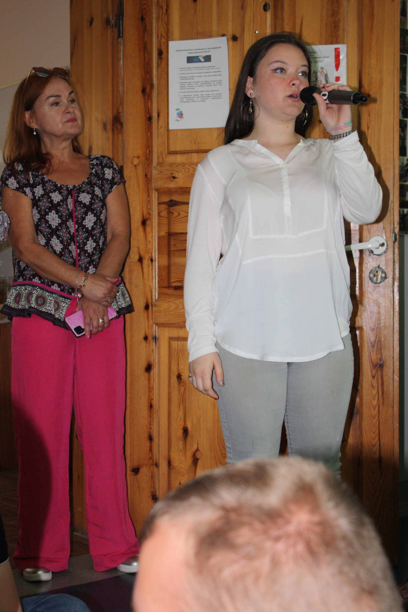Zaproszeni goście z wielkim zainteresowaniem obejrzeli film prezentujący modę z profesjonalnych wybiegów. Ciekawym akcentem był również pokaz zdjęć naszych absolwentów z poprzednich pokazów mody. Wróciły wspomnienia. Imprezę uatrakcyjnił występ karaoke w brawurowym wykonaniu Darii, Wiktorii, Konrada, Sebastiana, Pauliny i Oli, którzy swoim śpiewem wprowadzili wszystkich w taneczny nastrój.