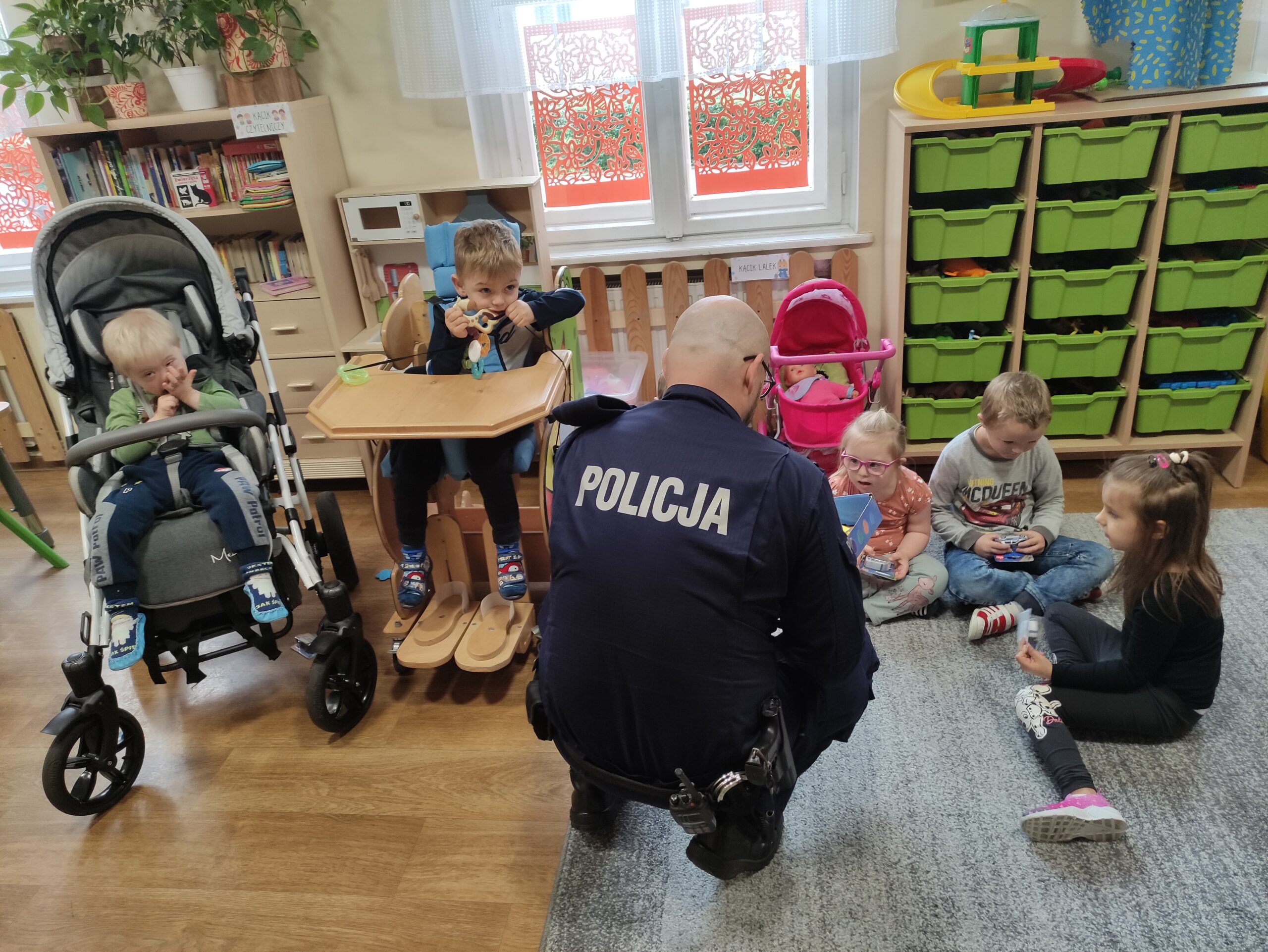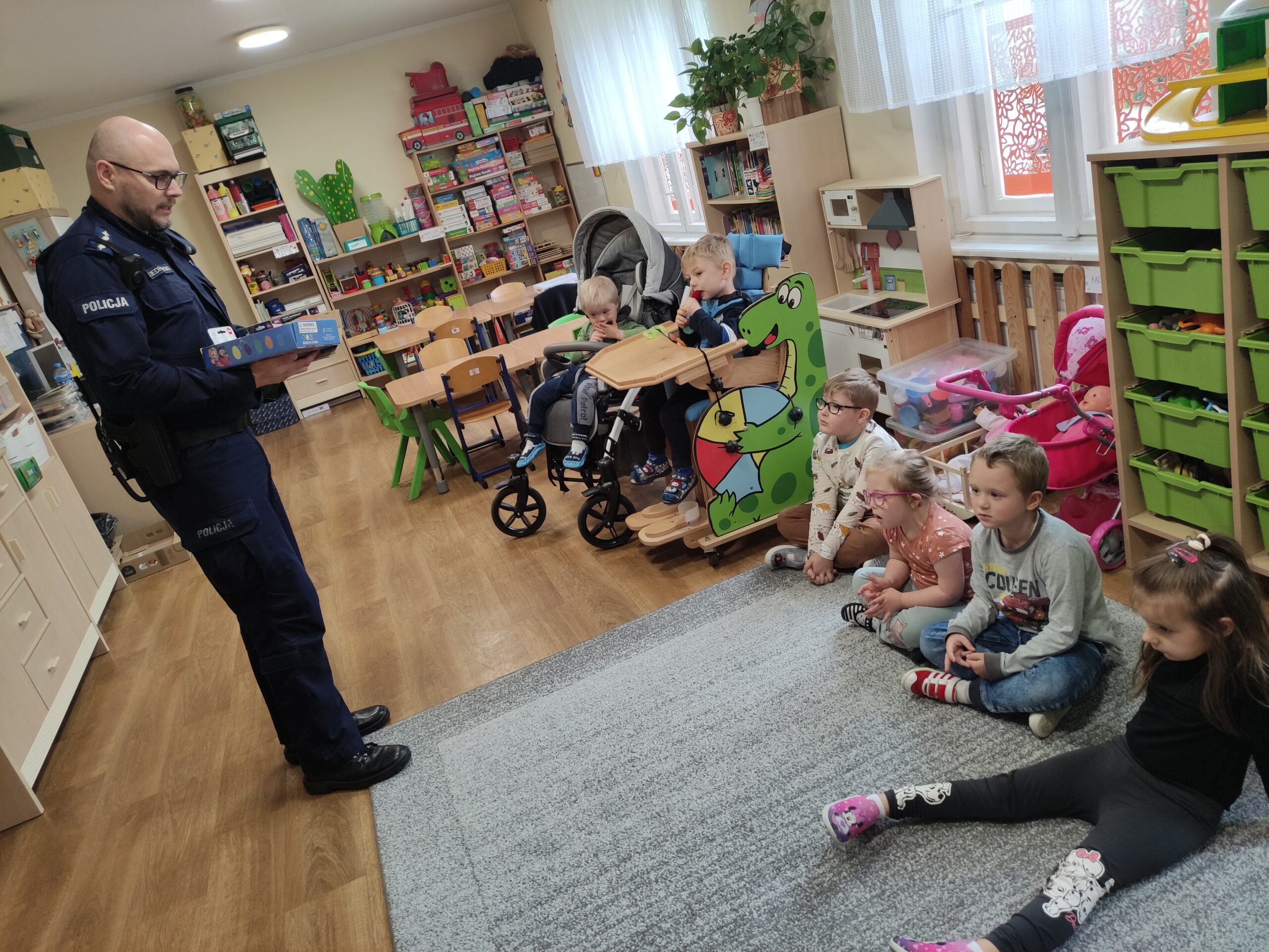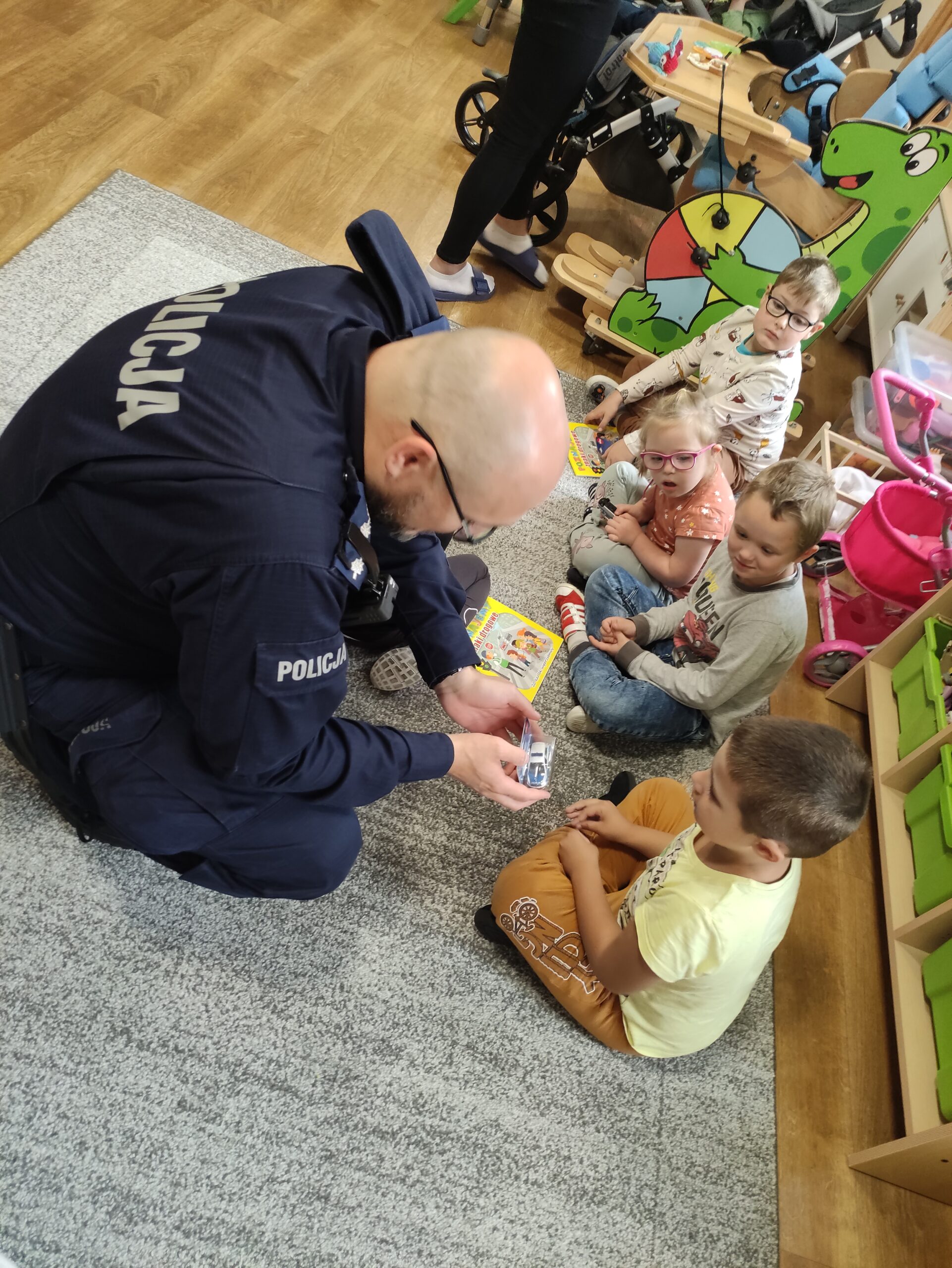 W poprzednim tygodniu rozmawialiśmy o zasadach zachowania się na drodze. Nasze pszczółki były na wycieczce na pobliskim skrzyżowaniu. Oglądaliśmy sygnalizację świetlna, zebrę, znaki drogowe. Teraz już każda pszczółka wie, że na zielonym świetle przez pasy przechodzi się. Na koniec tygodnia z niespodzianką odwiedził nas Pan Policjant. Opowiedział o bezpieczeństwie na drodze i atrybutach policjanta, a na koniec spotkania każdy przedszkolak dostał upominek. Dziękujemy za cenna naukę!