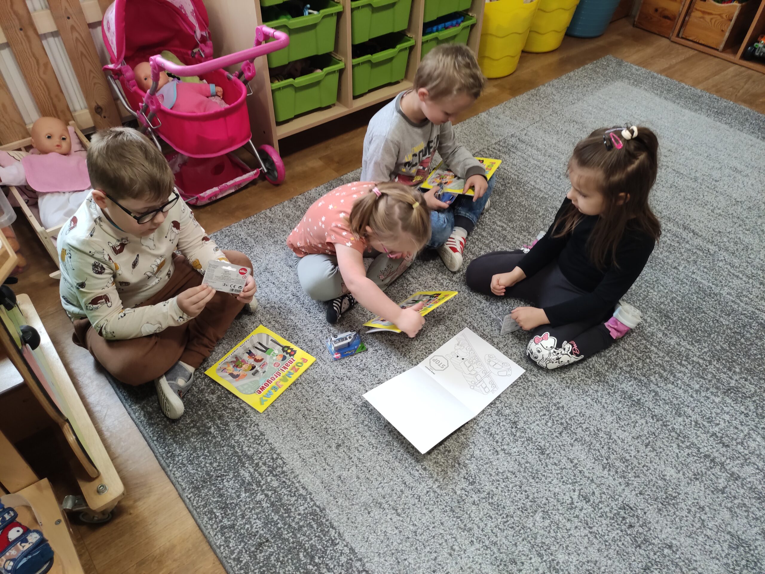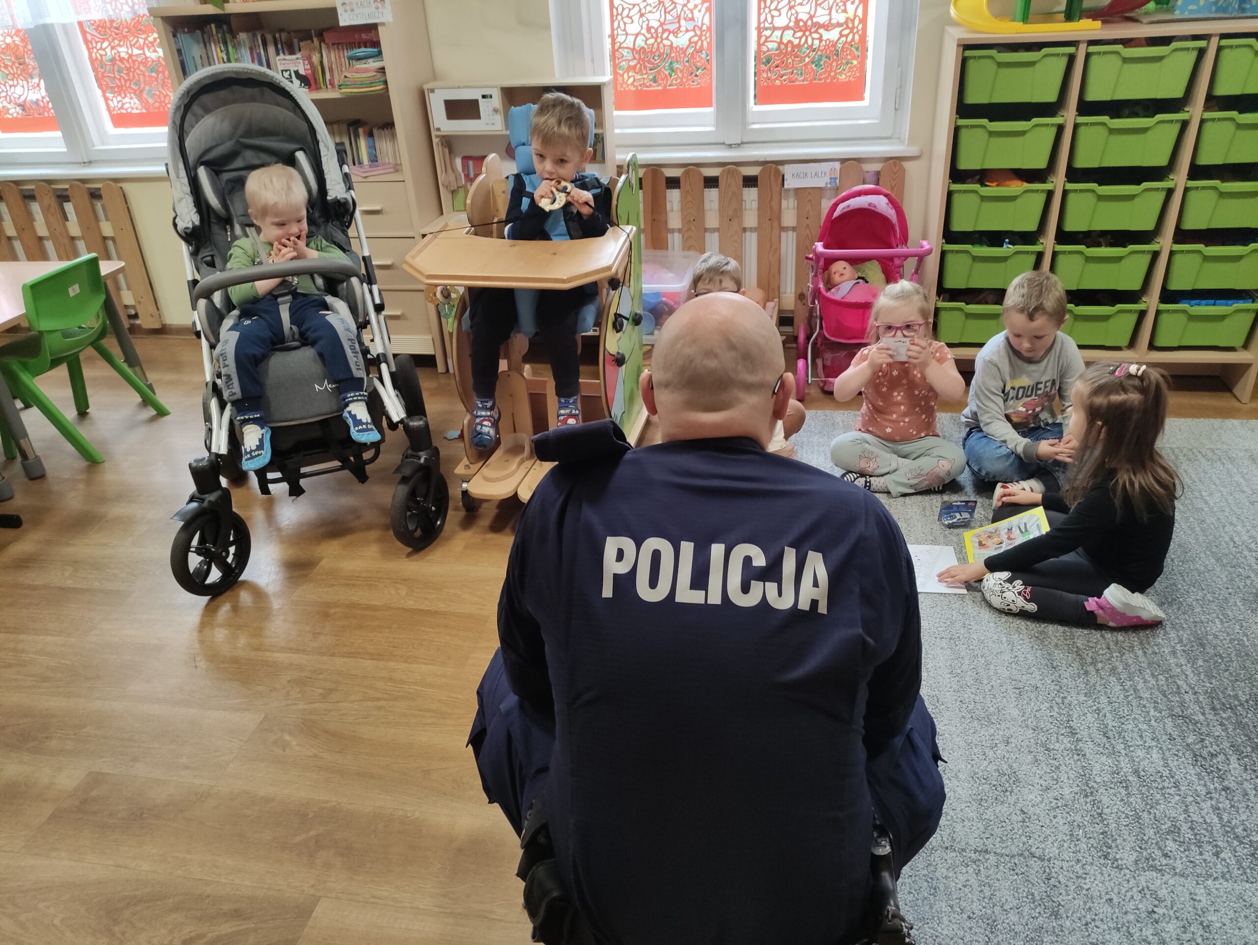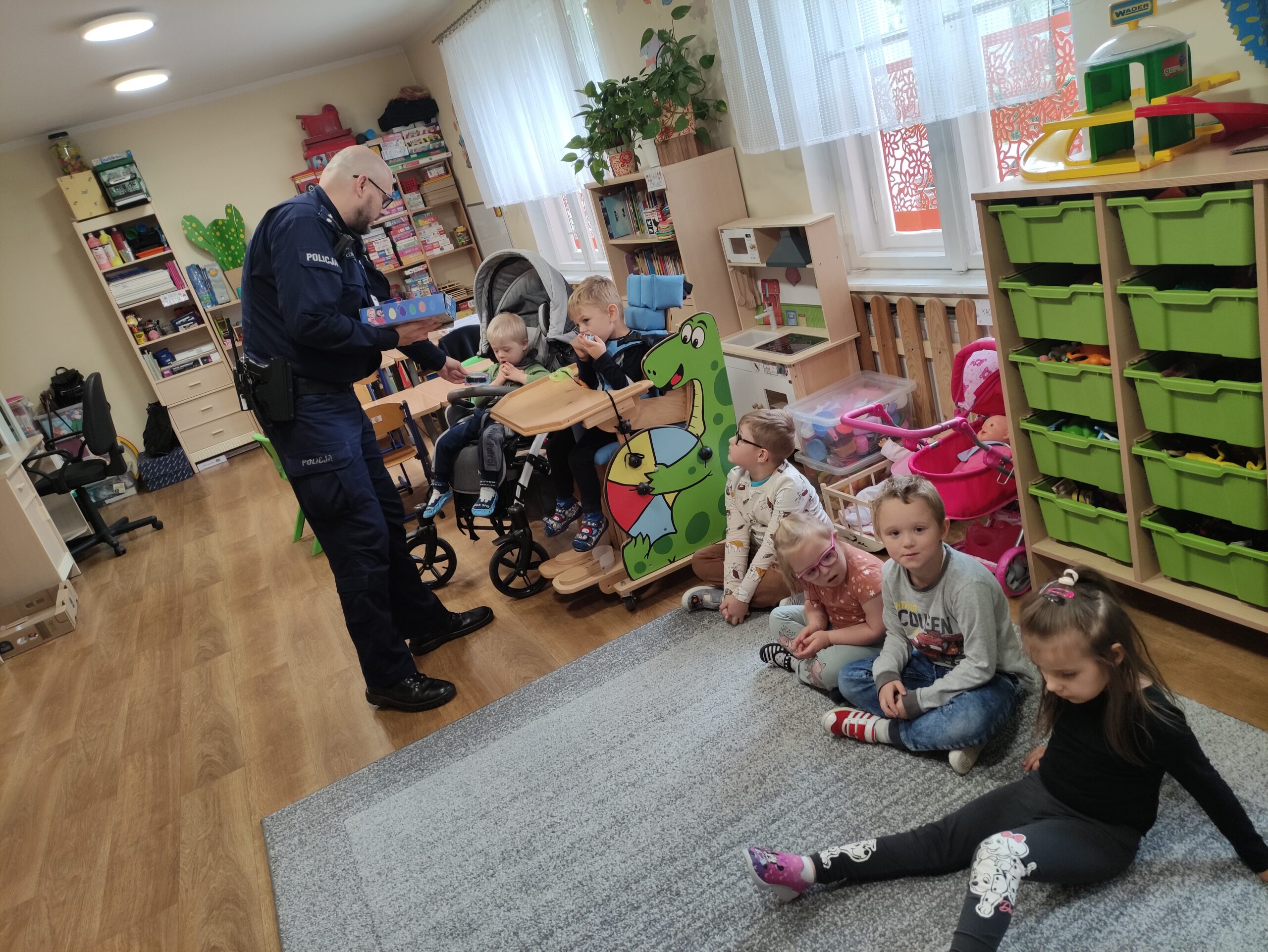 W poprzednim tygodniu rozmawialiśmy o zasadach zachowania się na drodze. Nasze pszczółki były na wycieczce na pobliskim skrzyżowaniu. Oglądaliśmy sygnalizację świetlna, zebrę, znaki drogowe. Teraz już każda pszczółka wie, że na zielonym świetle przez pasy przechodzi się. Na koniec tygodnia z niespodzianką odwiedził nas Pan Policjant. Opowiedział o bezpieczeństwie na drodze i atrybutach policjanta, a na koniec spotkania każdy przedszkolak dostał upominek. Dziękujemy za cenna naukę!