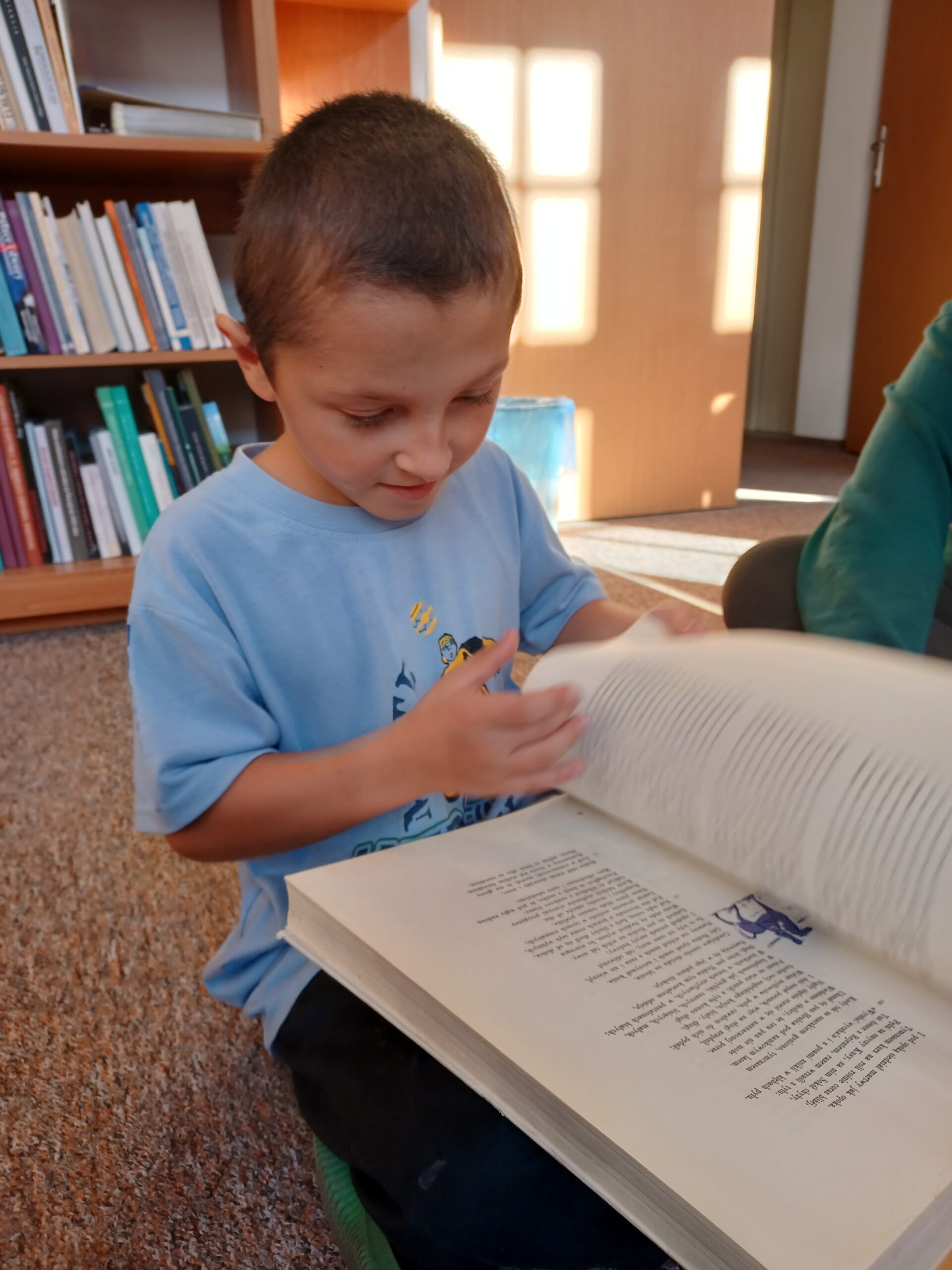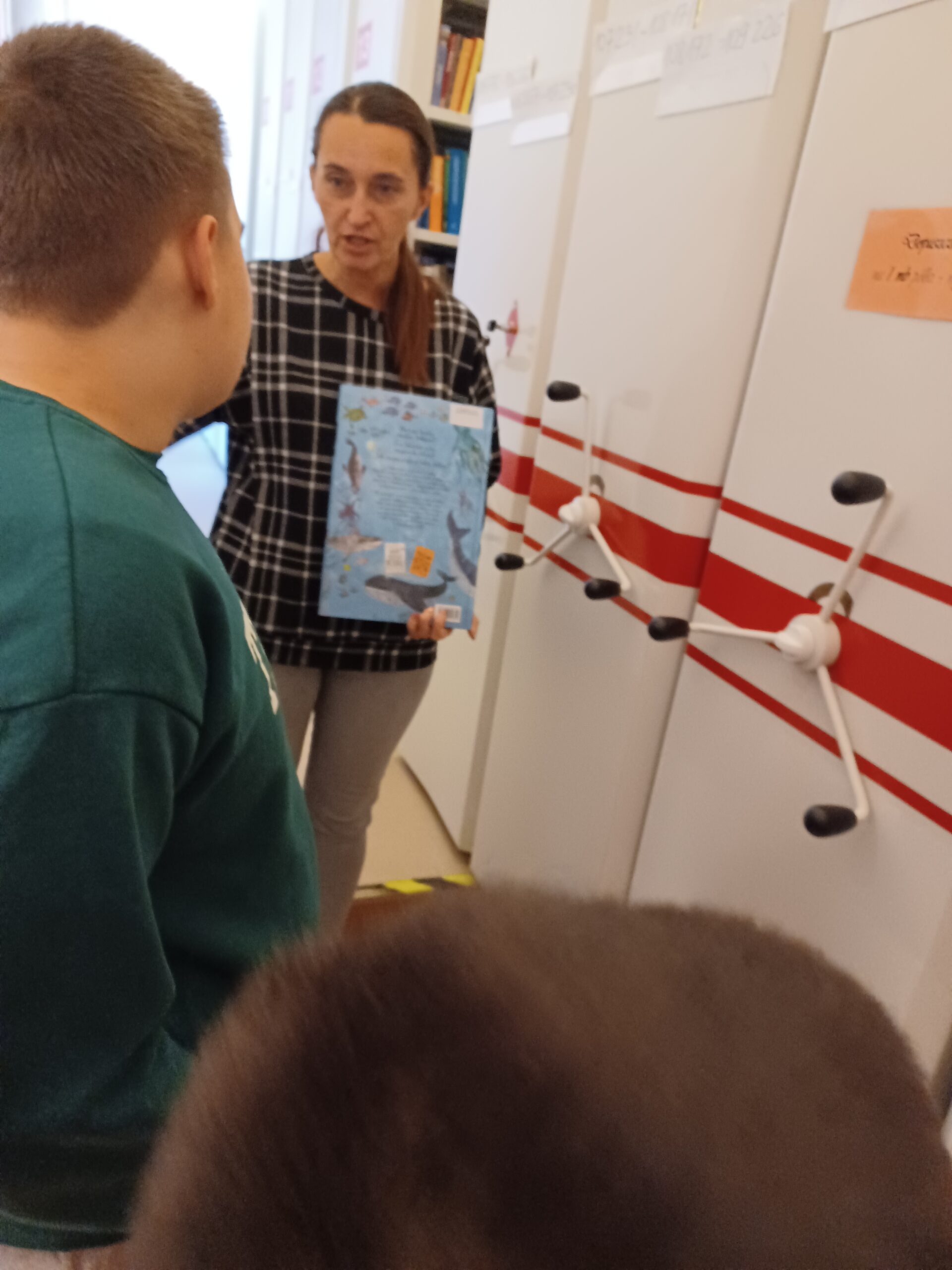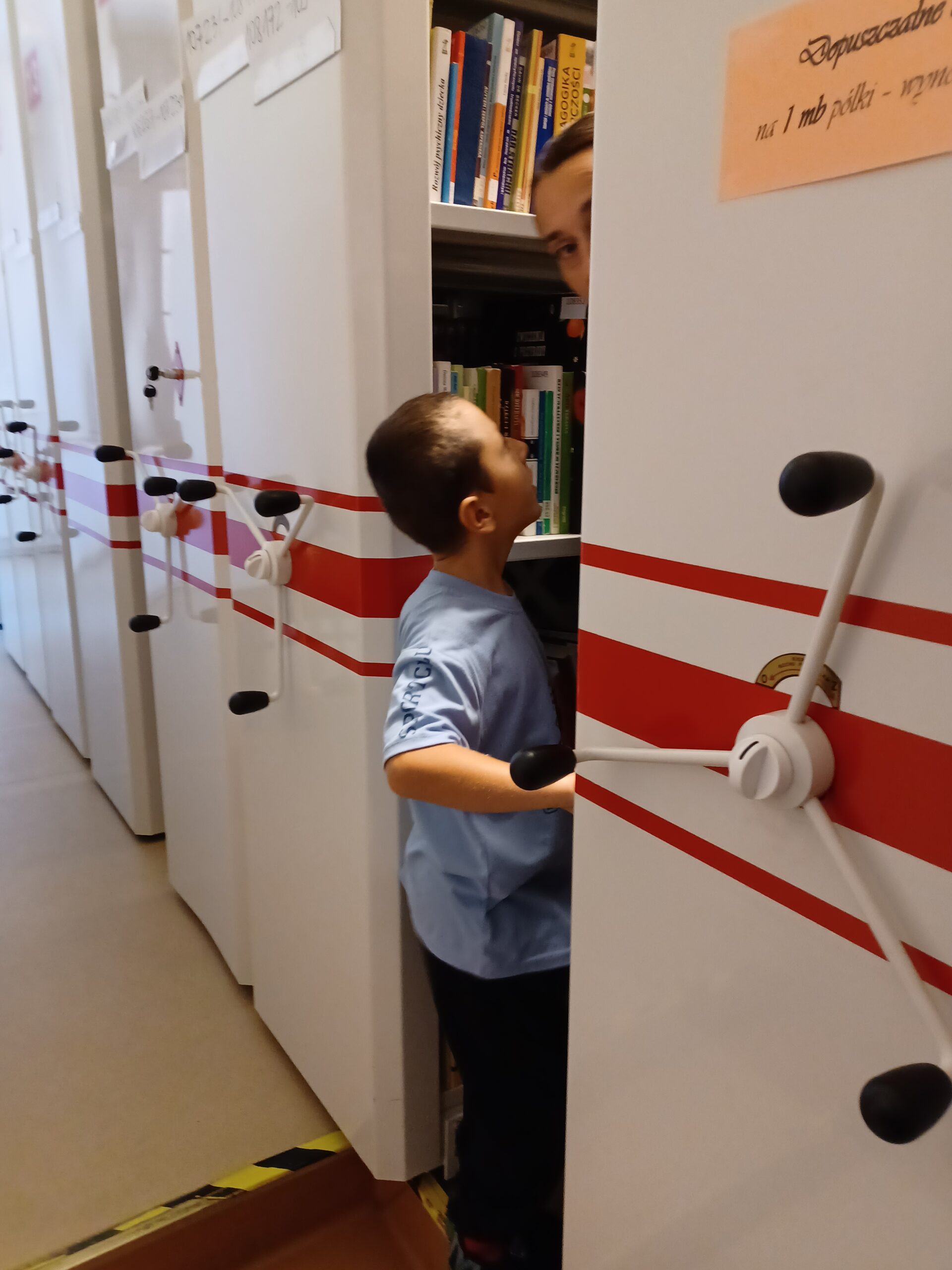 Poznaliśmy wszystkie sekrety biblioteki. Dowiedzieliśmy się kto i w jaki sposób zamawia książki, nadaje kod kreskowy. Trzymaliśmy w dłoniach największą i najmniejszą książkę. Uczyliśmy się wypożyczać książki. Najtrudniejszym zadaniem było otwieranie ciężkich regałów z książkami, a także podchody biblioteczne.