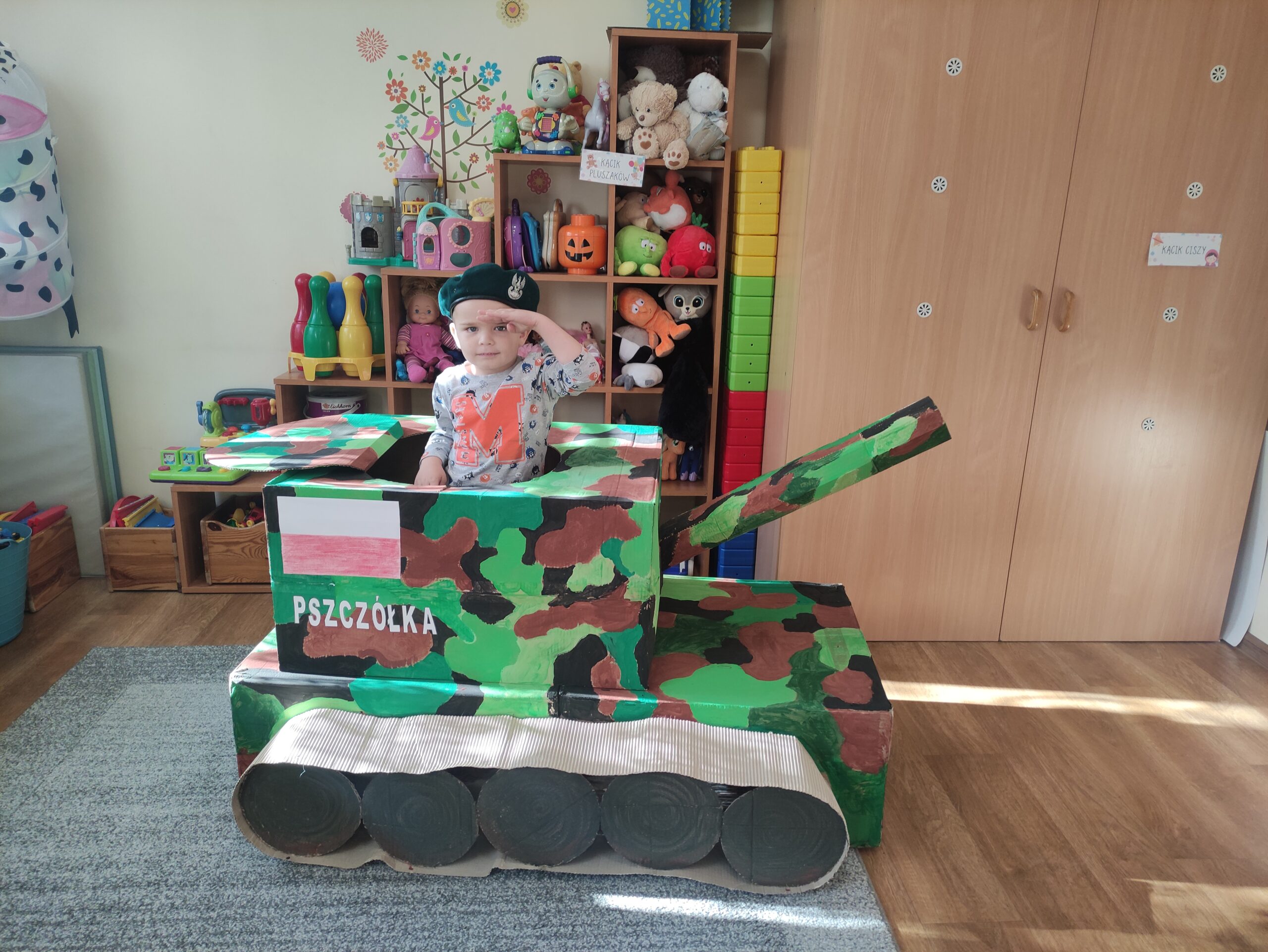 W ostatnich tygodniach w naszym przedszkolu mamy wiele atrakcji. Bierzemy Udział w realizacji projektu Bezpieczny El- Przedszkolak, który realizowany jest na terenie wszystkich publicznych placówek w naszym mieście. Celem programu jest promocja działań z zakresu szeroko rozumianego bezpieczeństwa. Realizacja projektu, który jest nauką poprzez zabawę, ma się przyczynić w dużej mierze do przyswojenia przez dzieci bogatej wiedzy z zakresu bezpieczeństwa, kształtując w nich odpowiednie postawy i prawidłowe nawyki oraz zachęcać innych w swoim otoczeniu, zwłaszcza rodziców do podobnych działań. W projekcie czynny udział biorą także służby mundurowe. Każdy tydzień należy do jednej ze służb- straż miejska, leśnicy, straż pożarna, wojsko, pogotowie ratunkowe, policja. Zrealizowane dotychczas zostały już 3 tygodnie- granatowy- straż pożarna, zielony- leśnicy, czerwony- straż pożarna. Jesteśmy w trakcie tygodnia moro- wojsko. Podczas tych tygodni dzieci poznały poszczególne zawody, specyfikę pracy oraz atrybuty- strażnika miejskiego, leśnika, strażaka oraz żołnierza. Uczestniczyły w wielu zabawach ruchowych, logopedycznych, sensorycznych, plastycznych. Zapraszamy na fotorelację z tego czasu.