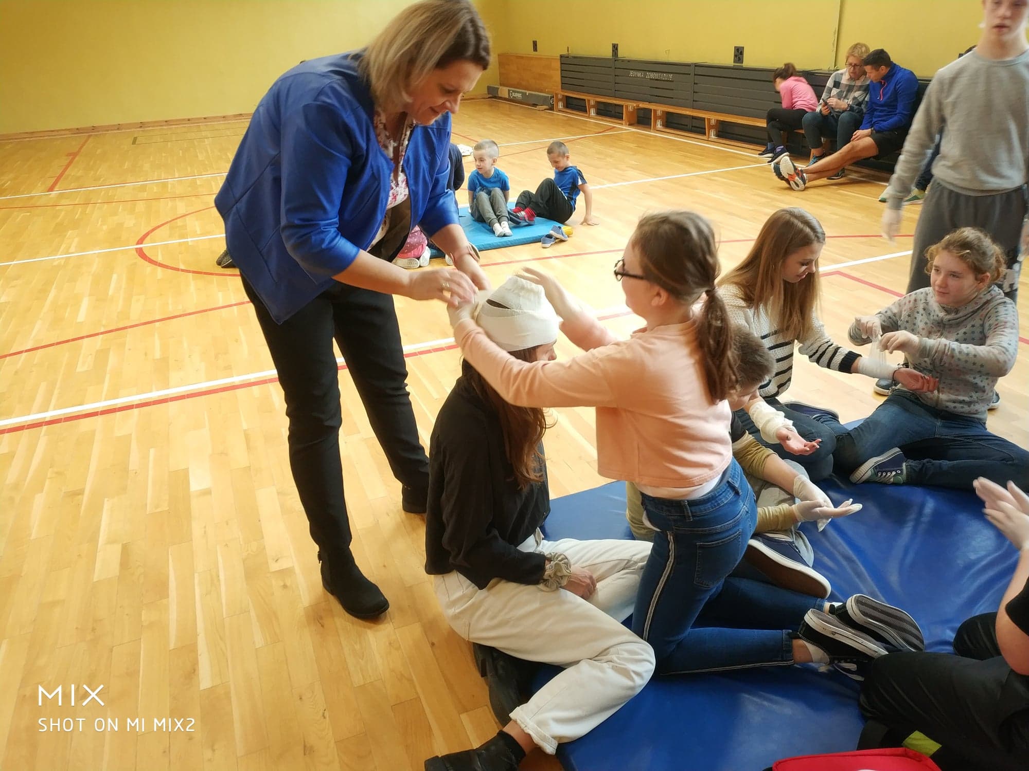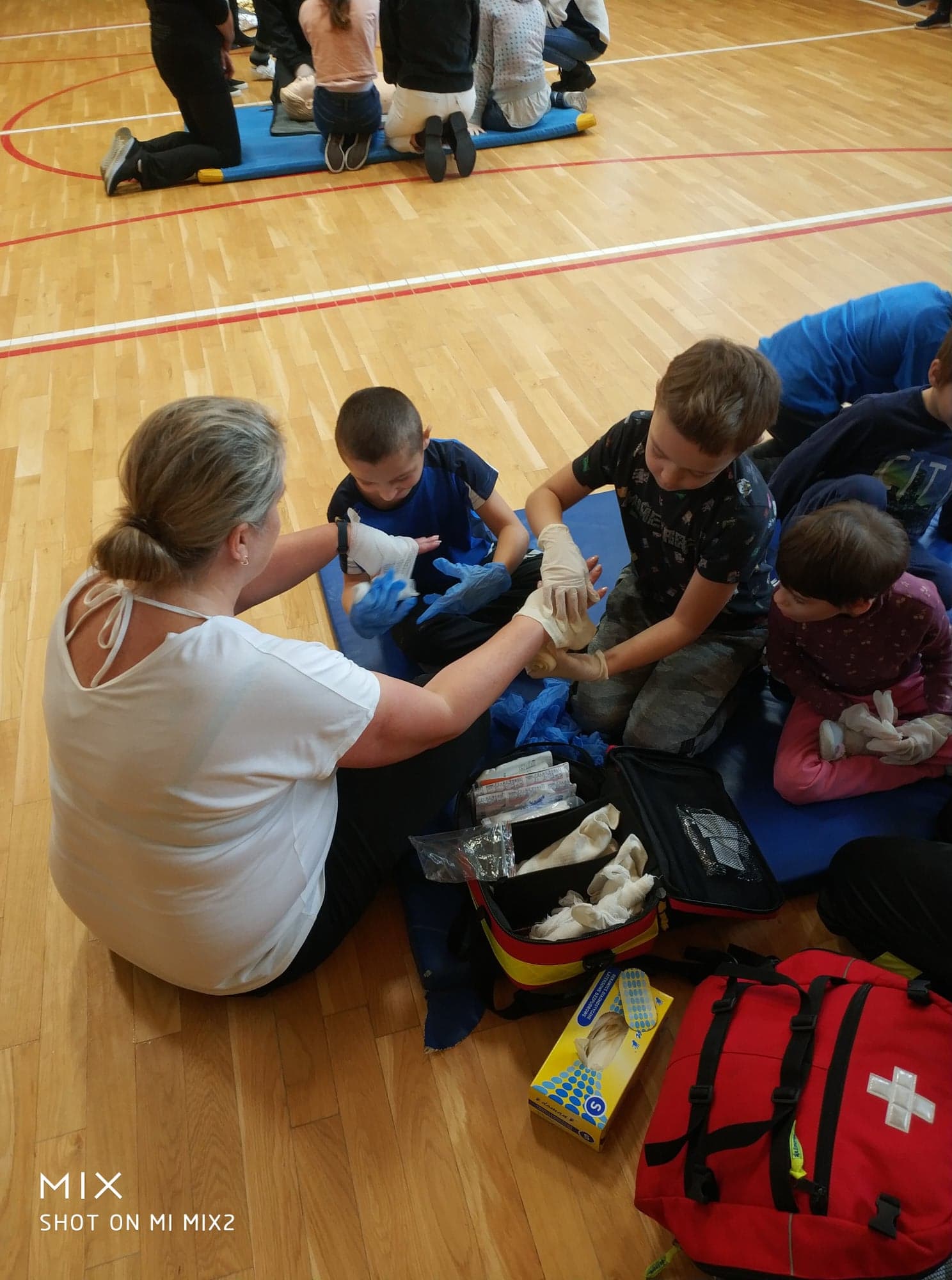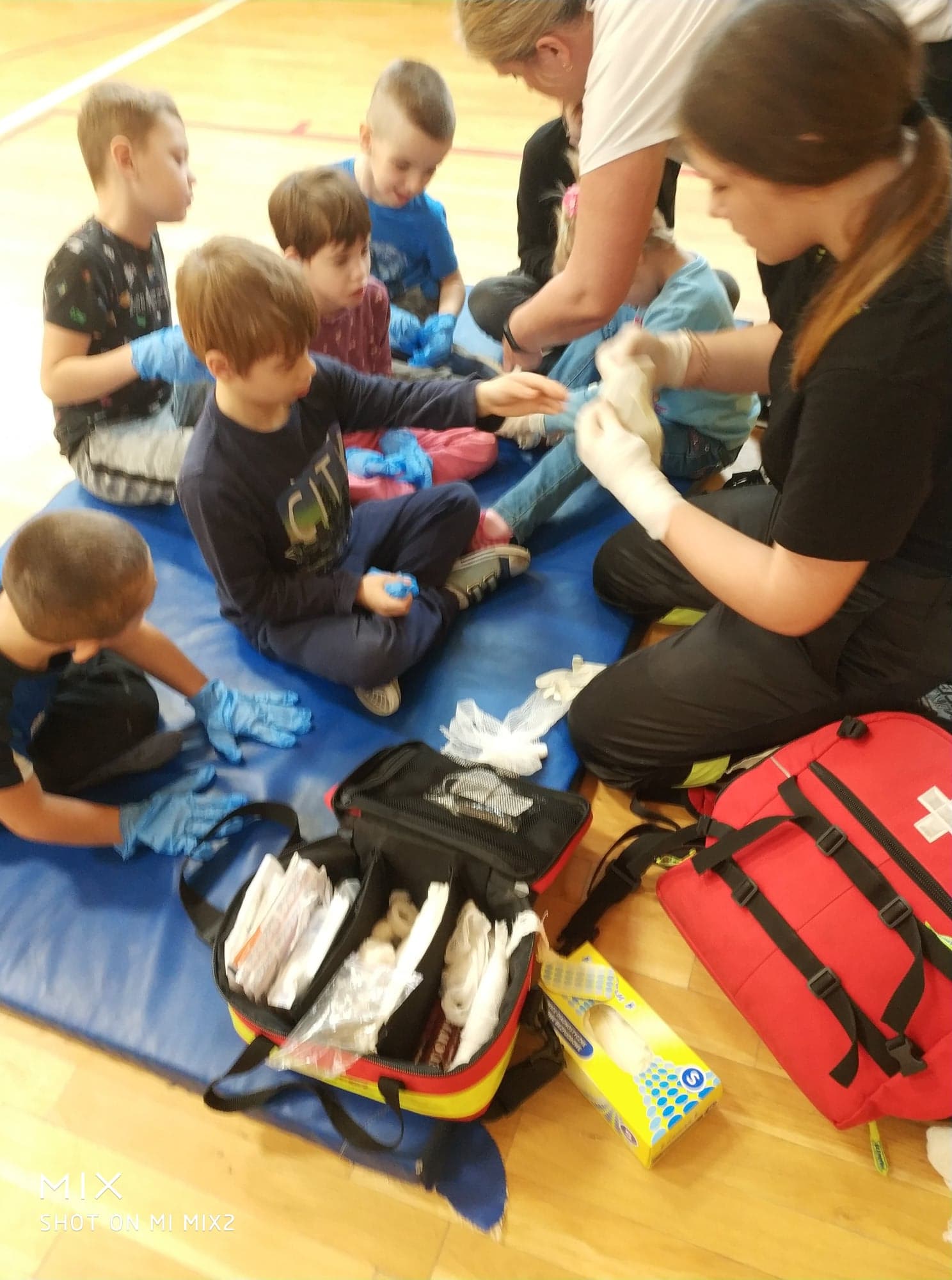 Piątkowy poranek 28 października 2022 roku upłynął na ćwiczeniach prawidłowego zakładania opatrunków, utrwalaniu bezpiecznej pozycji bocznej oraz utrwalaniu zasad resuscytacji. Największym zdziwieniem najmłodszych ratowników było to, że mogą sobie pomóc nawzajem oraz osobom całkiem dorosłym.