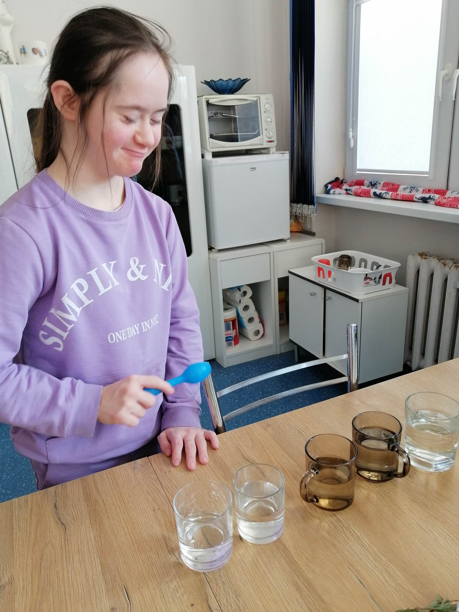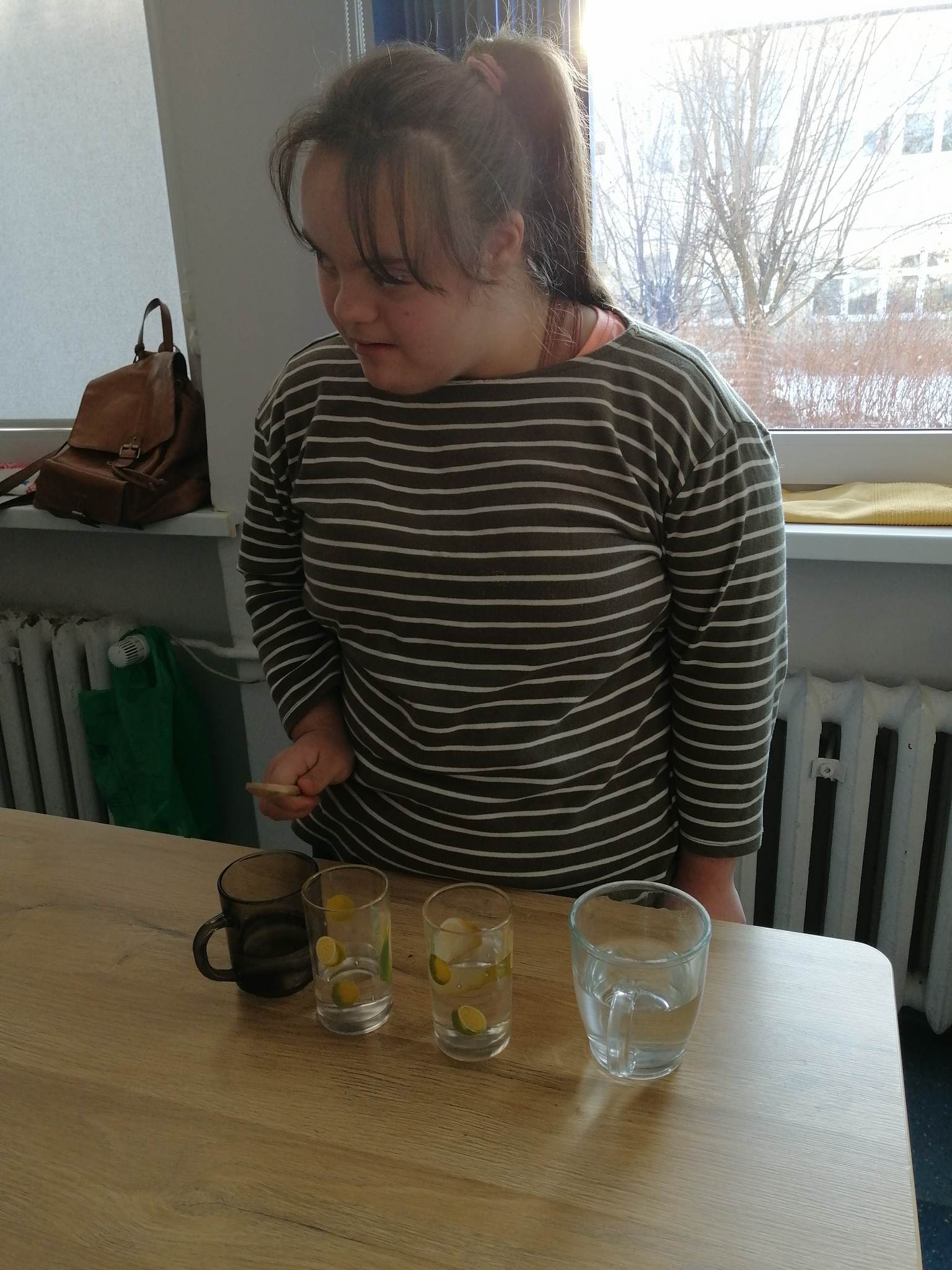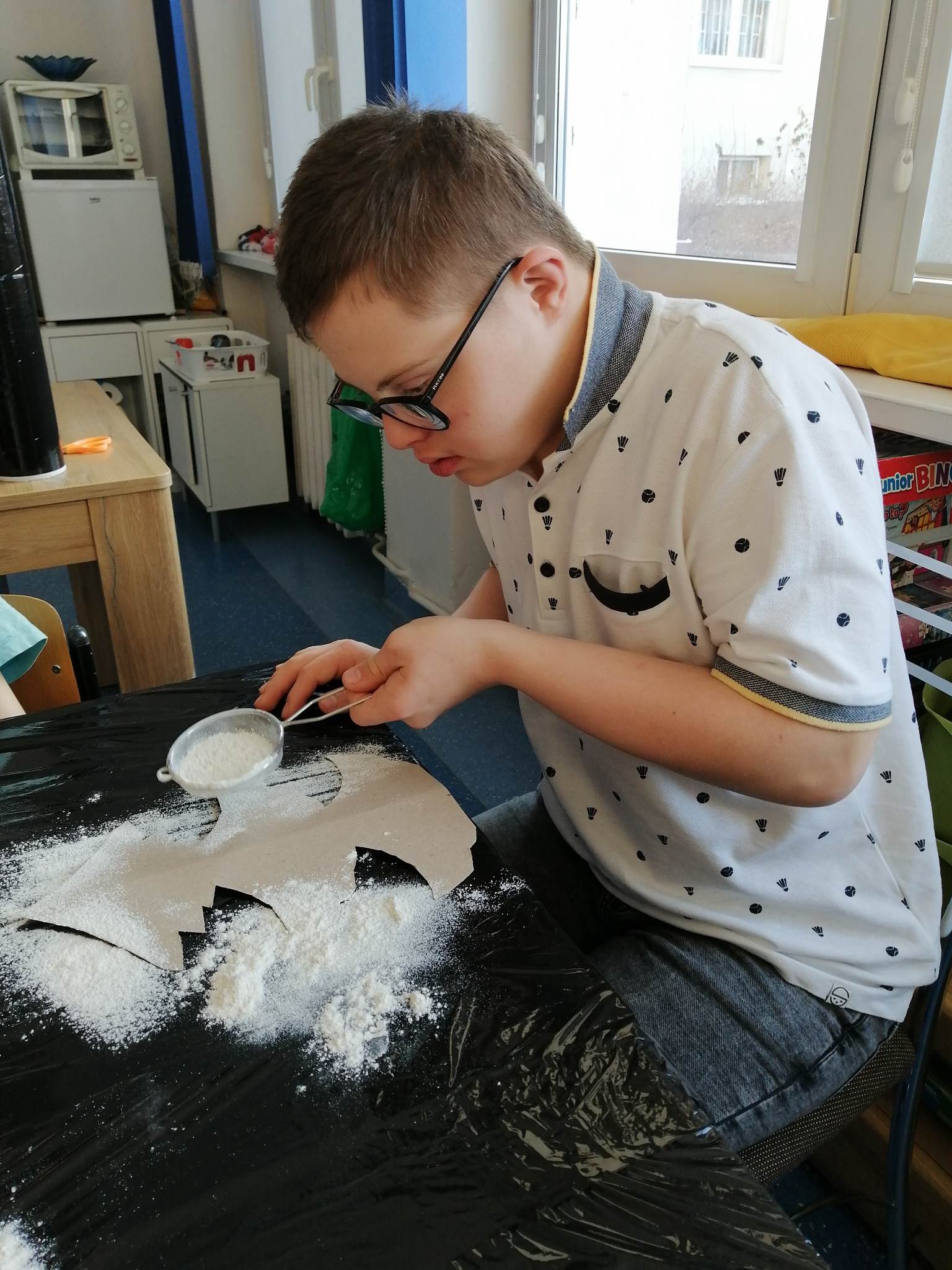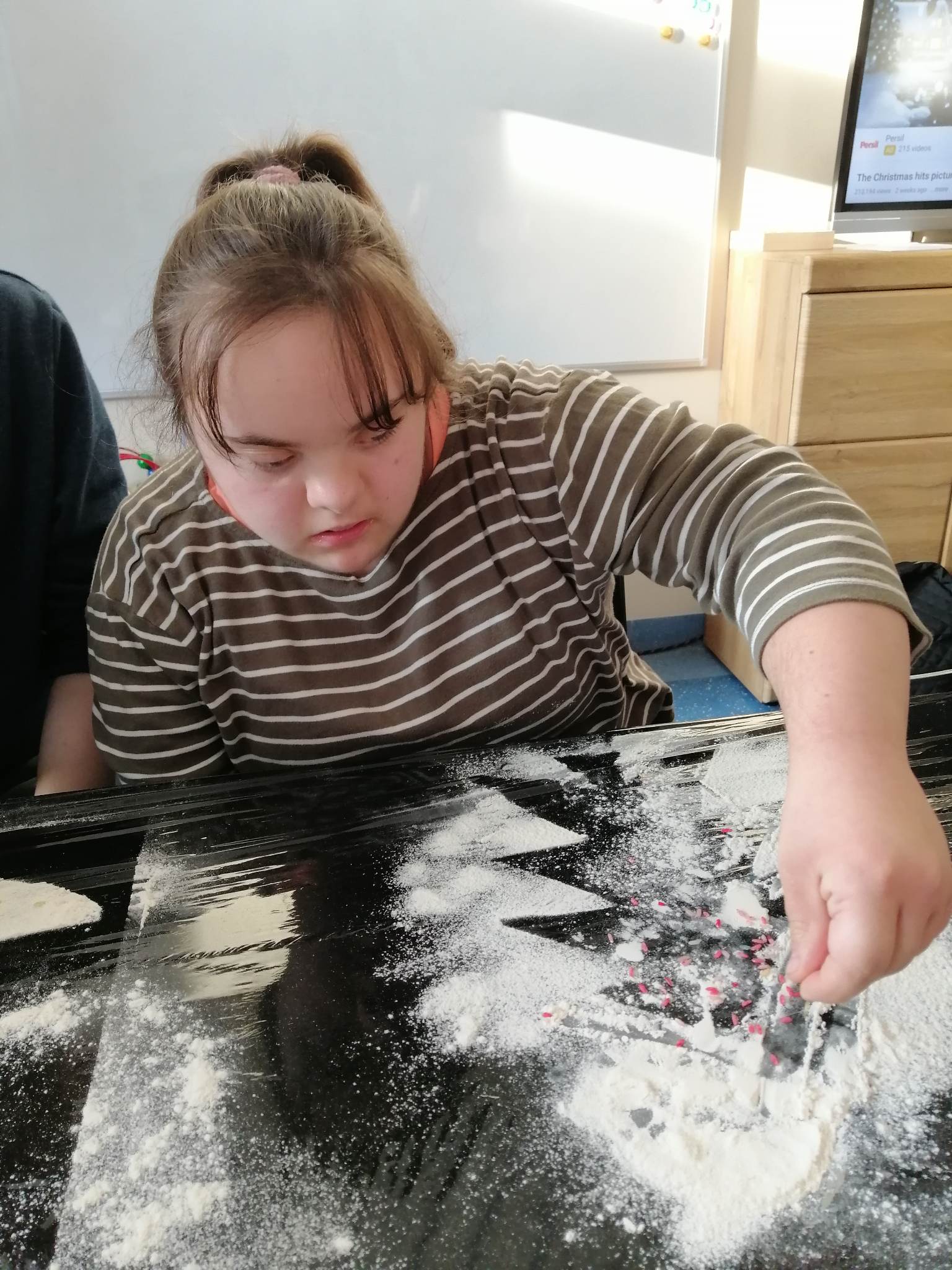 Wstępem do dzisiejszych zajęć z innowacji pedagogicznej była prezentacja o charakterze świątecznym, która stała się inspiracją dla kreatywnych i twórczych działań z wykorzystaniem naturalnych składników. Uczniowie klas III c i VII/VIII a stworzyli zimowy krajobraz, z choinką w roli głównej. Następnie do dźwięków świątecznych utworów dzieci improwizowały na wodnych instrumentach, których dźwięk niósł się po całym korytarzu szkolnym.