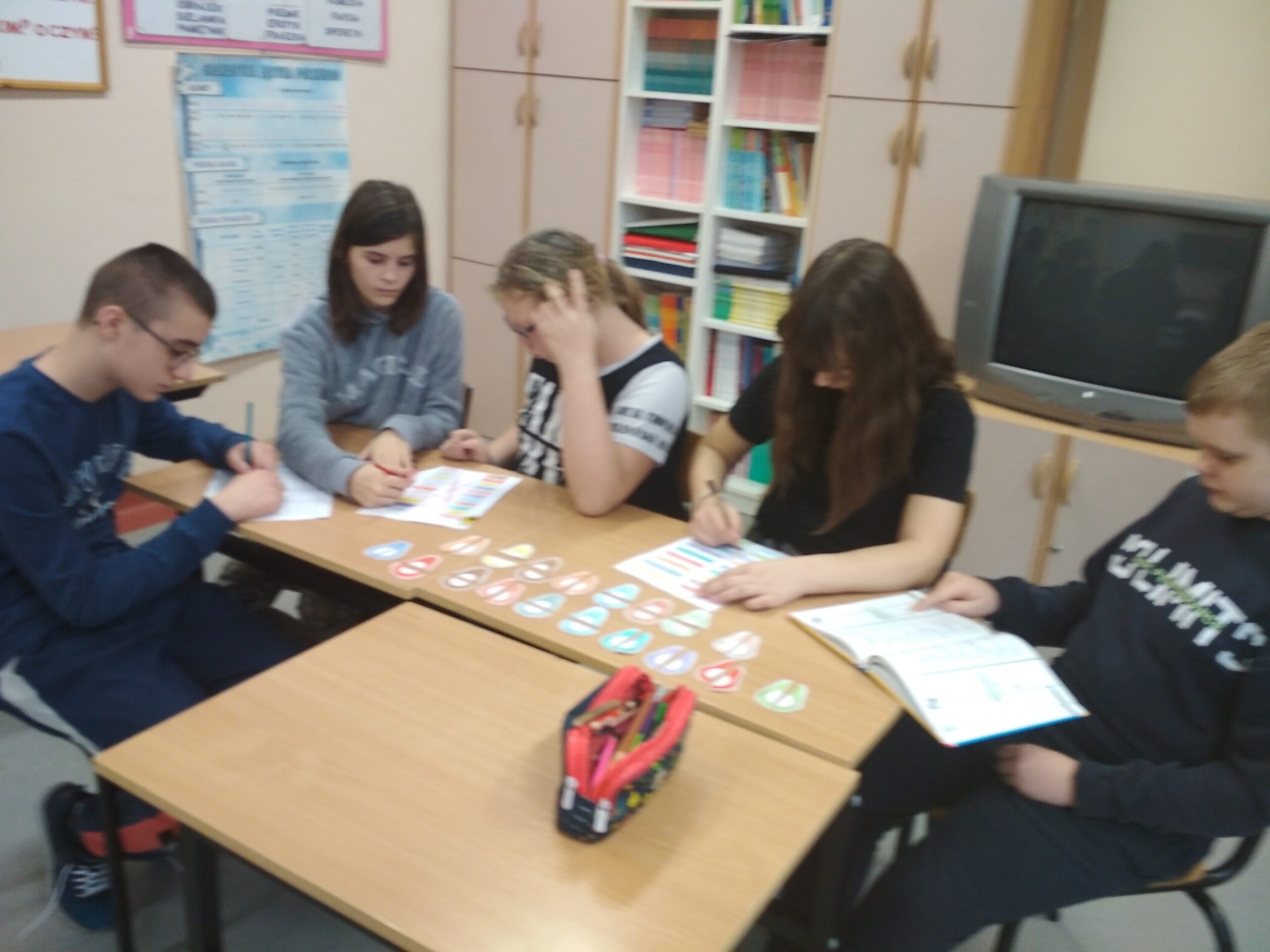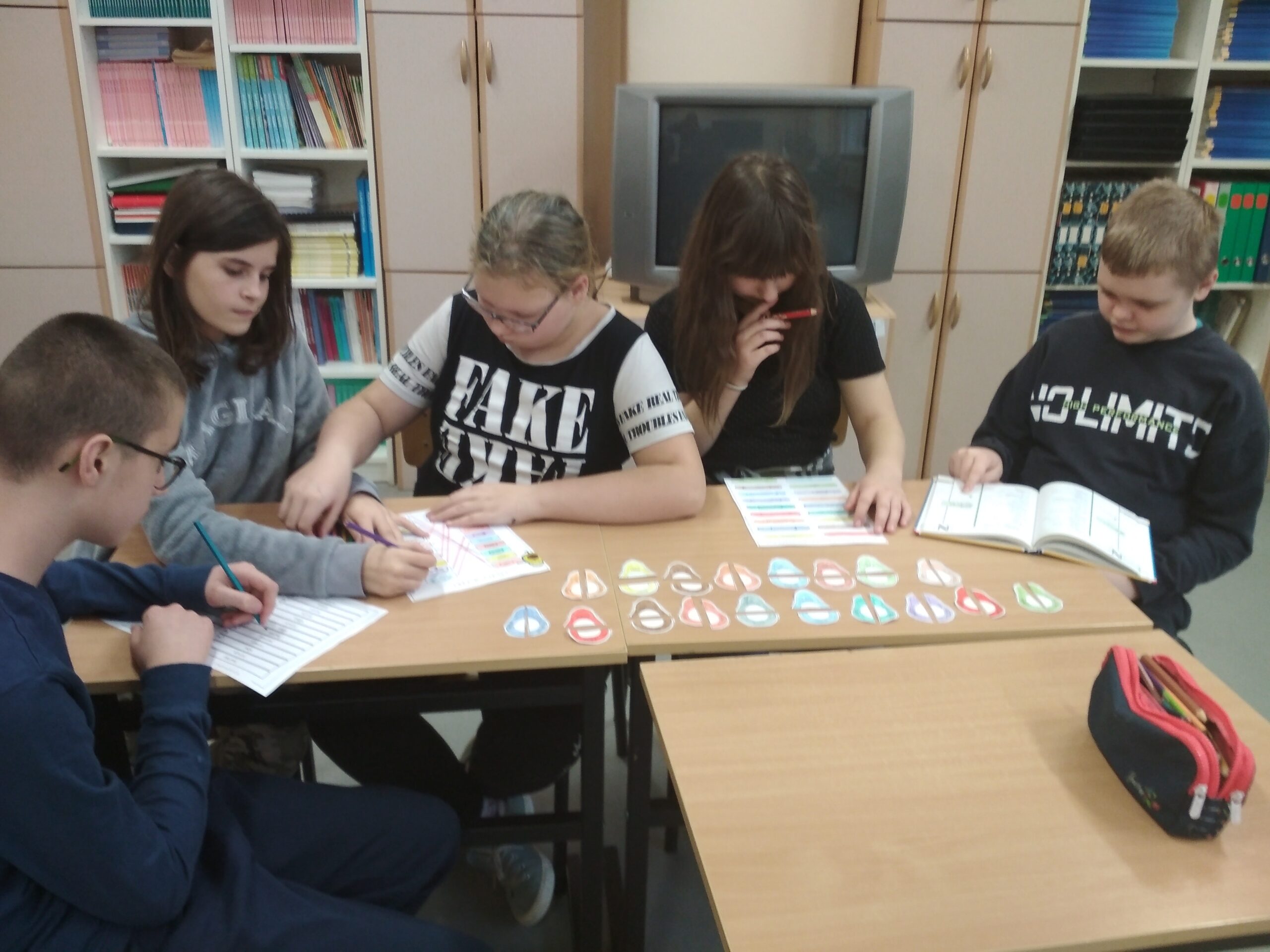 Piątoklasiści pracowali w dwóch grupach, posiłkując się słownikami ortograficznymi. Metoda prób i błędów nie zawsze zdawała egzamin, ale wtedy z pomocą przychodziła pani od polskiego i tablice ortograficzne. Taki bilans tego, co już wiemy, a czego jeszcze nie jesteśmy pewni, przyda się nawet najlepszym, bo jak mówi przysłowie „trening czyni mistrza”.