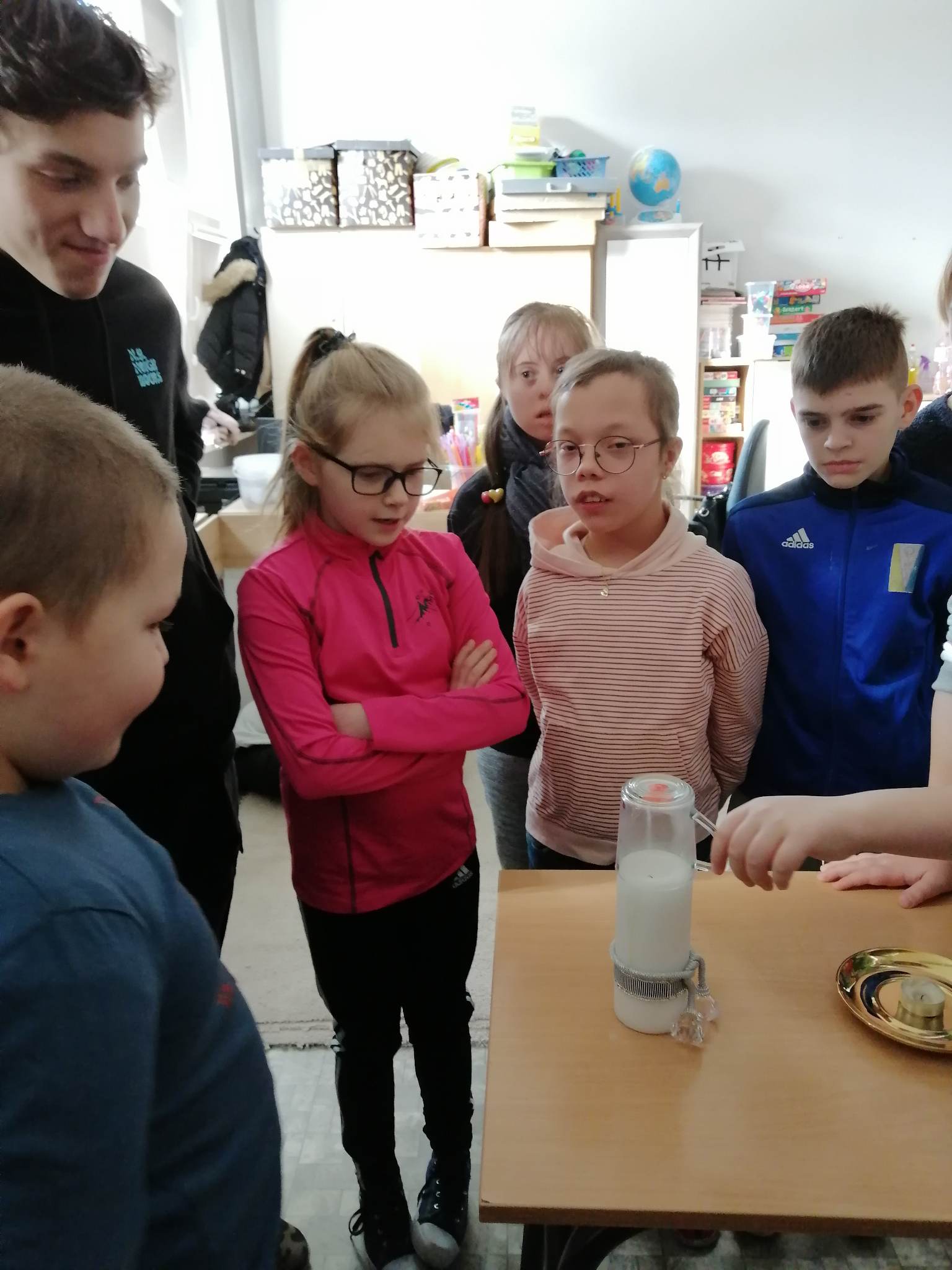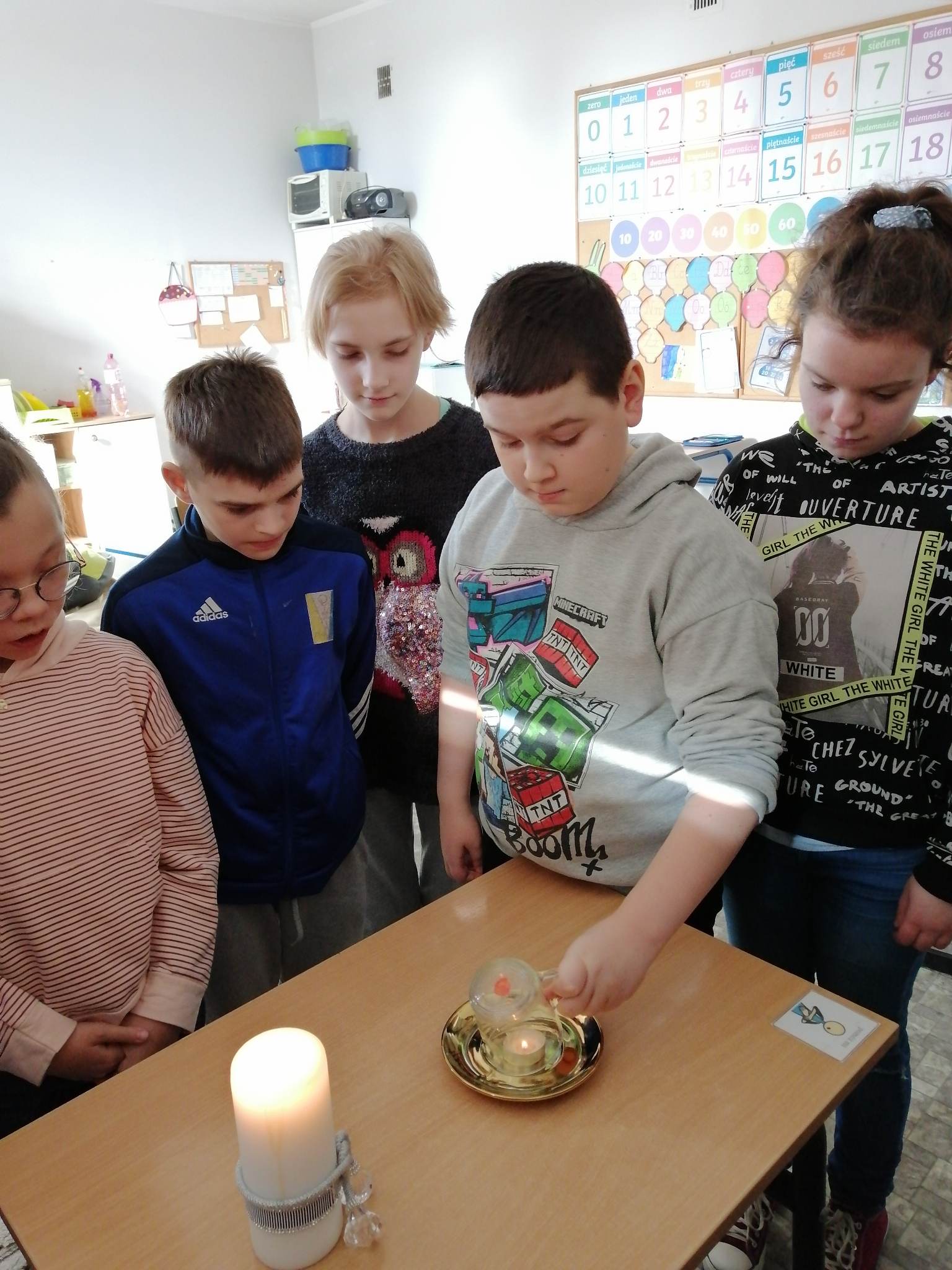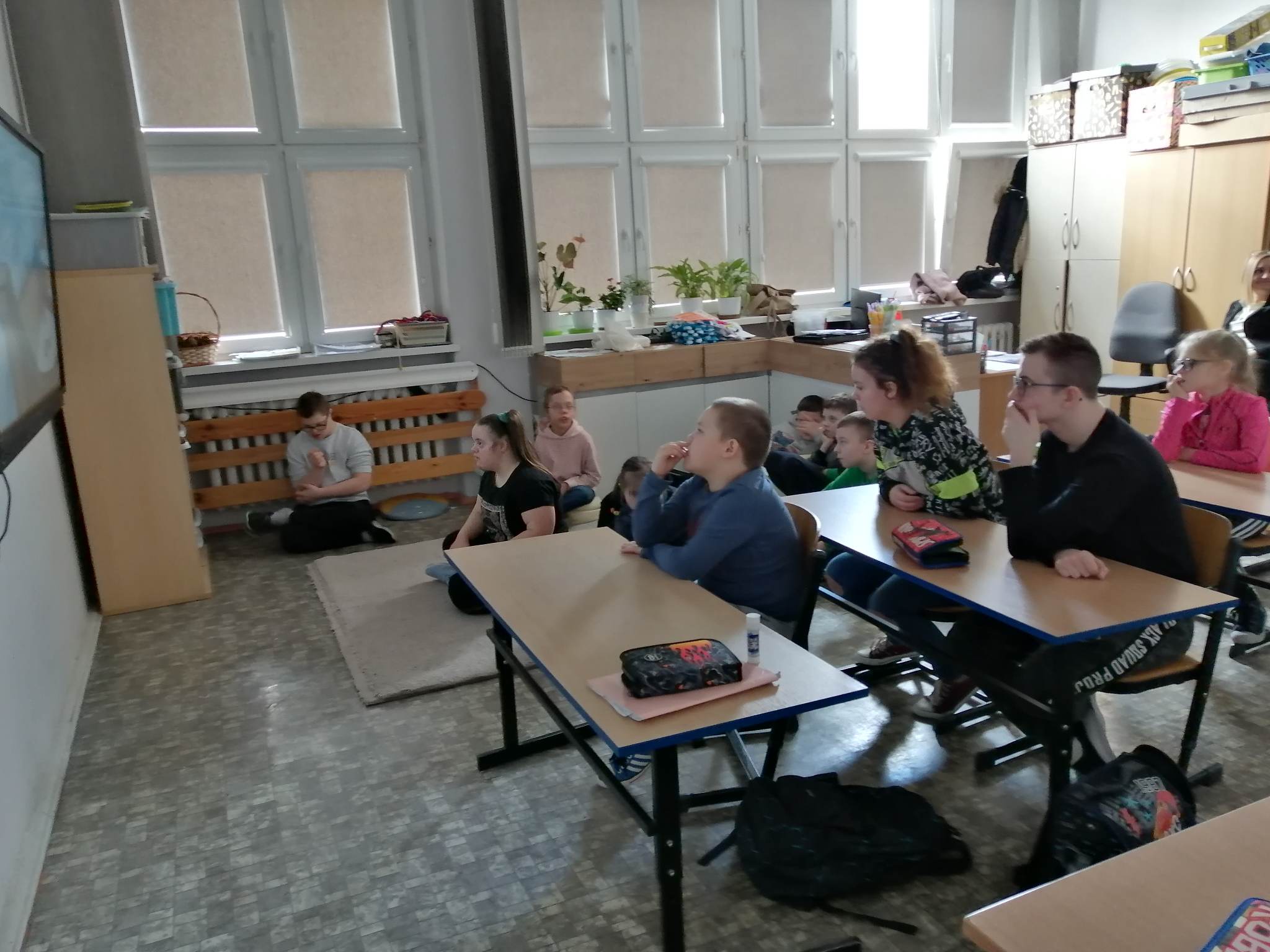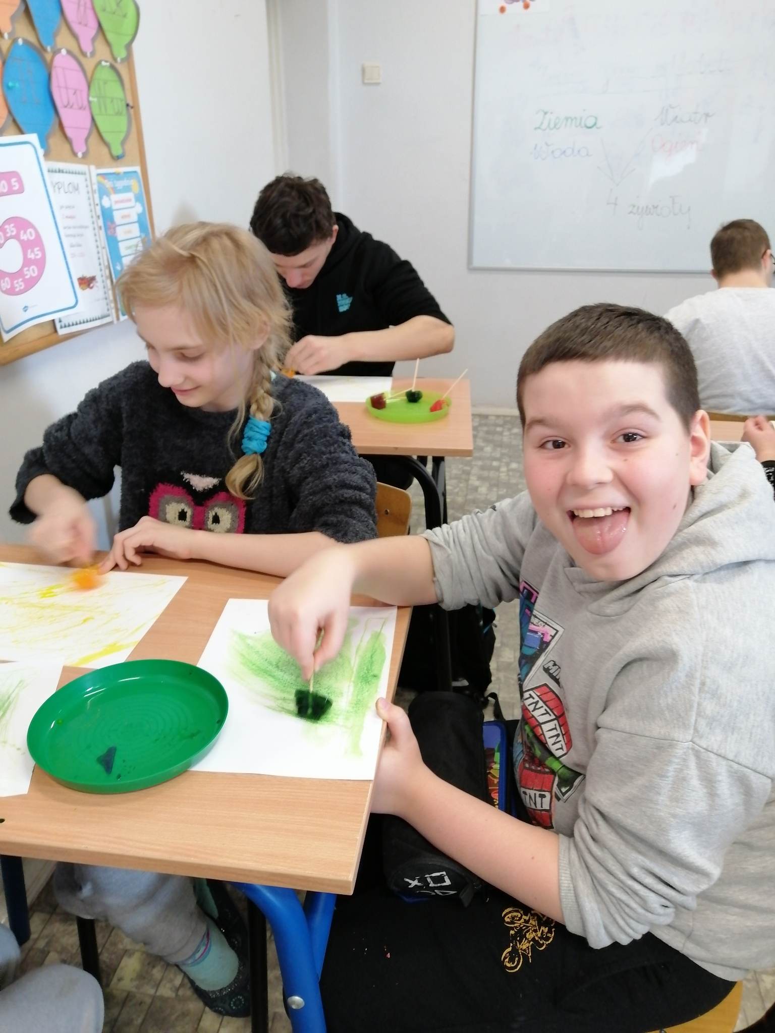 Realizując kolejne założenia innowacji pedagogicznej „Z darami natury świat nie jest ponury”  klasy III c, VII/VII a i VIII f  uczestniczyły w spotkaniu pn. „Cztery żywioły: w krainie powietrza, ognia, ziemi i wody”.  Krótki film przybliżył uczniom siły występujące wokół nas.   Pozwolił zrozumieć i zgłębić temat występujących w przyrodzie zjawisk, z jakimi mamy do czynienia na co dzień. Na koniec spotkania uczniowie wykonali kilka doświadczeń związanych z powietrzem, ogniem i wodą.