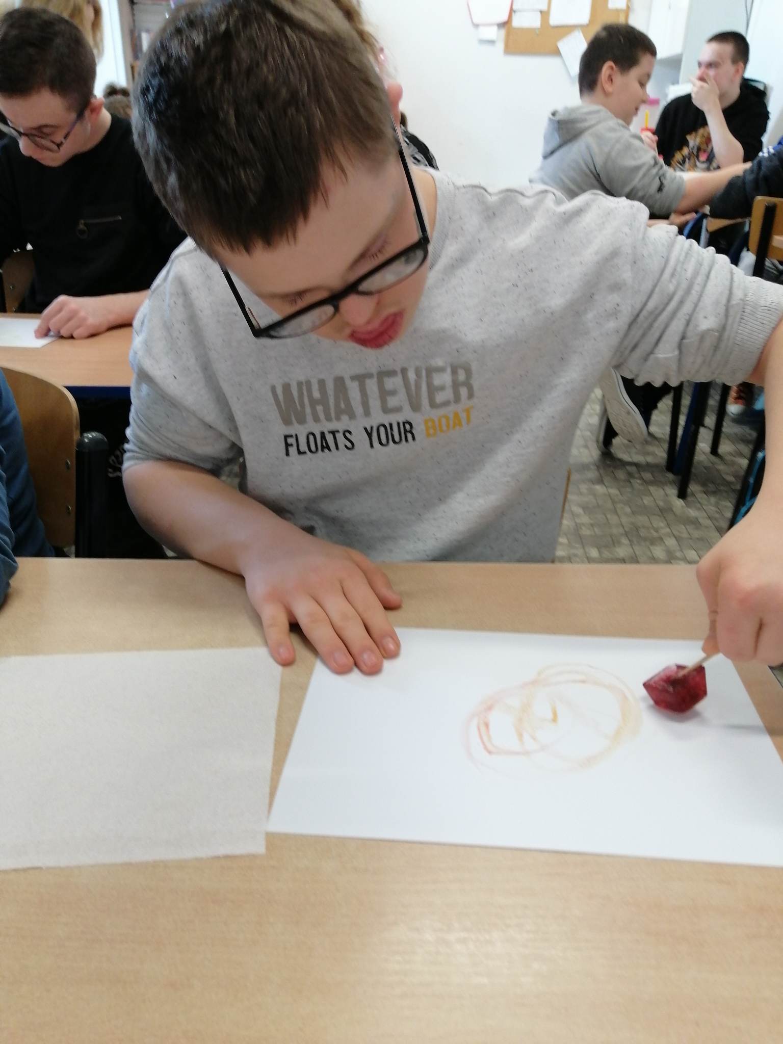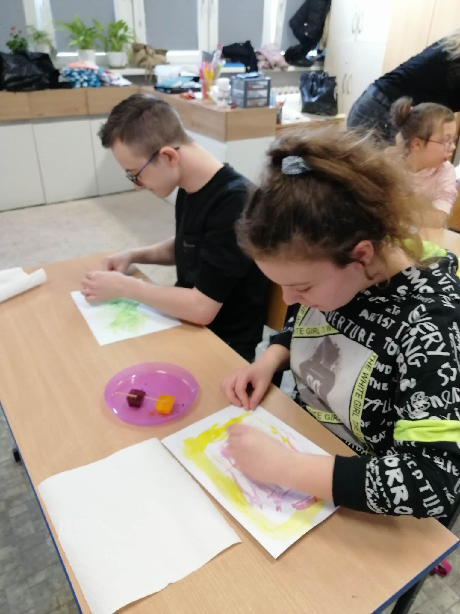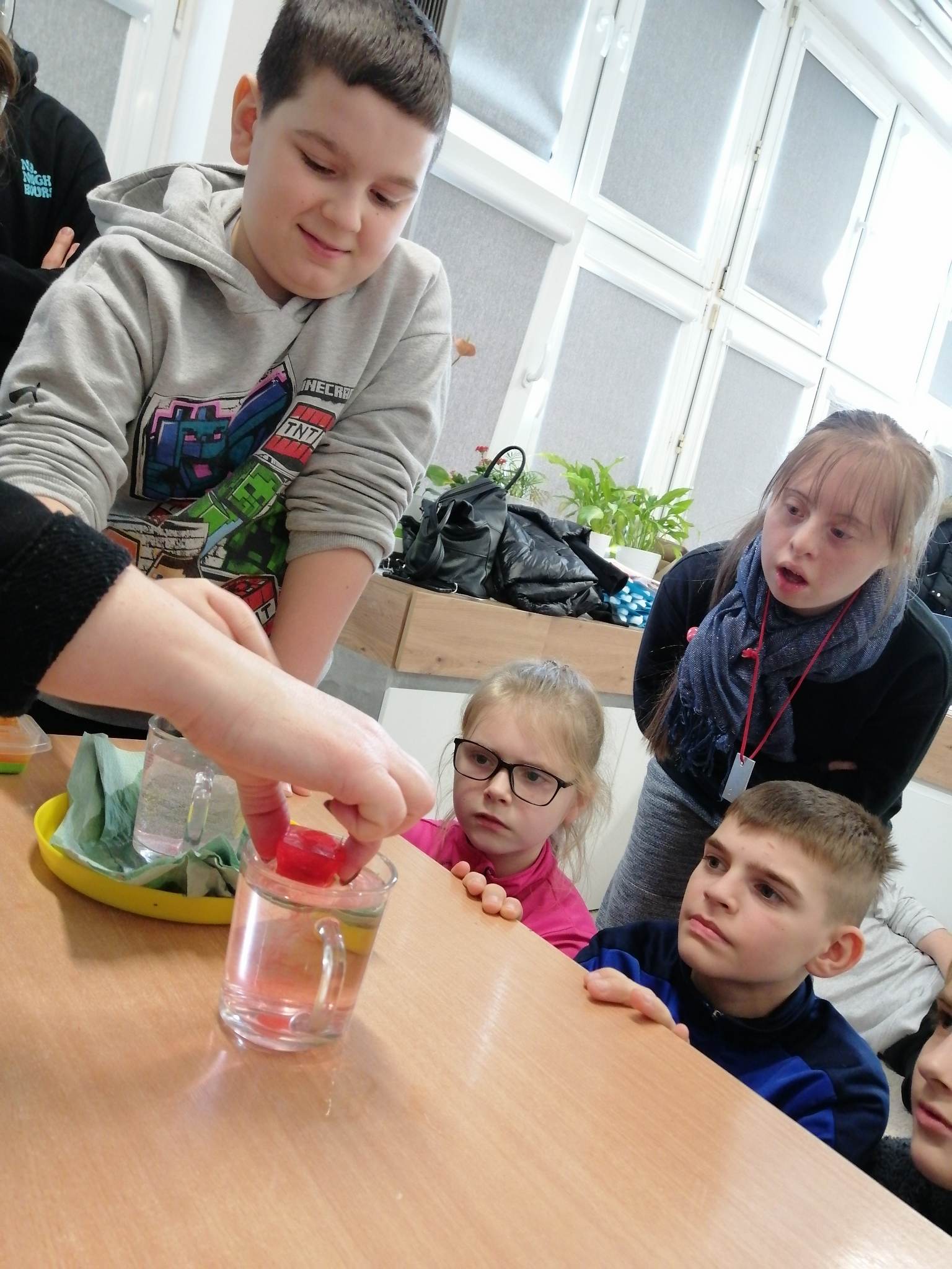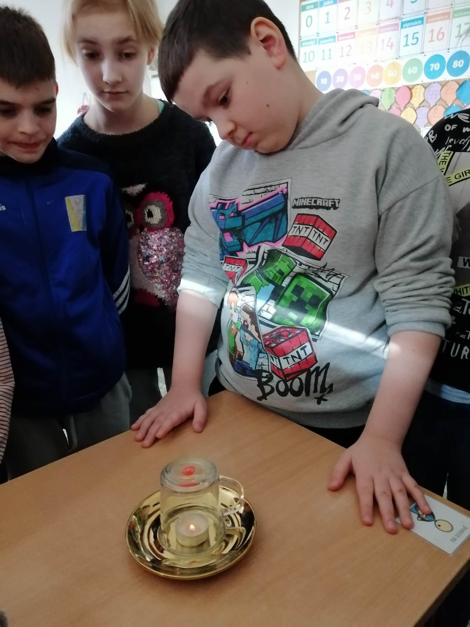 Realizując kolejne założenia innowacji pedagogicznej „Z darami natury świat nie jest ponury”  klasy III c, VII/VII a i VIII f  uczestniczyły w spotkaniu pn. „Cztery żywioły: w krainie powietrza, ognia, ziemi i wody”.  Krótki film przybliżył uczniom siły występujące wokół nas.   Pozwolił zrozumieć i zgłębić temat występujących w przyrodzie zjawisk, z jakimi mamy do czynienia na co dzień. Na koniec spotkania uczniowie wykonali kilka doświadczeń związanych z powietrzem, ogniem i wodą.