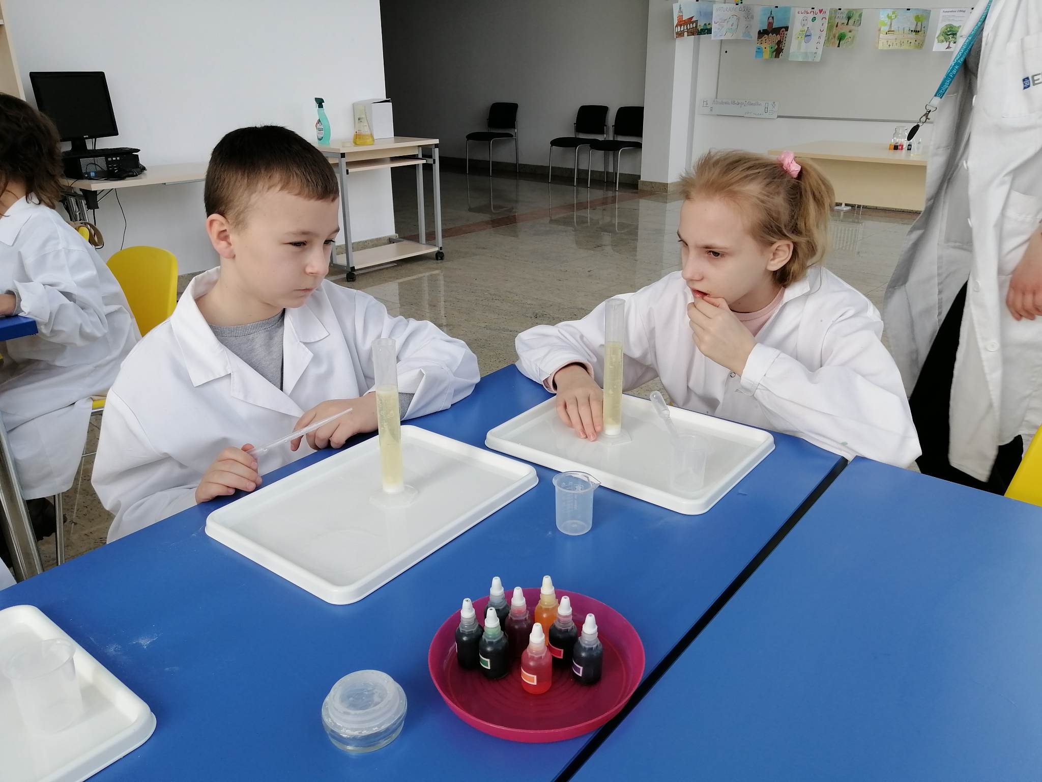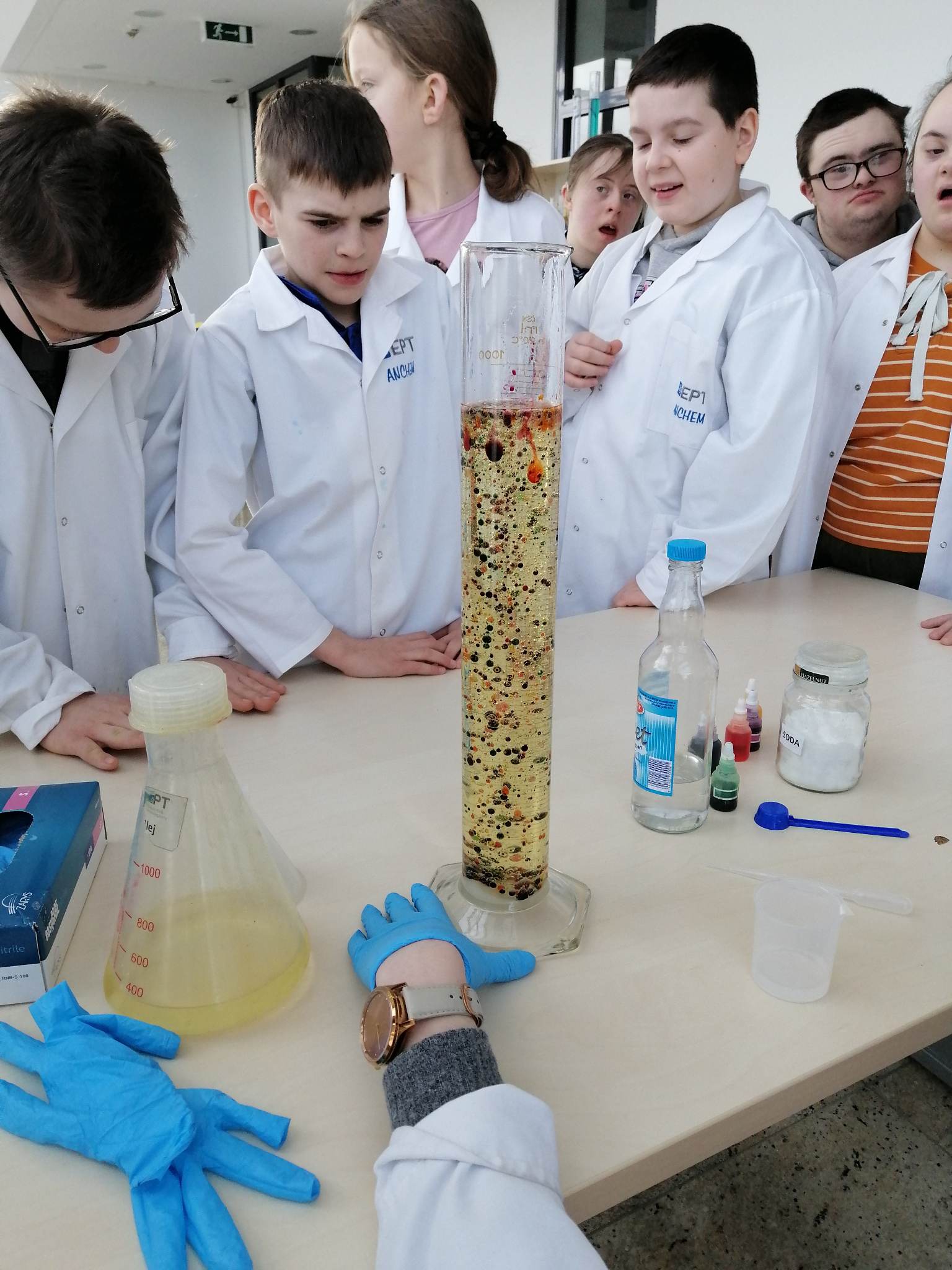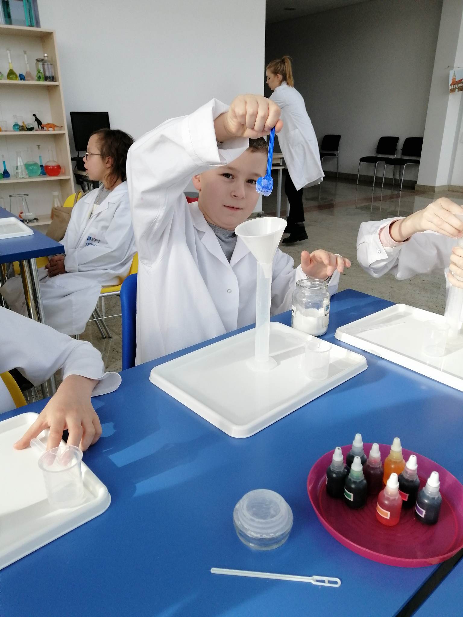 Eksperymenty dla dzieci to moc wspaniałej zabawy połączonej z wartościową edukacją. Podczas ostatniego spotkania w Akademii Młodego Chemika uczniowie klas : III c, VII/VIII a i VIII f samodzielnie przeprowadzali eksperymenty, odkrywając tajemnice natury . Mieli możliwość stworzenia m. in. popularnej lawy lampy. Obserwowali także ciekawe doświadczenie pn. pasta dla słonia. Praktyczne zajęcia, pełne ciekawych doświadczeń, dostarczyły cennej i wszechstronnej wiedzy. Były doskonałym sposobem na rozbudzenie w młodych osobach pasji do nauki i poszerzenie ich zainteresowań.