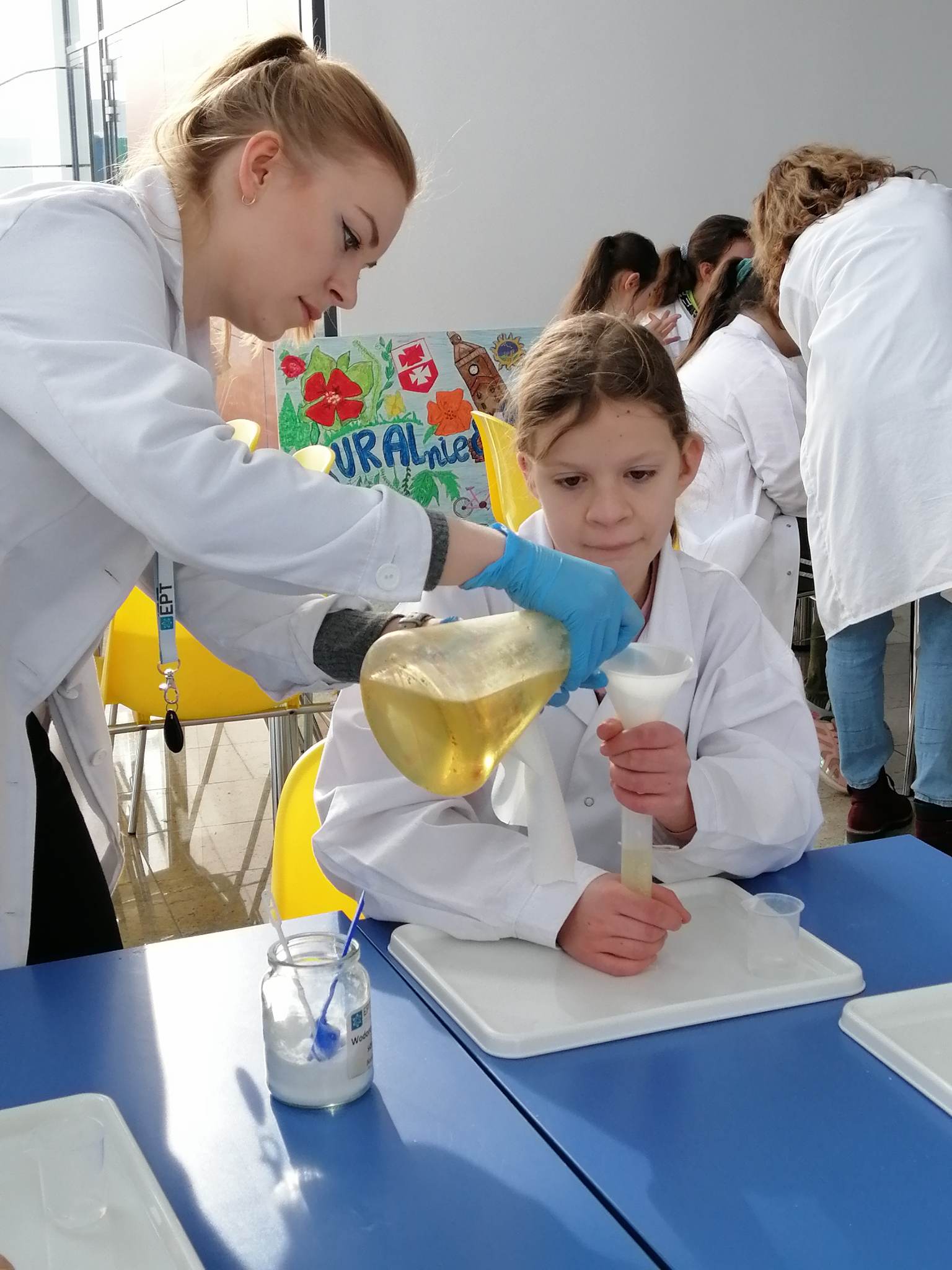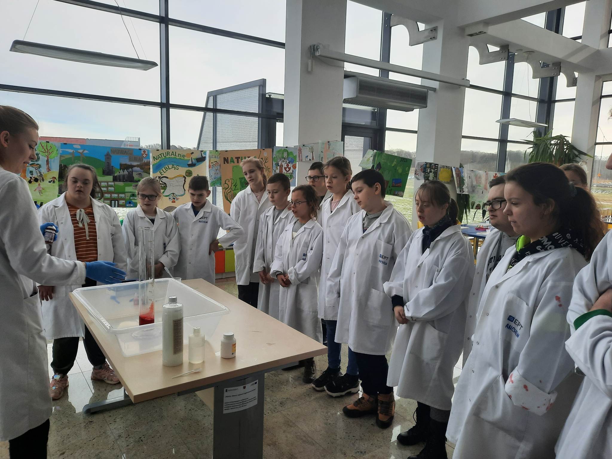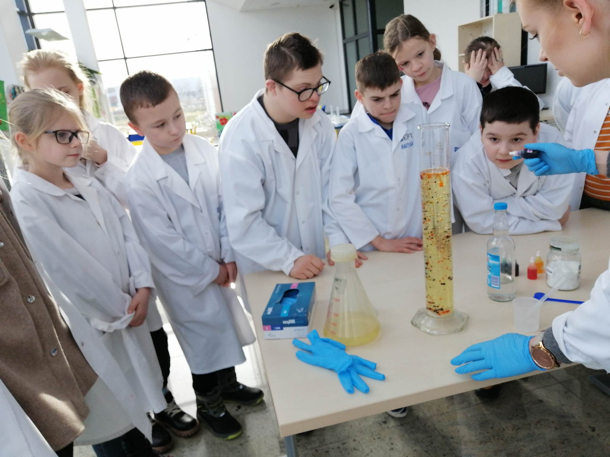 Eksperymenty dla dzieci to moc wspaniałej zabawy połączonej z wartościową edukacją. Podczas ostatniego spotkania w Akademii Młodego Chemika uczniowie klas : III c, VII/VIII a i VIII f samodzielnie przeprowadzali eksperymenty, odkrywając tajemnice natury . Mieli możliwość stworzenia m. in. popularnej lawy lampy. Obserwowali także ciekawe doświadczenie pn. pasta dla słonia. Praktyczne zajęcia, pełne ciekawych doświadczeń, dostarczyły cennej i wszechstronnej wiedzy. Były doskonałym sposobem na rozbudzenie w młodych osobach pasji do nauki i poszerzenie ich zainteresowań.