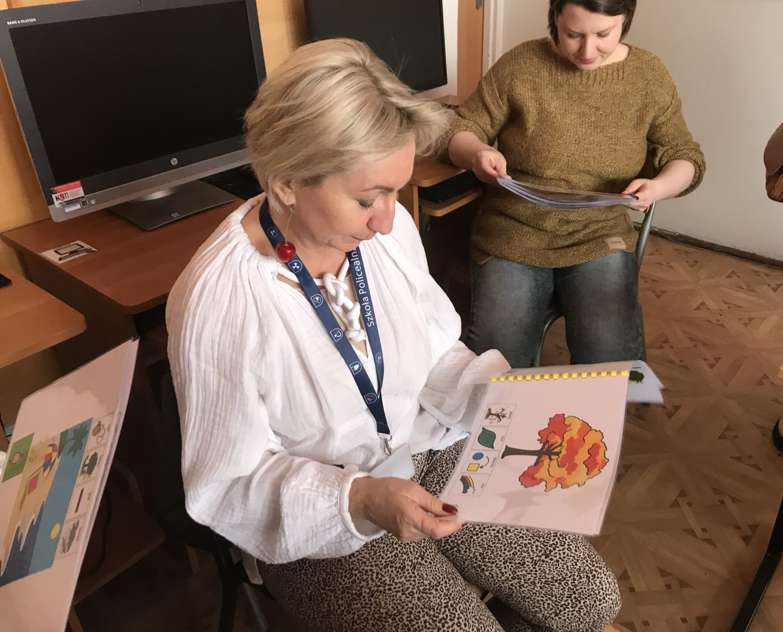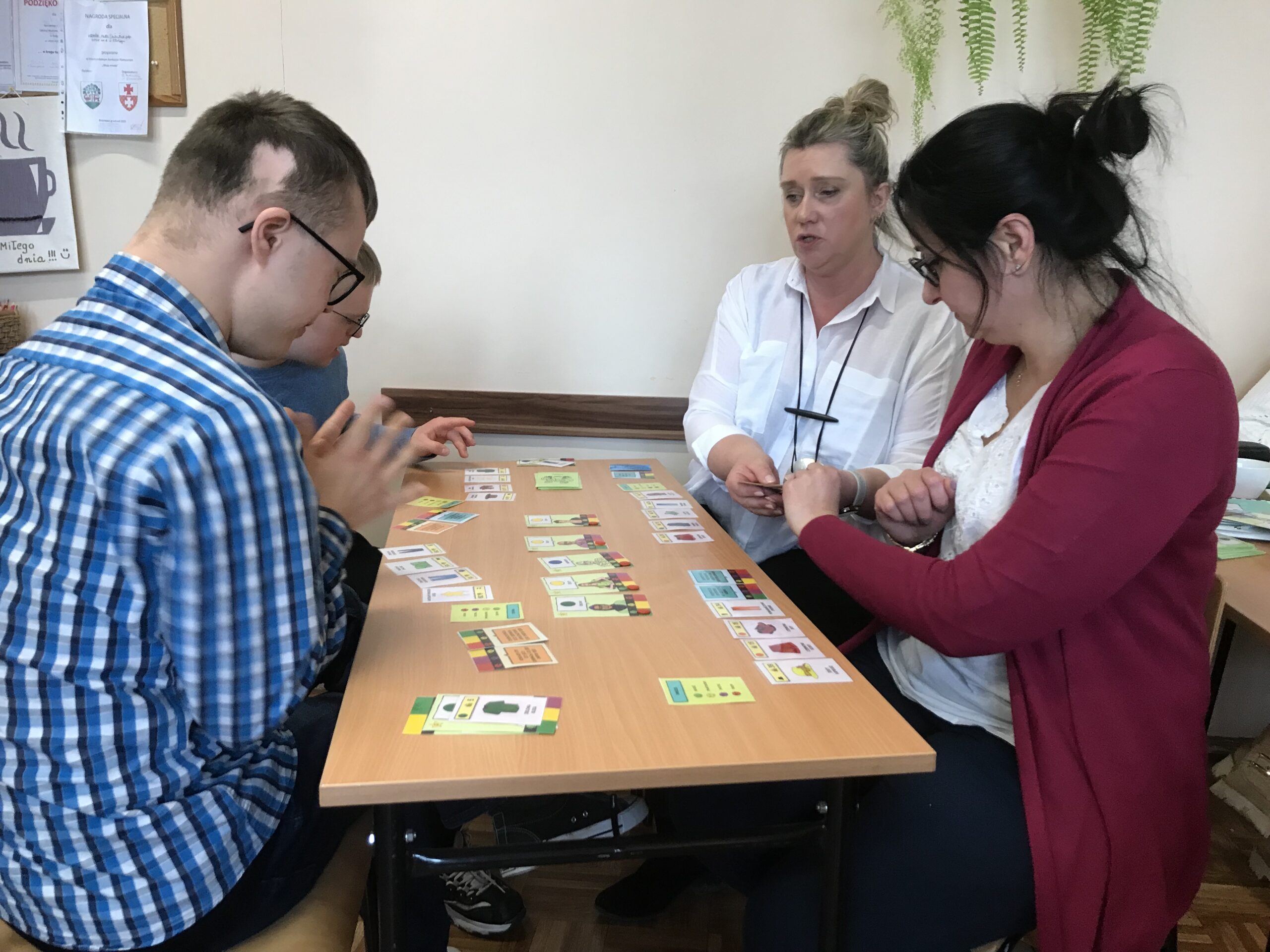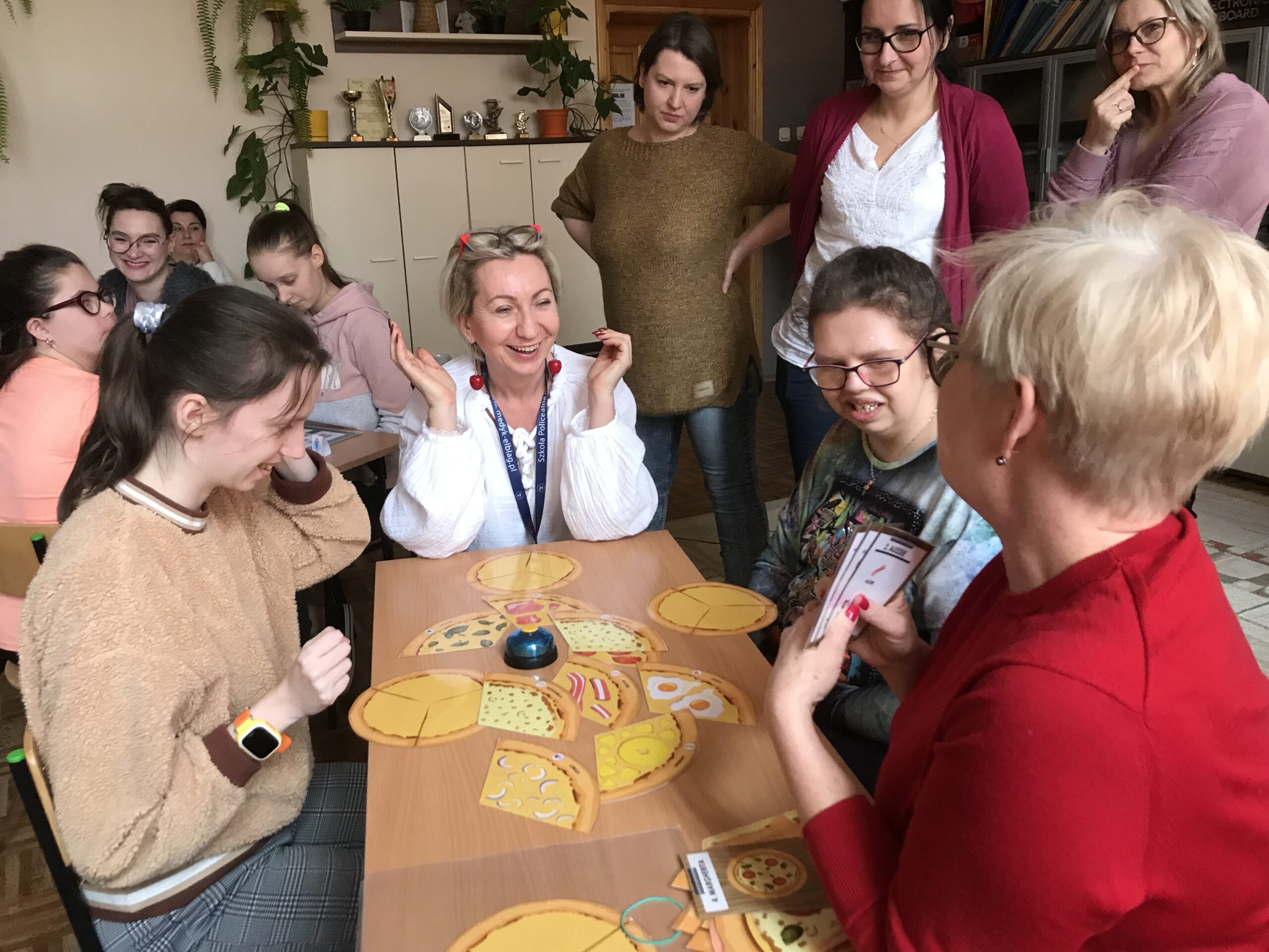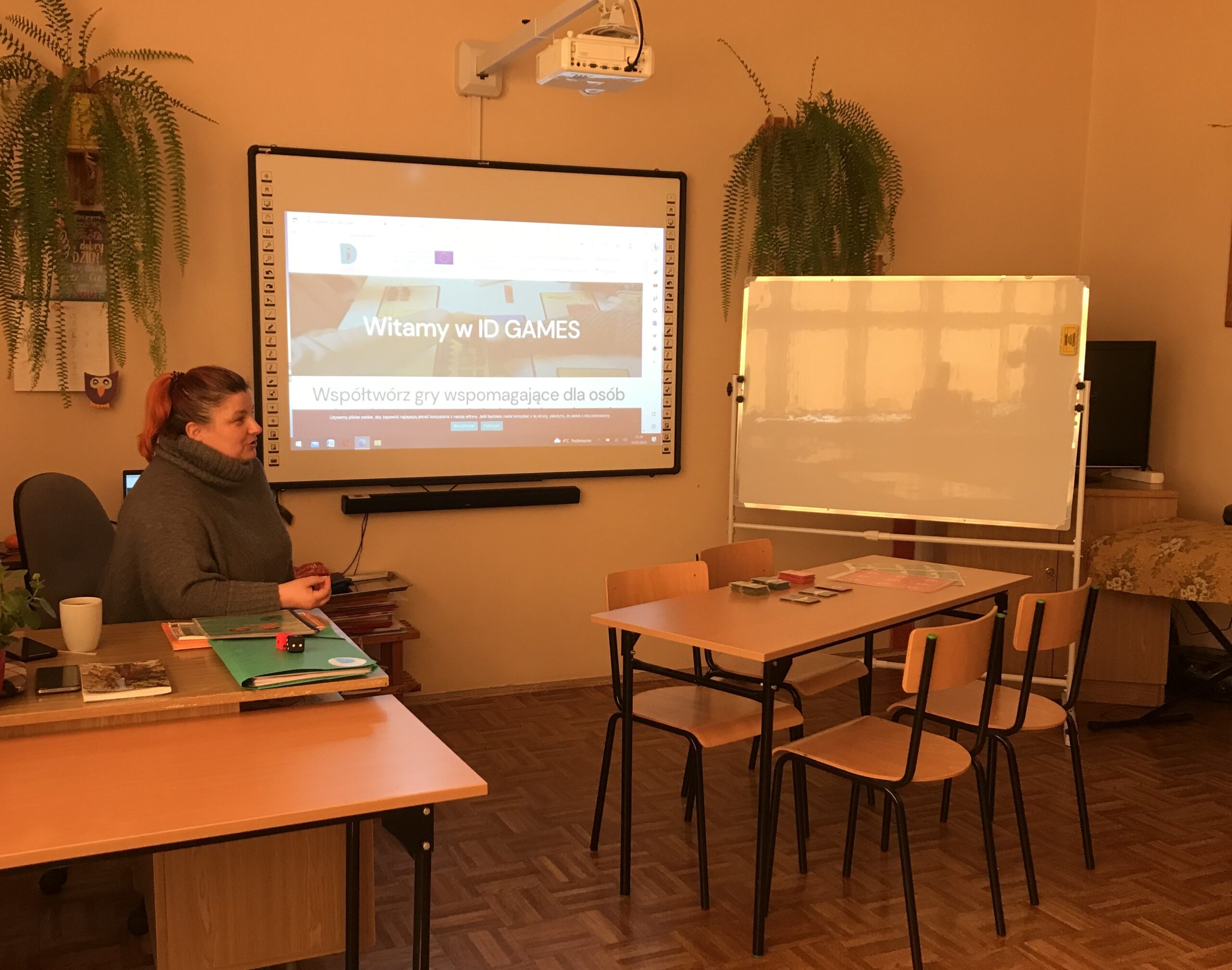W drugiej części spotkania pani Anna Hatle-Tafelska przedstawiła zgromadzonym gościom efekty pracy zespołu projektowego ID Games – przewodnik metodologiczny dotyczący wykorzystania gier w pracy z osobami z niepełnosprawnością intelektualną oraz platformę e-learningową i e-kurs do rozpowszechniania innowacyjnych narzędzi edukacyjnych. Następnie zaproszeni nauczyciele bibliotekarze mogli przetestować gry zaprojektowane przez zespół specjalistów ID Games. W testowaniu gier pomagali uczniowie naszego Ośrodka: Dominika Danielewska, Wiktoria Wojciechowska, Monika Smołyneć, Marta Szewczak, Wiktoria Latoszewska, Mateusz Bielecki, Bartosz Moczulski oraz Konrad Szumski.