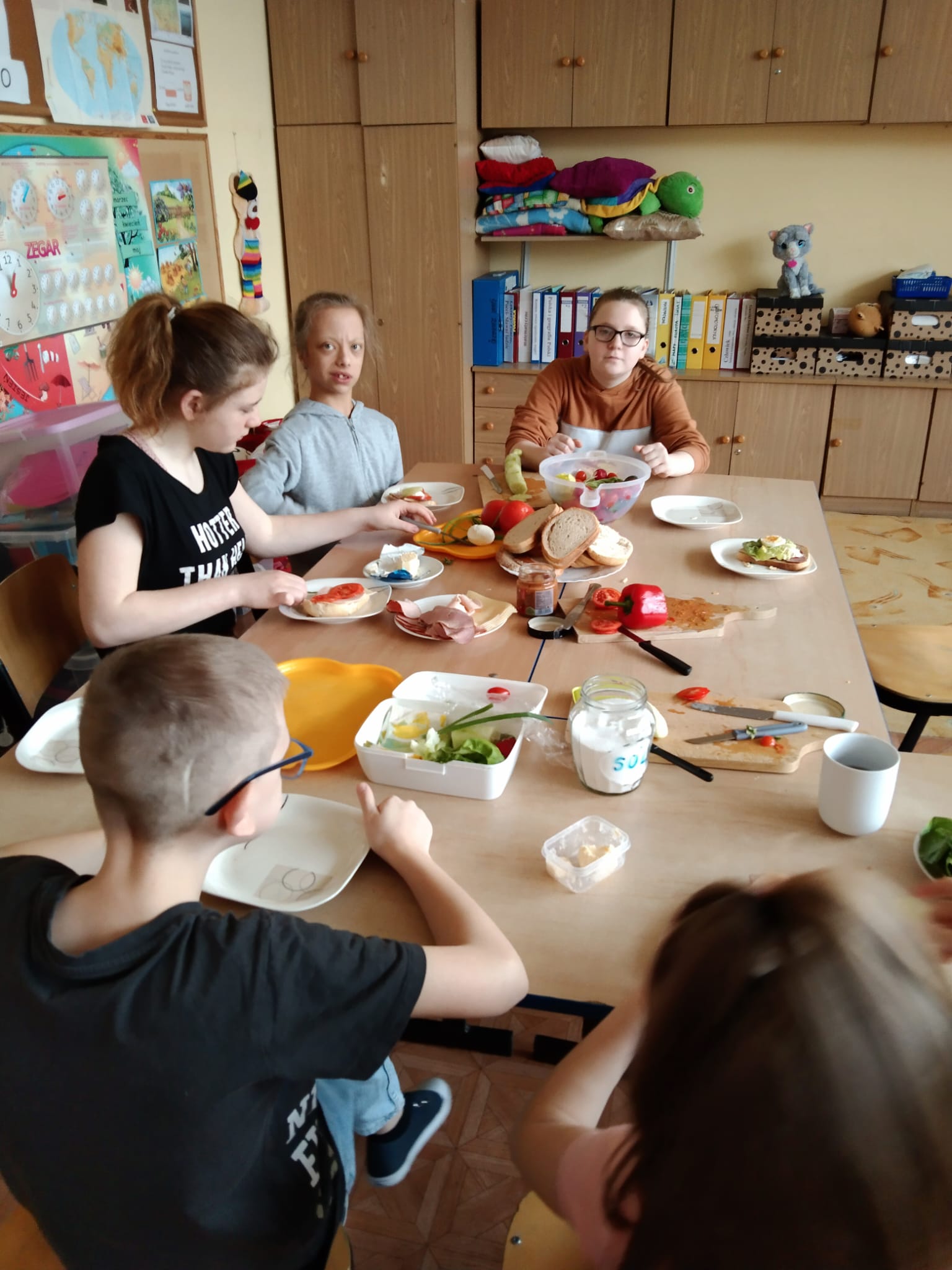 Uczniowie klasy 3a zet oraz klasy 3e zet umówili się ze swoimi wychowawczyniami na wagary z okazji pierwszego dnia wiosny.  I tak od samego rana 21 marca zamiast kart pracy na stole pojawiły się  warzywa, wędlinki, serek i świeży  chlebek na wiosenne kanapki. Potem wszystko zostało wytańczone podczas szkolnego spotkania integracyjnego z okazji  Dnia Kolorowej Skarpetki.  Na koniec dnia odbył się długi spacer z Marzannami w poszukiwaniu wiosny.