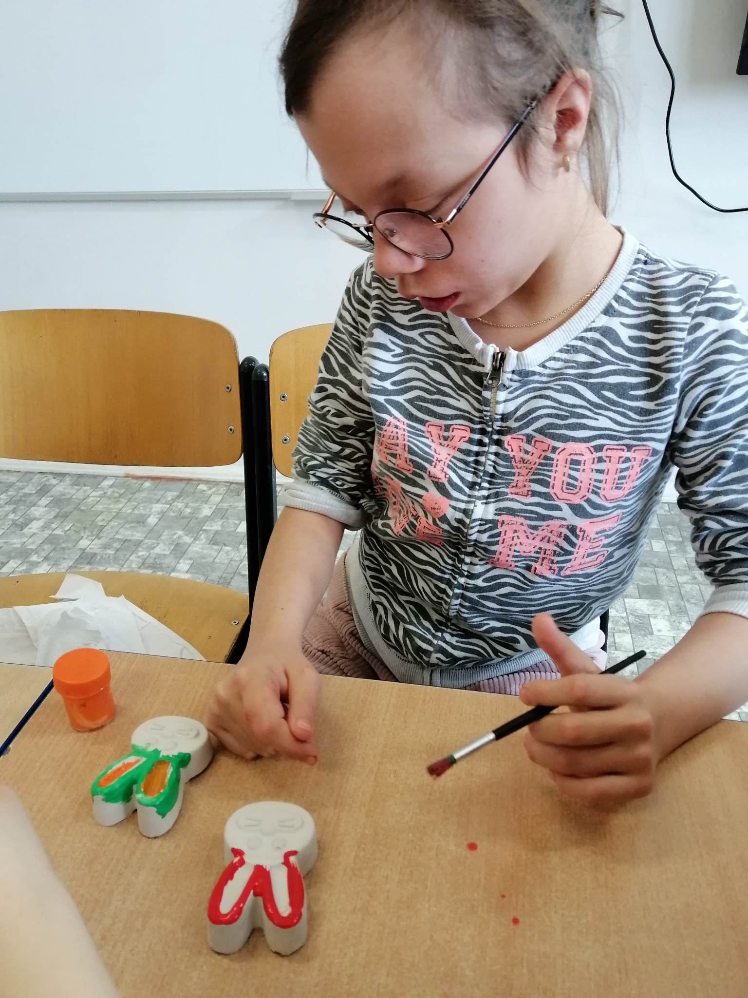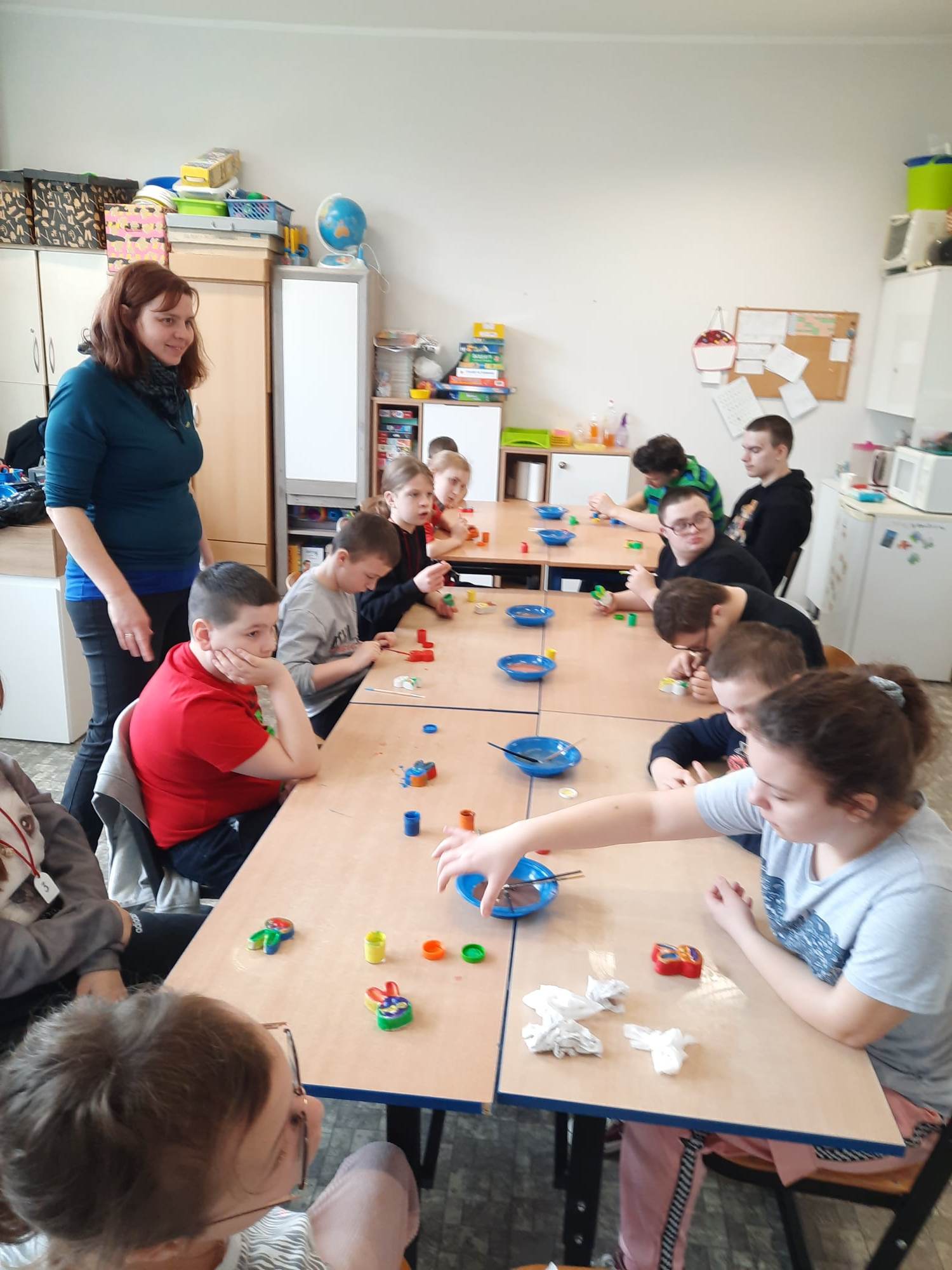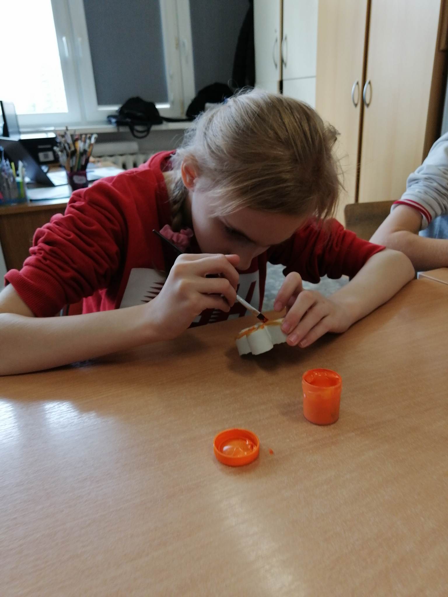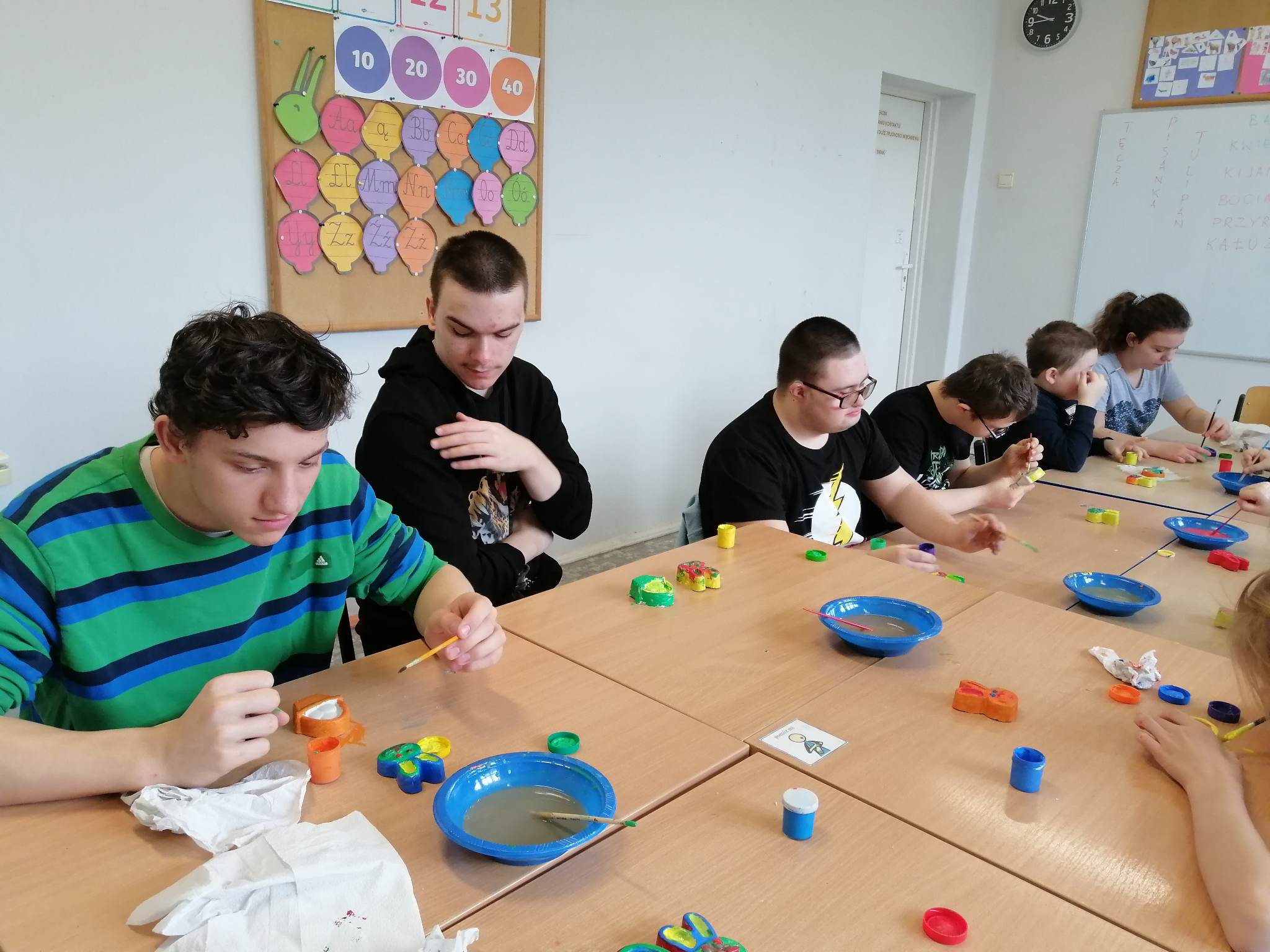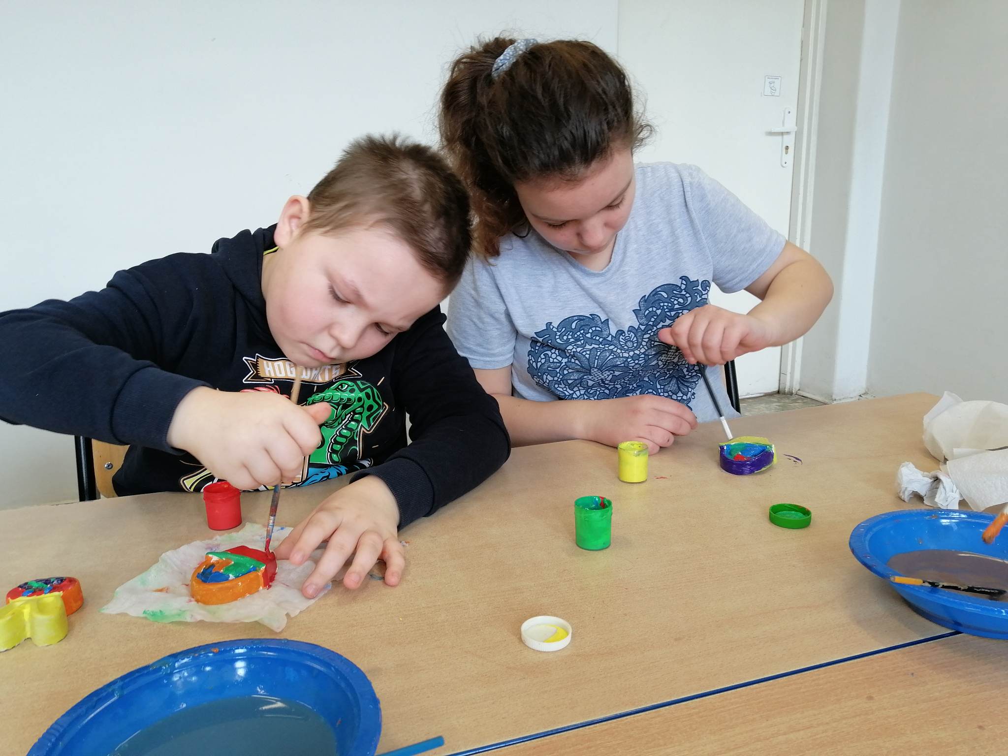 Uczestnicy zajęć klasy 3c, 7/8a i 8f mieli okazję obejrzeć ciekawą prezentację na temat malowania i dekorowania wielkanocnych jajek. W trakcie warsztatów uczniowie malowali figurki gipsowe: wielkanocne zajączki i jajka. Po zajęciach gotowe prace trafiły do pudełka, aby w trakcie świąt mogły zdobić wielkanocny stół. Warsztaty stworzyły możliwość twórczego przygotowania się do świąt Wielkiej Nocy – stworzenia dekoracji idealnej na nadchodzące święta.