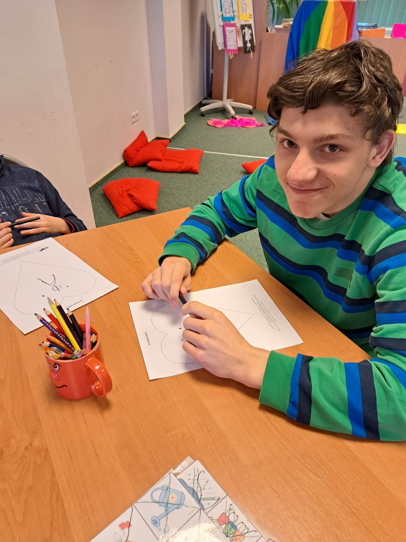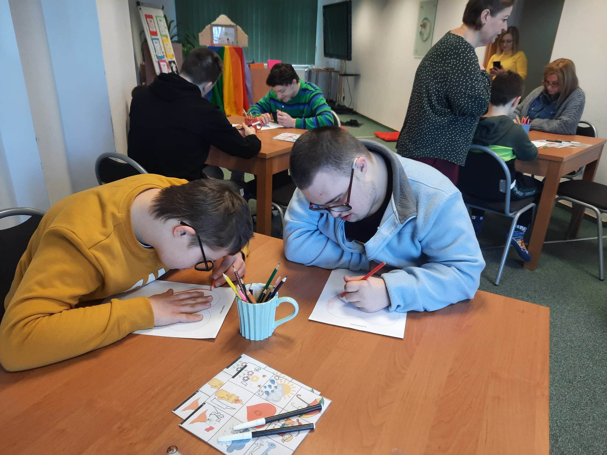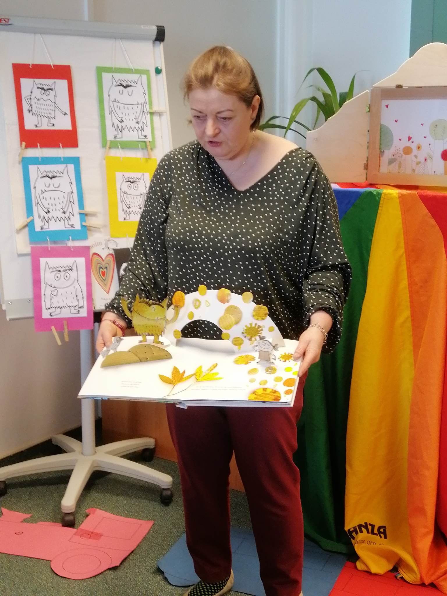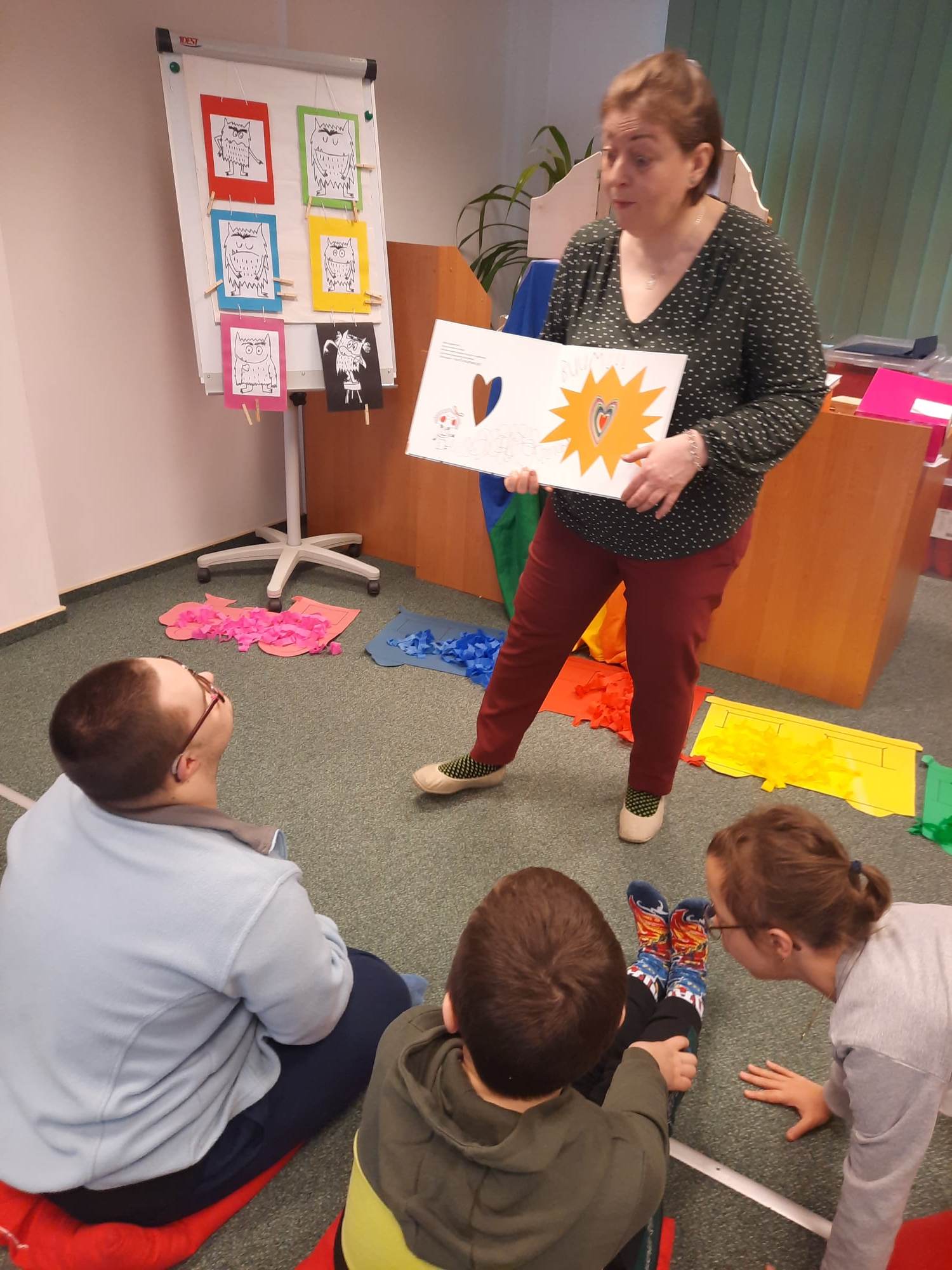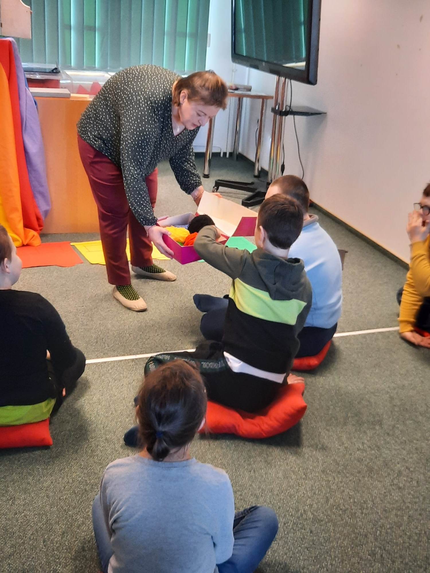 Uczniowie biorący udział w międzynarodowym projekcie „Z kulturą mi do tworzy” uczestniczyli w kolejnych zajęciach w Bibliotece Pedagogicznej. Działali w obszarze emocji i uczuć. Obejrzeli teatr ilustracji kamishibai i w sposób kreatywny przelali swoje aktualne emocje i uczucia na papier. Następnie stworzyli serca z wykorzystaniem tangramów.