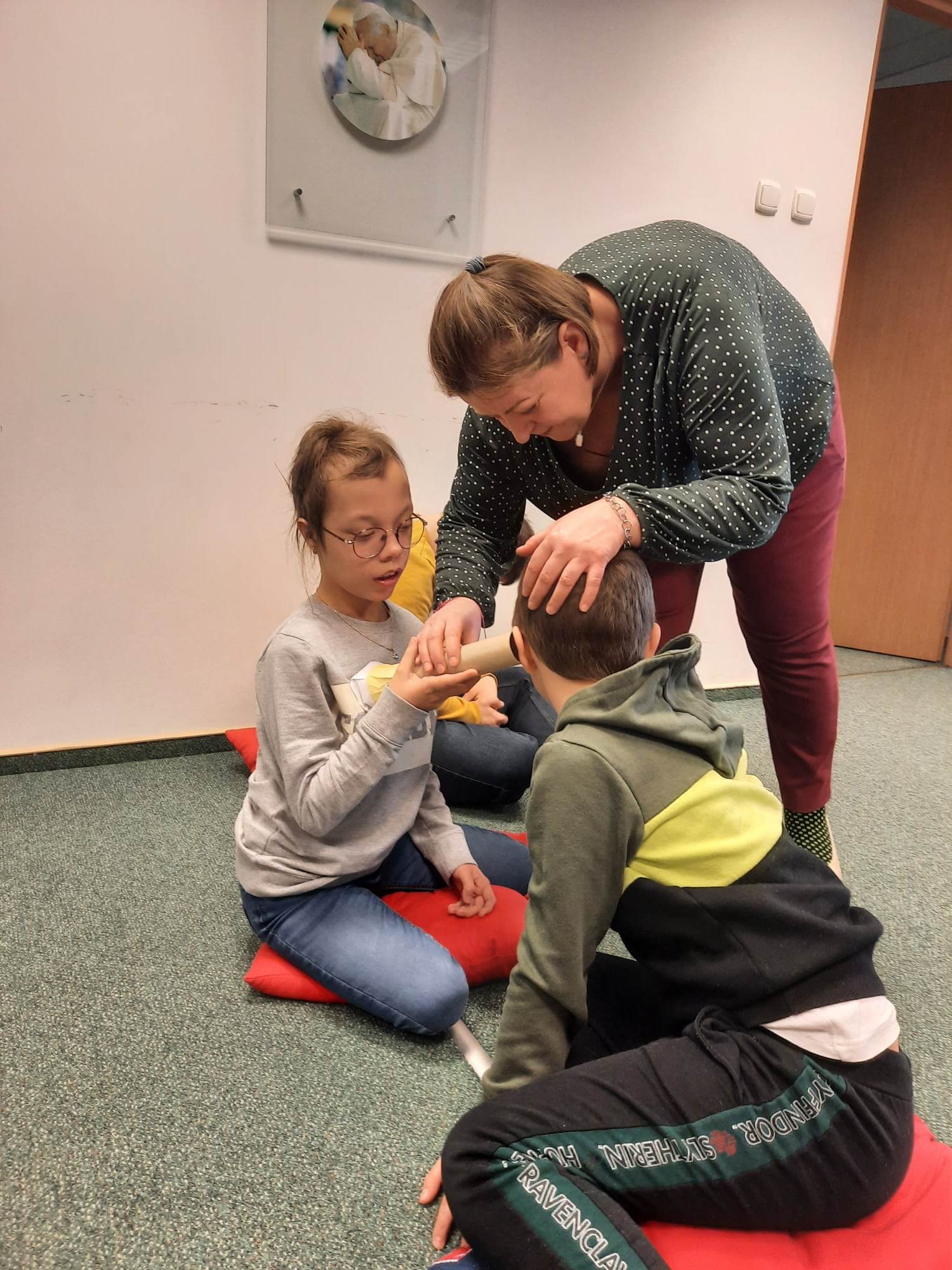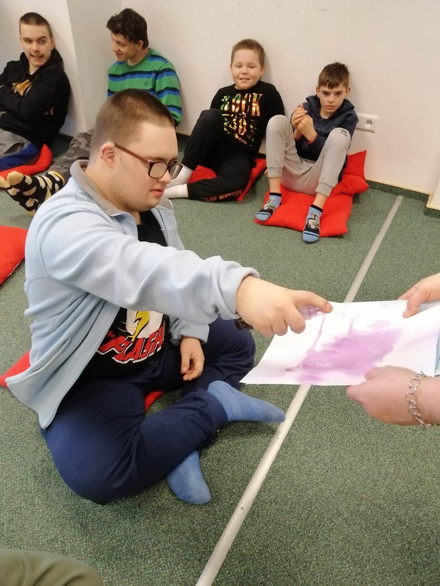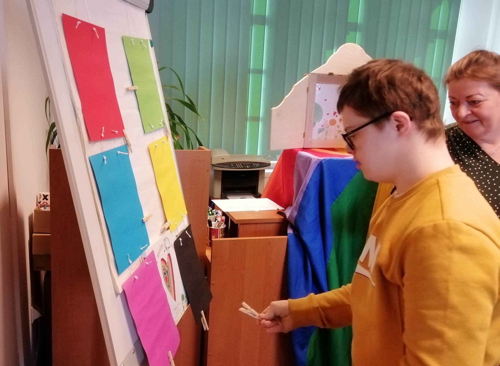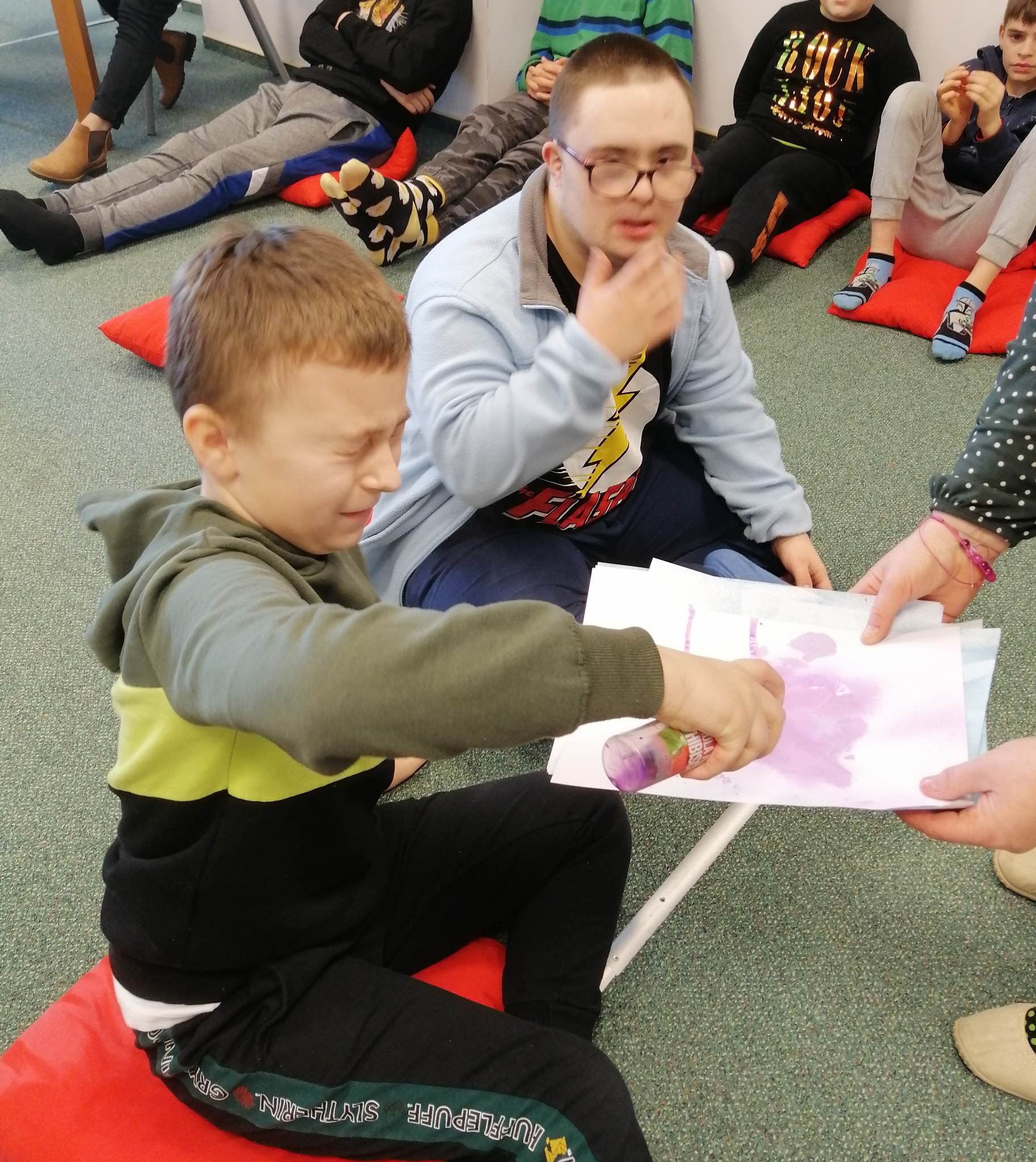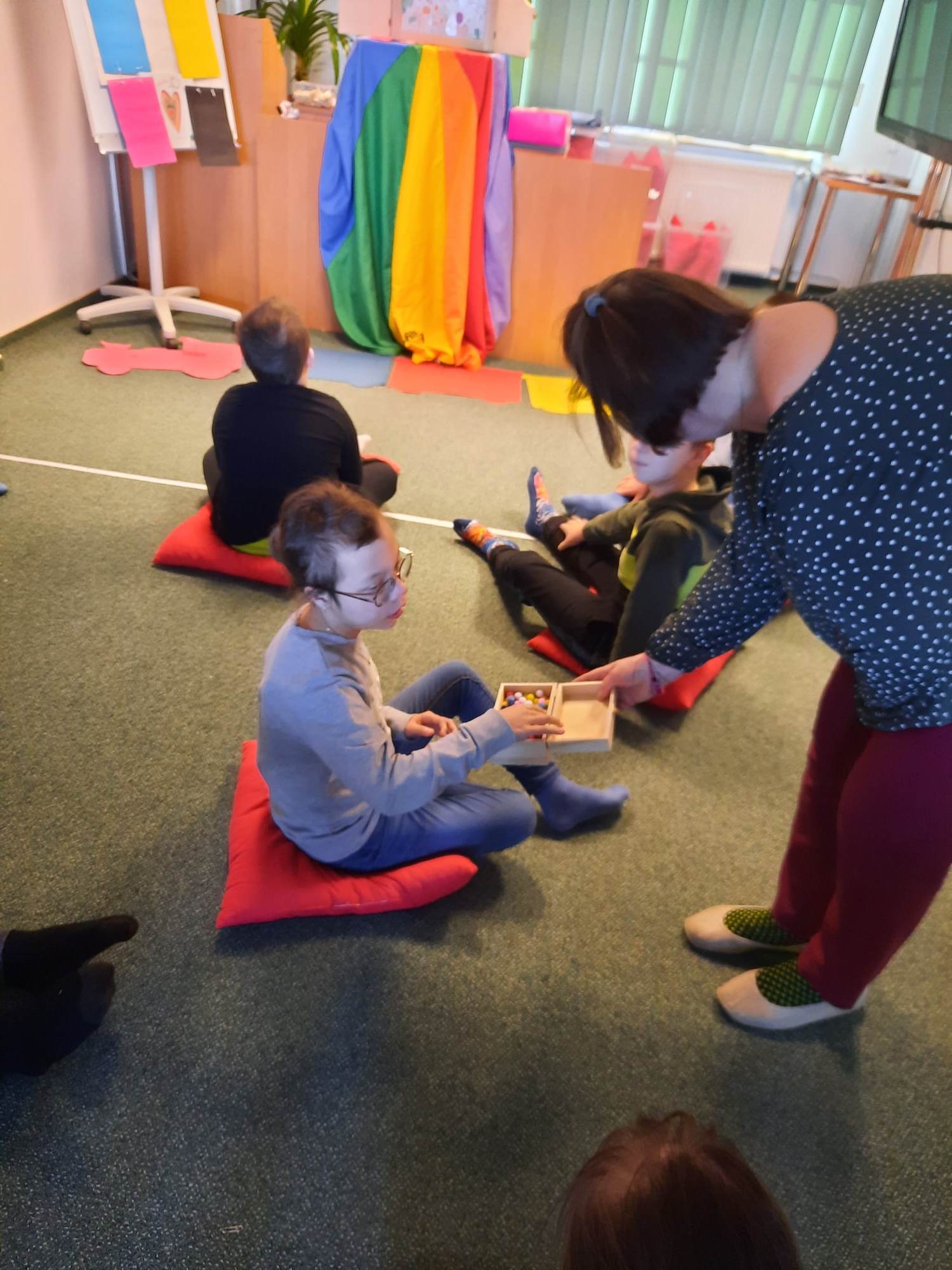 Uczniowie biorący udział w międzynarodowym projekcie „Z kulturą mi do tworzy” uczestniczyli w kolejnych zajęciach w Bibliotece Pedagogicznej. Działali w obszarze emocji i uczuć. Obejrzeli teatr ilustracji kamishibai i w sposób kreatywny przelali swoje aktualne emocje i uczucia na papier. Następnie stworzyli serca z wykorzystaniem tangramów.