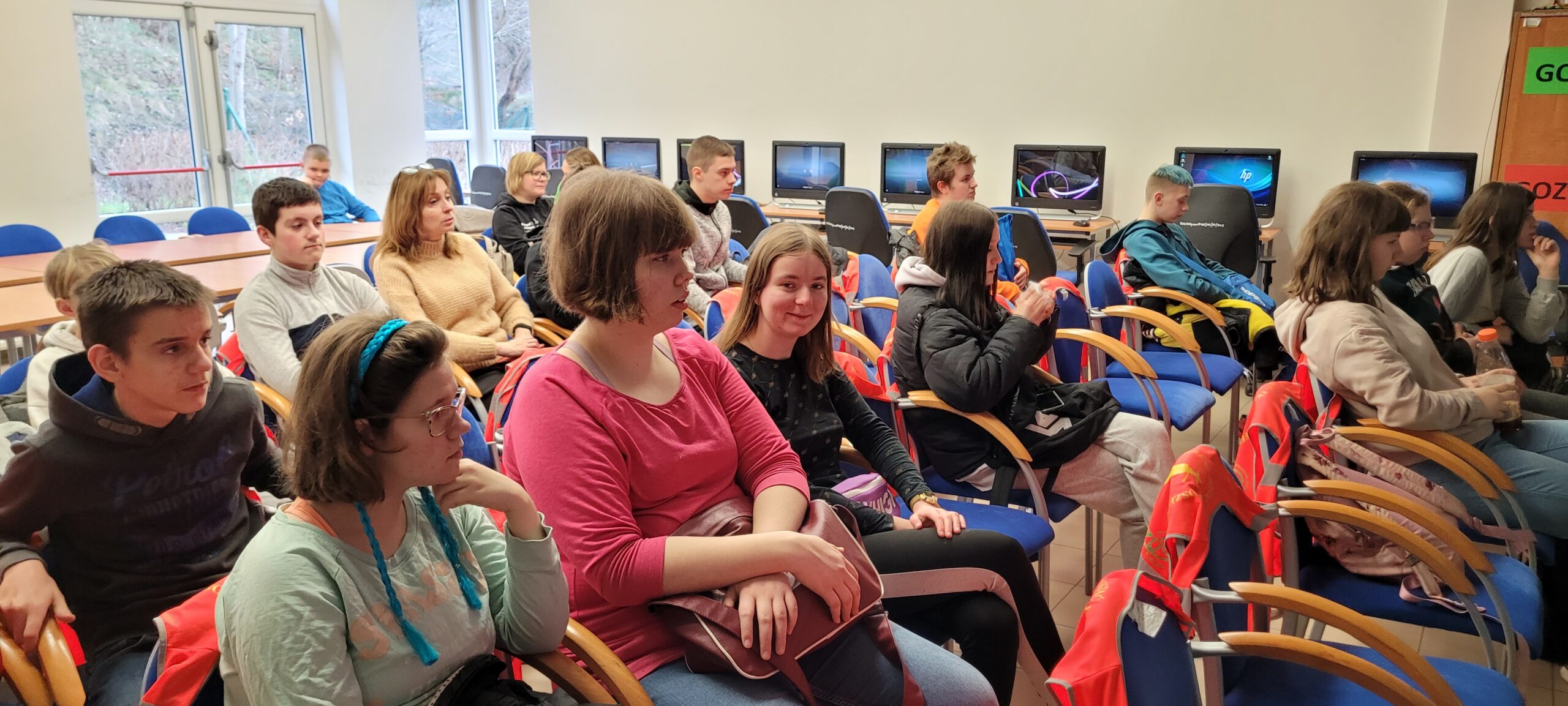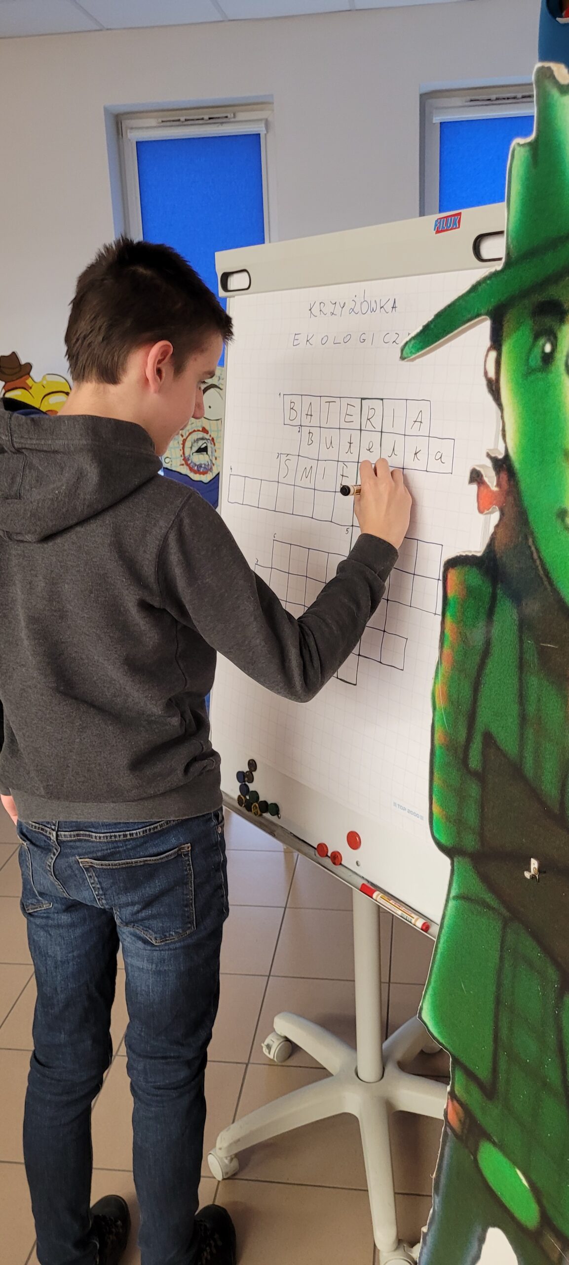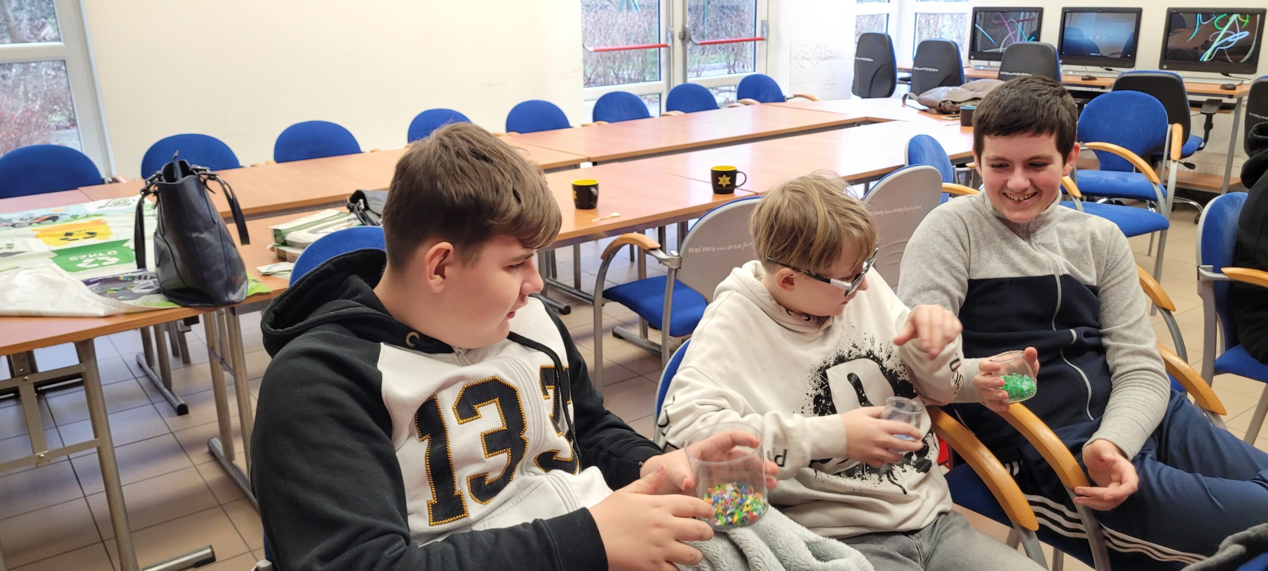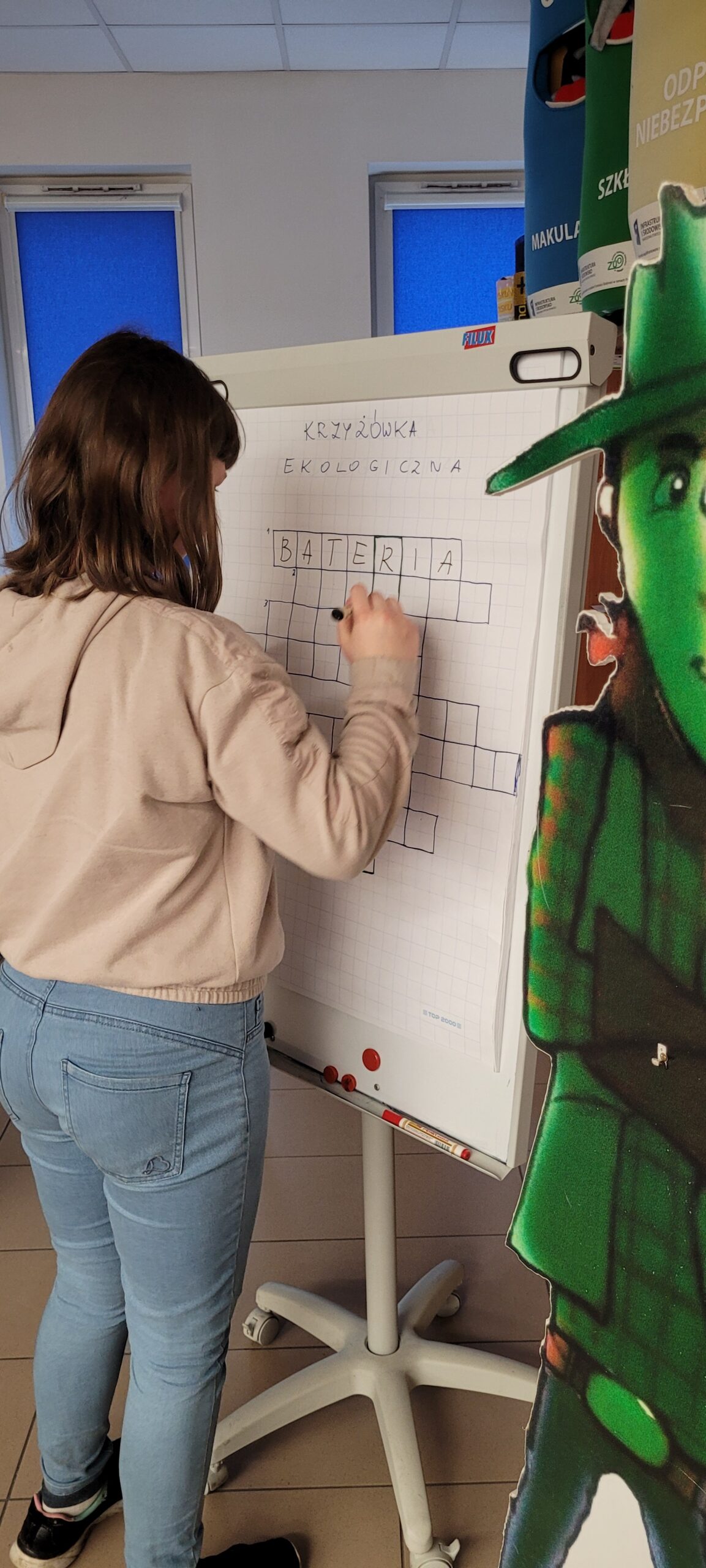 Pogłębianiu wiadomości na temat nowatorskich metod recyklingu służyły zajęcia warsztatowe z wykorzystaniem programu komputerowego i gry edukacyjnej „Jak powstaje papier?”. Zwieńczeniem spotkania był moment wspólnego rozwiązywania krzyżówki, w której słowo klucz – „recykling”, było wnikliwie omawiane, aby ono już nigdy nie wydało się nikomu obce, zarówno w teorii, jak i praktyce.