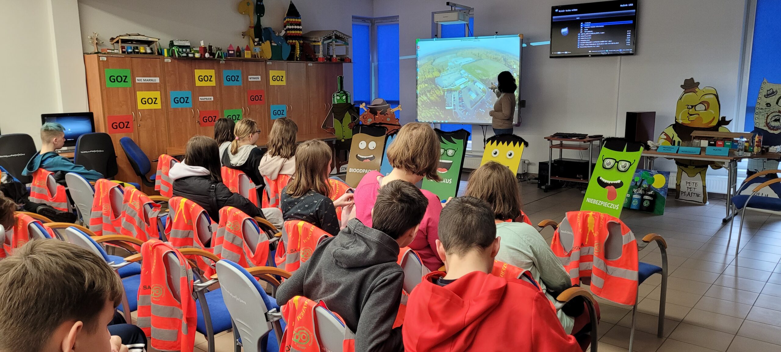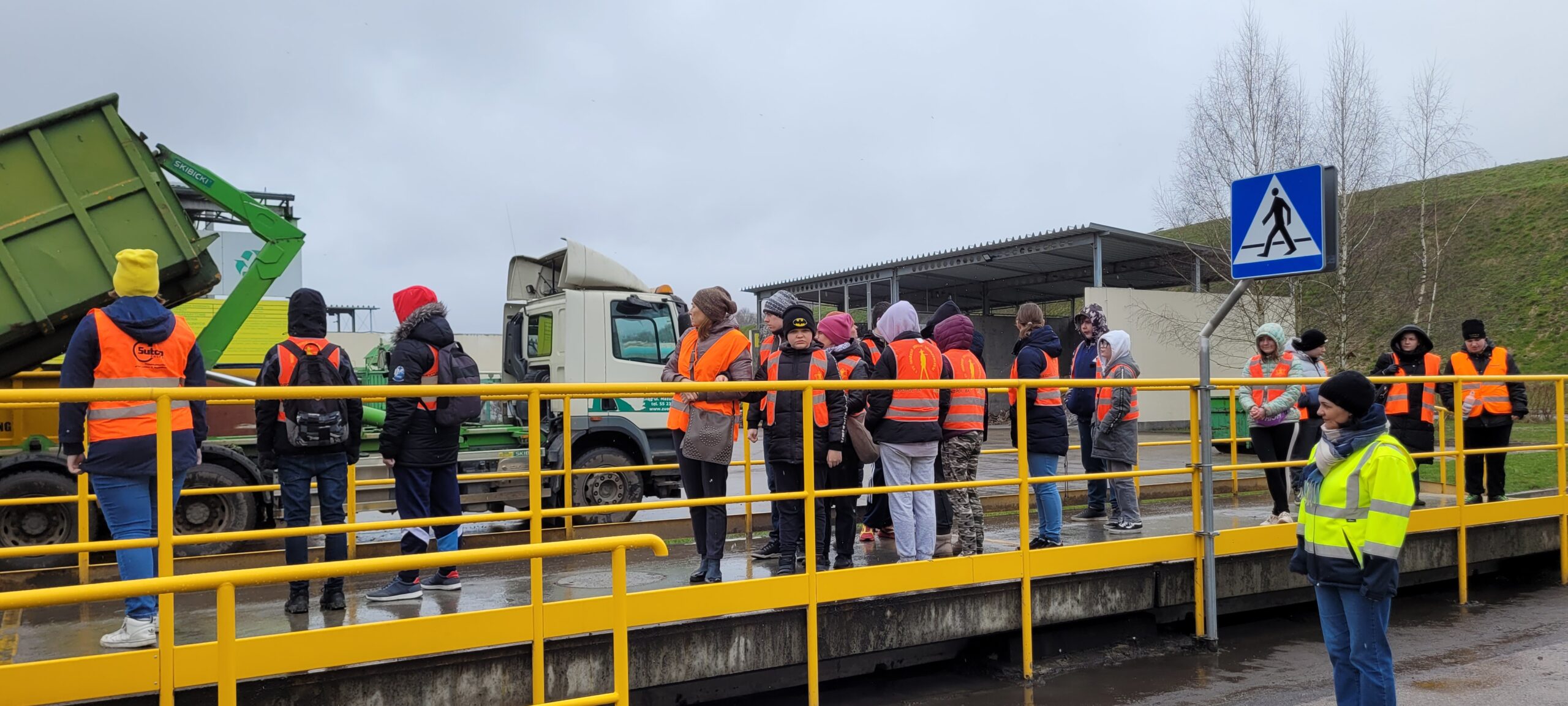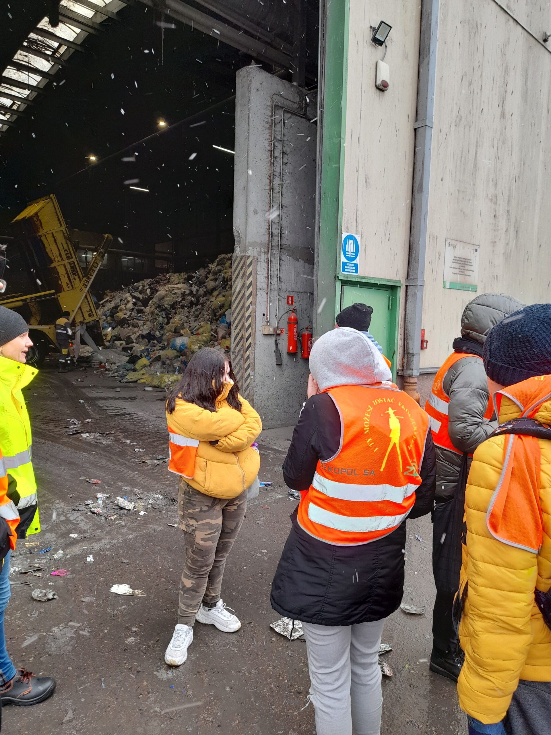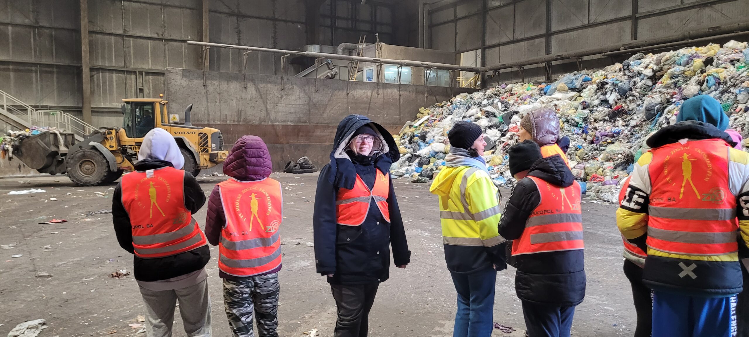 Podczas zajęć edukacyjnych uczniowie klas: 5a, 6a, 7b, 8b, 8d, 8c, 1b BSI i 2b BSI poznali sposoby gospodarowania odpadami komunalnymi, zwiedzając kolejne stanowiska obróbki technologicznej. Największe wrażenie wywarła na nas sortownia, kompostownia, składowania odpadów zmieszanych oraz produkcja biogazu. Dowiedzieliśmy się, że znaczny procent bioodpadów jest wykorzystywany do wytwarzania prądu. Innymi słowy, gospodarka obiegu zamkniętego, w którym nic się nie zmarnuje, a każdy surowiec krąży w środowisku według zasady: NIE MARNUJ!/ NAPRAWIAJ!/ WYMIENIAJ!, to lokalna mini elektrownia dla miasta Elbląg. Pani prelegent uświadomiła nam, iż każdy może mieć swój udział w produkcji prądu dla miasta, mądrze wykorzystując, np. używaną odzież czy zużyty sprzęt elektryczny. Idea trzech zasad służy ograniczaniu produkcji odpadów, a to w dużej mierze zależy od nas samych.