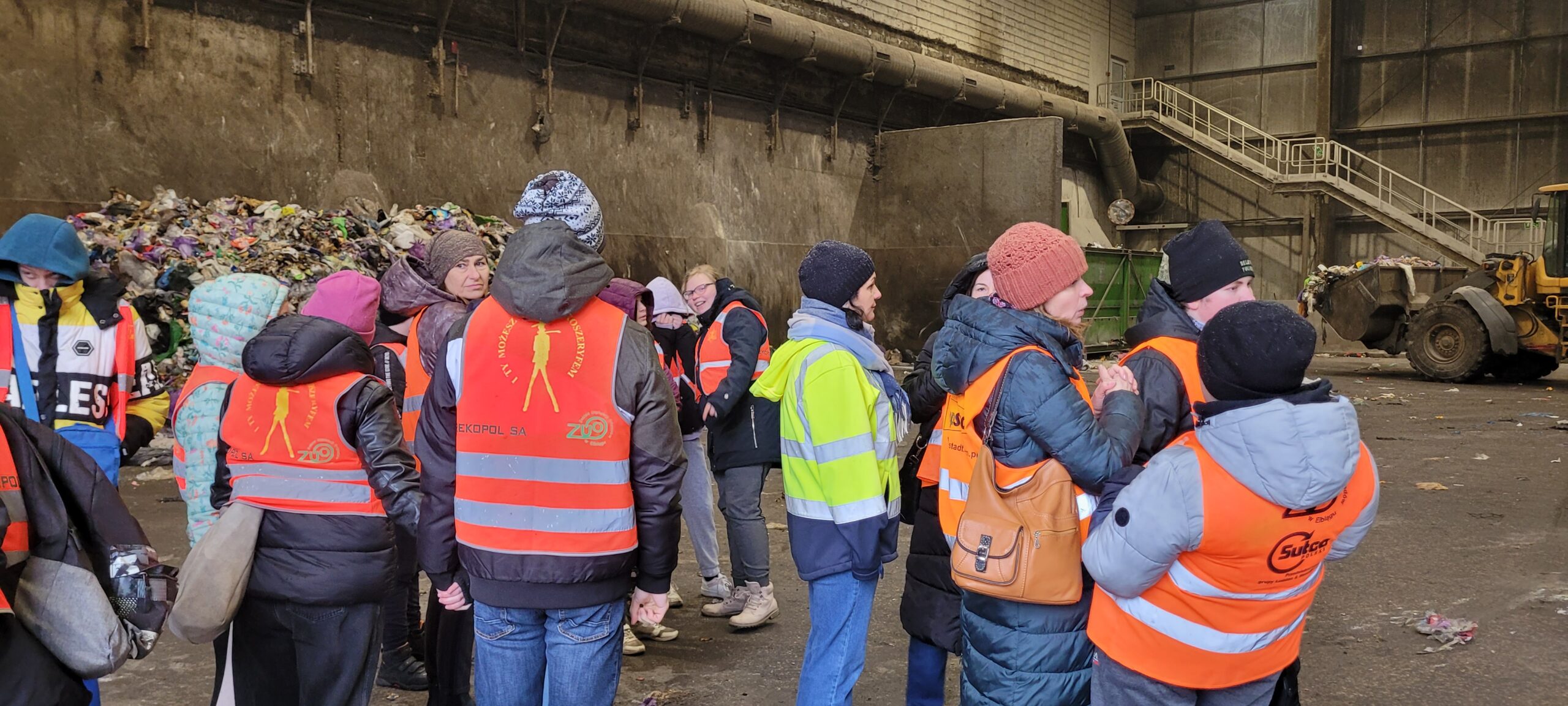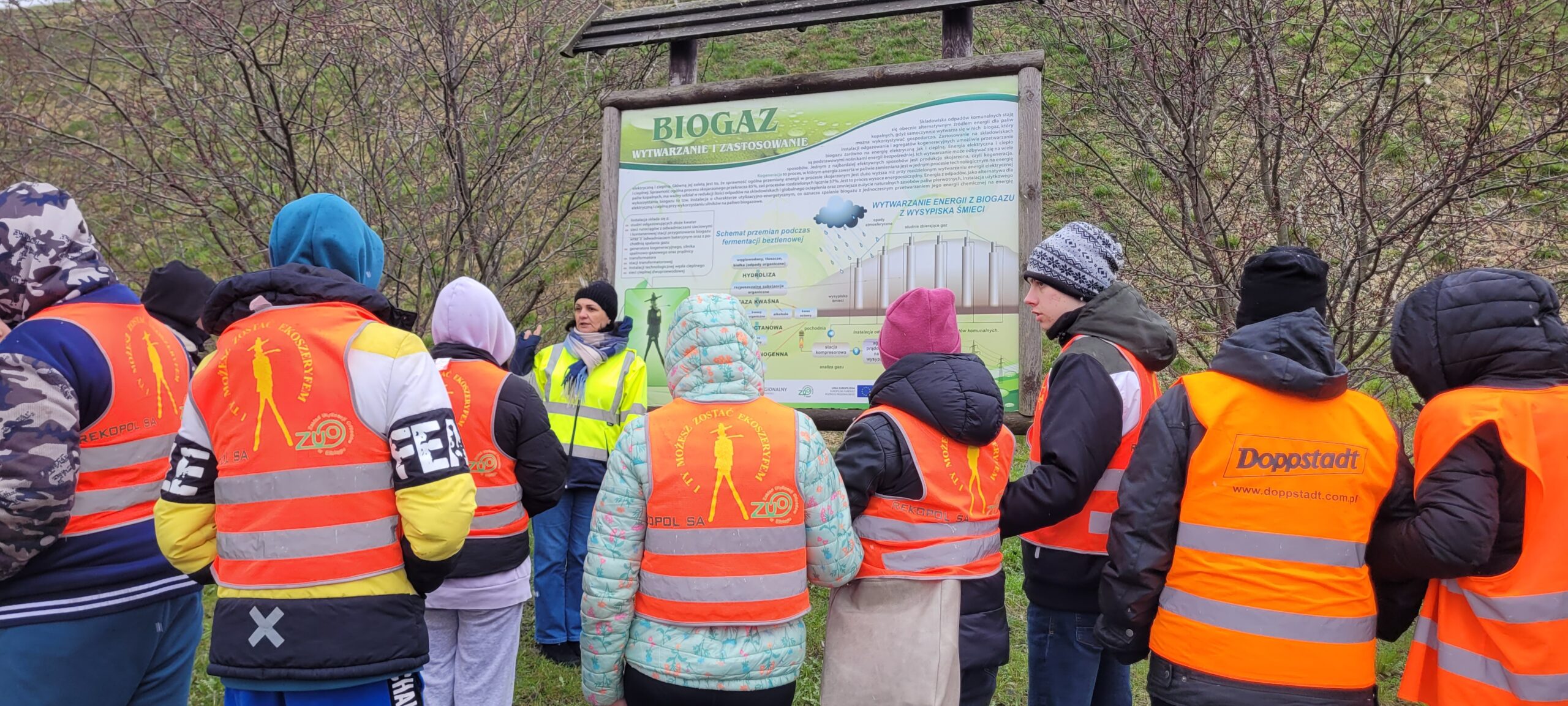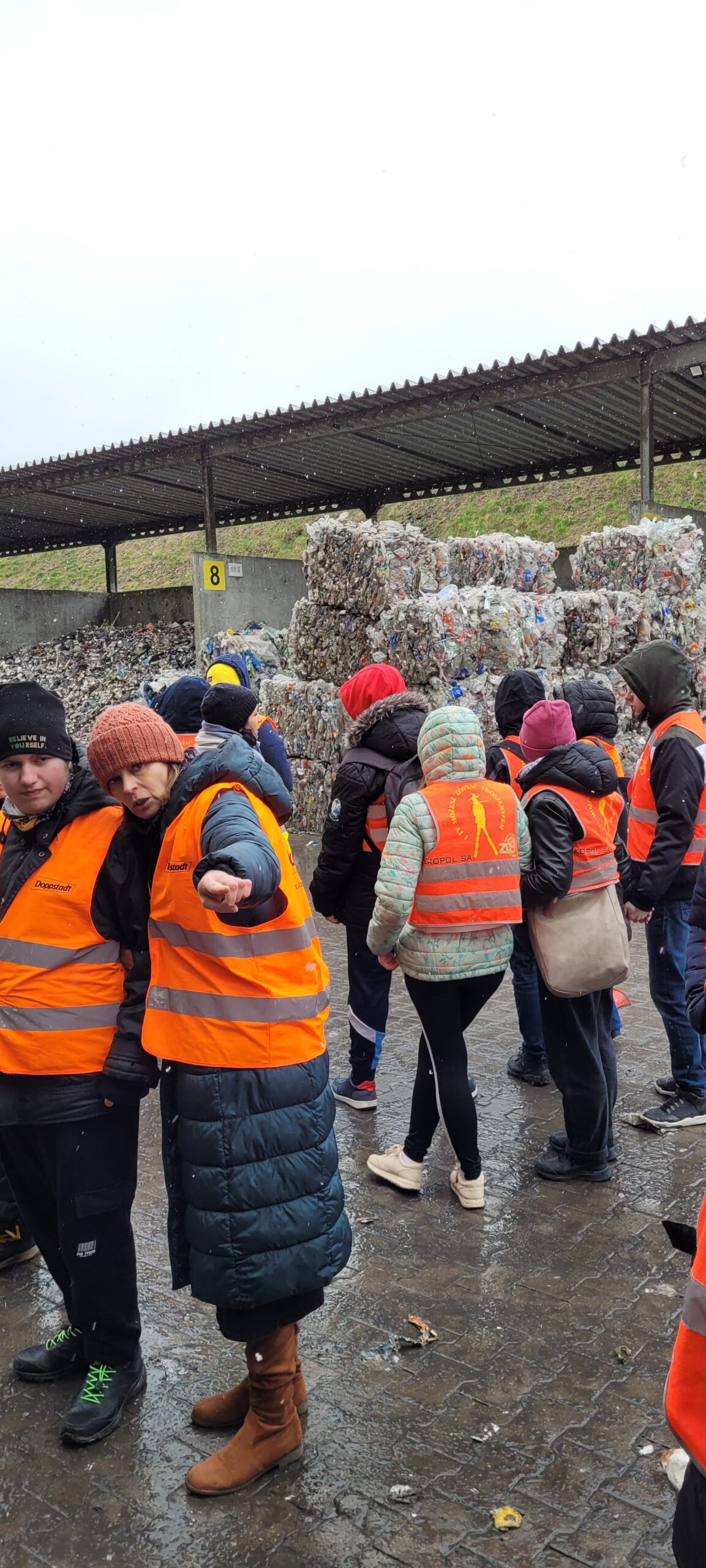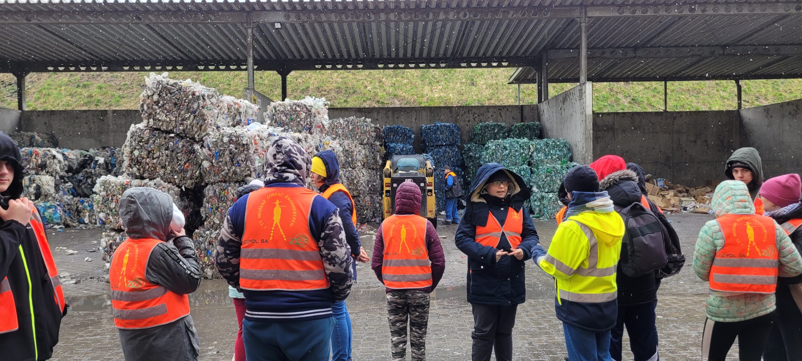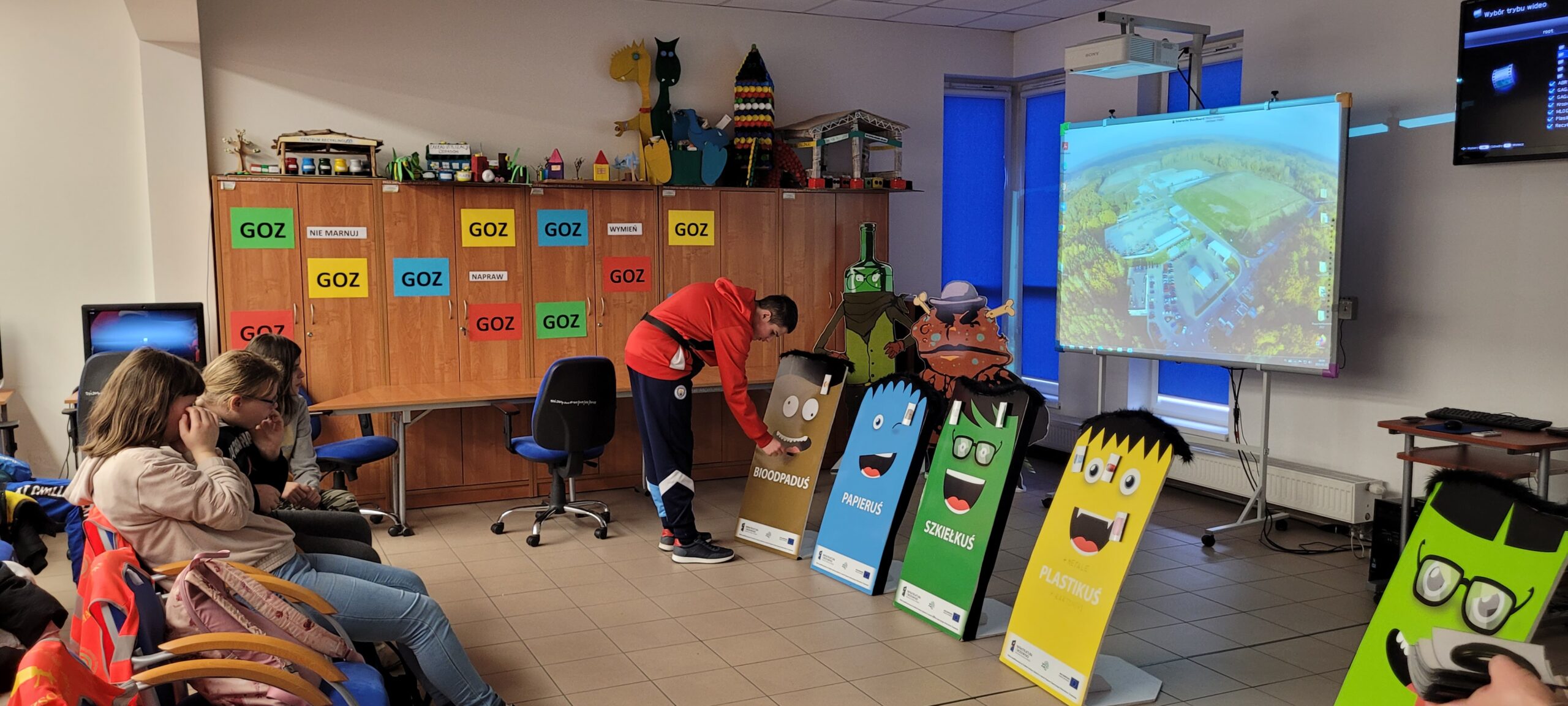 Podczas zajęć edukacyjnych uczniowie klas: 5a, 6a, 7b, 8b, 8d, 8c, 1b BSI i 2b BSI poznali sposoby gospodarowania odpadami komunalnymi, zwiedzając kolejne stanowiska obróbki technologicznej. Największe wrażenie wywarła na nas sortownia, kompostownia, składowania odpadów zmieszanych oraz produkcja biogazu. Dowiedzieliśmy się, że znaczny procent bioodpadów jest wykorzystywany do wytwarzania prądu. Innymi słowy, gospodarka obiegu zamkniętego, w którym nic się nie zmarnuje, a każdy surowiec krąży w środowisku według zasady: NIE MARNUJ!/ NAPRAWIAJ!/ WYMIENIAJ!, to lokalna mini elektrownia dla miasta Elbląg. Pani prelegent uświadomiła nam, iż każdy może mieć swój udział w produkcji prądu dla miasta, mądrze wykorzystując, np. używaną odzież czy zużyty sprzęt elektryczny. Idea trzech zasad służy ograniczaniu produkcji odpadów, a to w dużej mierze zależy od nas samych.