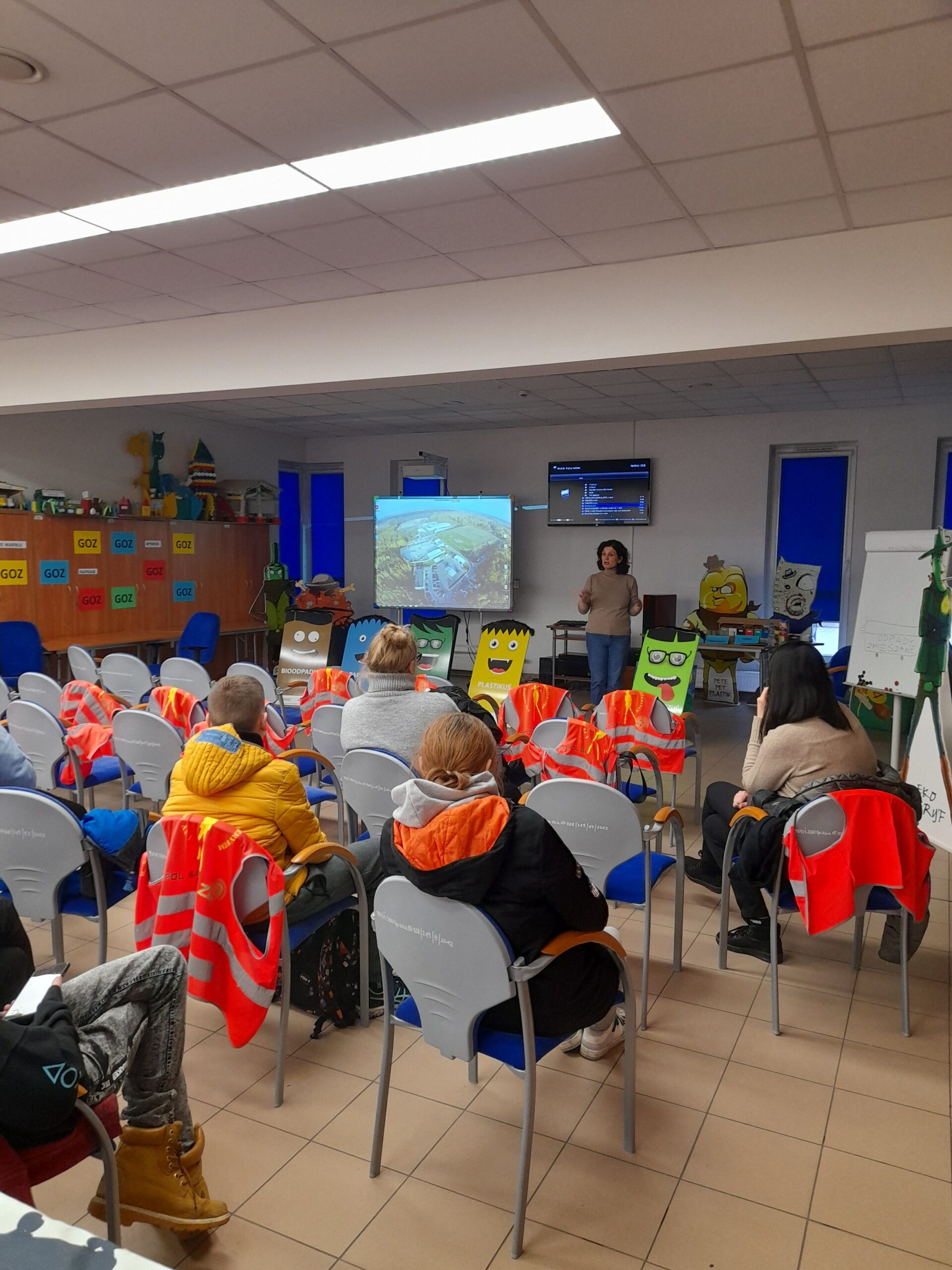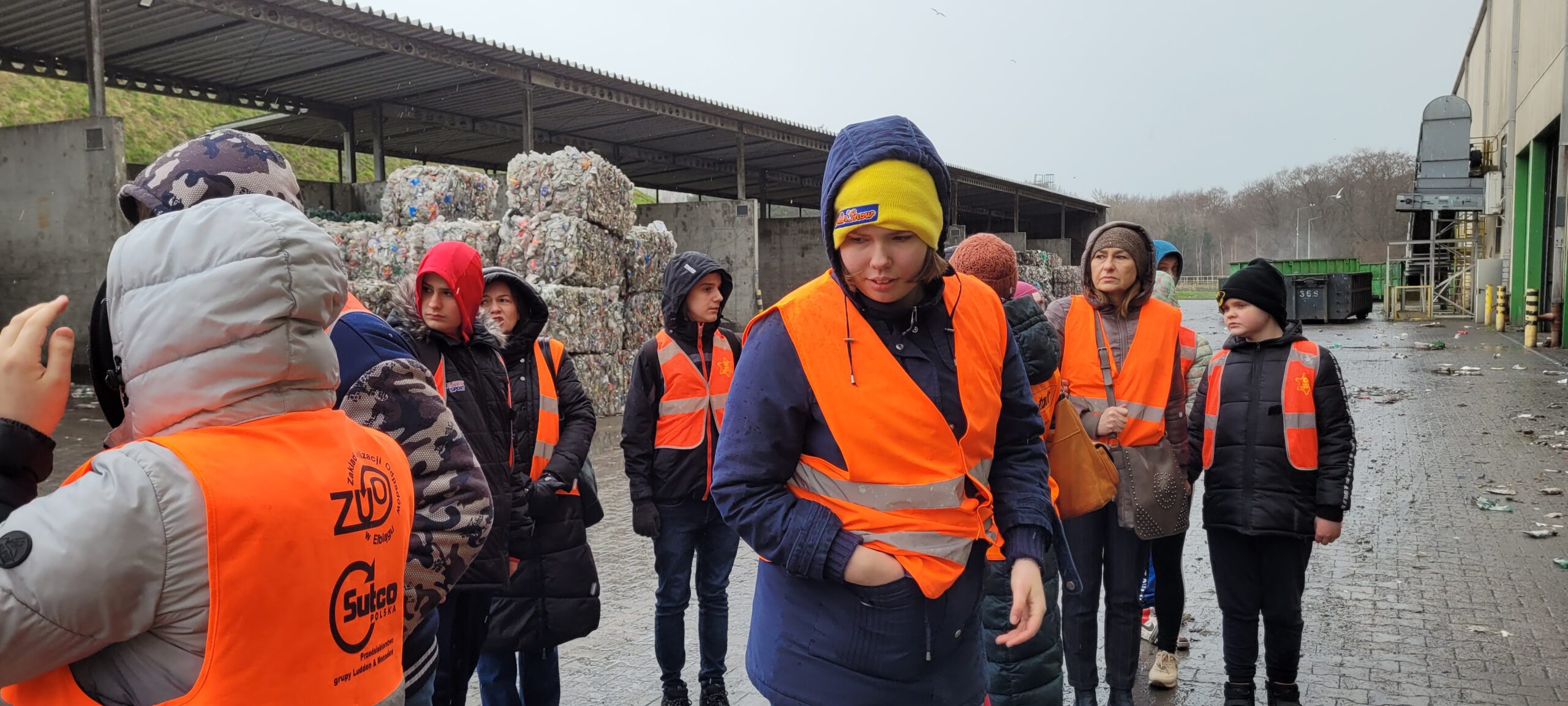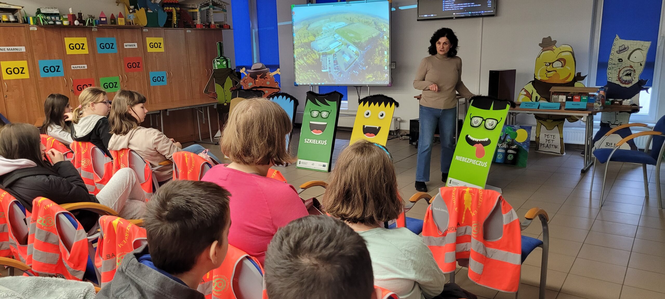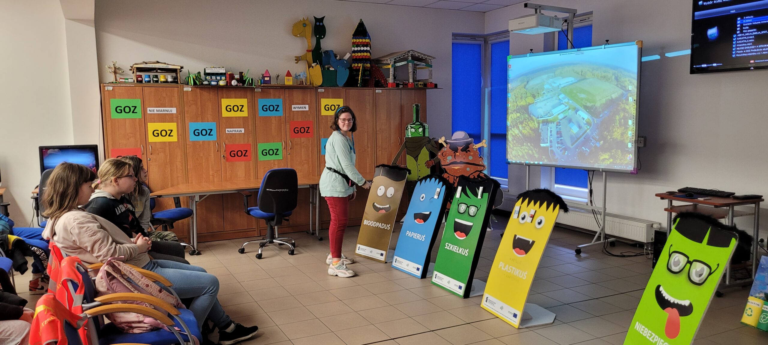 Podczas zajęć edukacyjnych uczniowie klas: 5a, 6a, 7b, 8b, 8d, 8c, 1b BSI i 2b BSI poznali sposoby gospodarowania odpadami komunalnymi, zwiedzając kolejne stanowiska obróbki technologicznej. Największe wrażenie wywarła na nas sortownia, kompostownia, składowania odpadów zmieszanych oraz produkcja biogazu. Dowiedzieliśmy się, że znaczny procent bioodpadów jest wykorzystywany do wytwarzania prądu. Innymi słowy, gospodarka obiegu zamkniętego, w którym nic się nie zmarnuje, a każdy surowiec krąży w środowisku według zasady: NIE MARNUJ!/ NAPRAWIAJ!/ WYMIENIAJ!, to lokalna mini elektrownia dla miasta Elbląg. Pani prelegent uświadomiła nam, iż każdy może mieć swój udział w produkcji prądu dla miasta, mądrze wykorzystując, np. używaną odzież czy zużyty sprzęt elektryczny. Idea trzech zasad służy ograniczaniu produkcji odpadów, a to w dużej mierze zależy od nas samych.