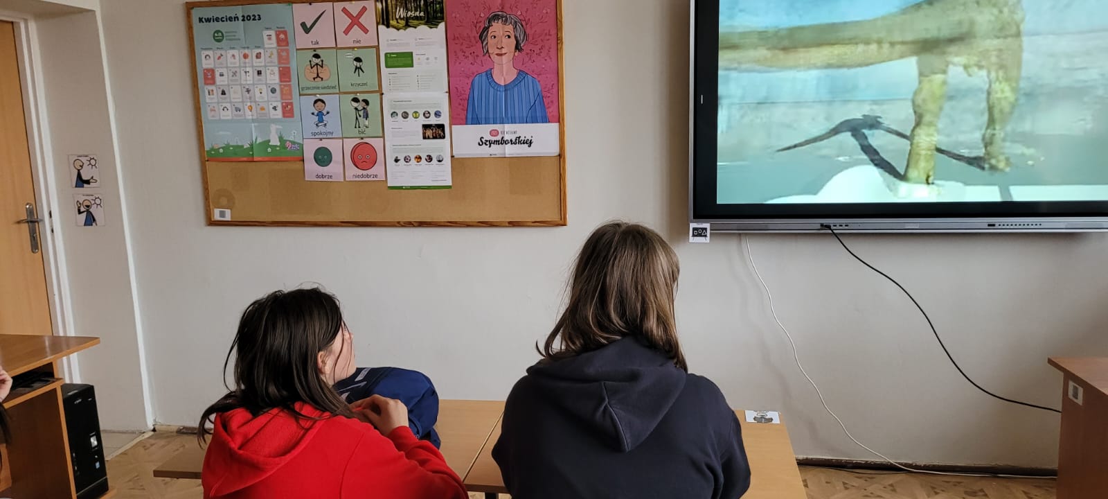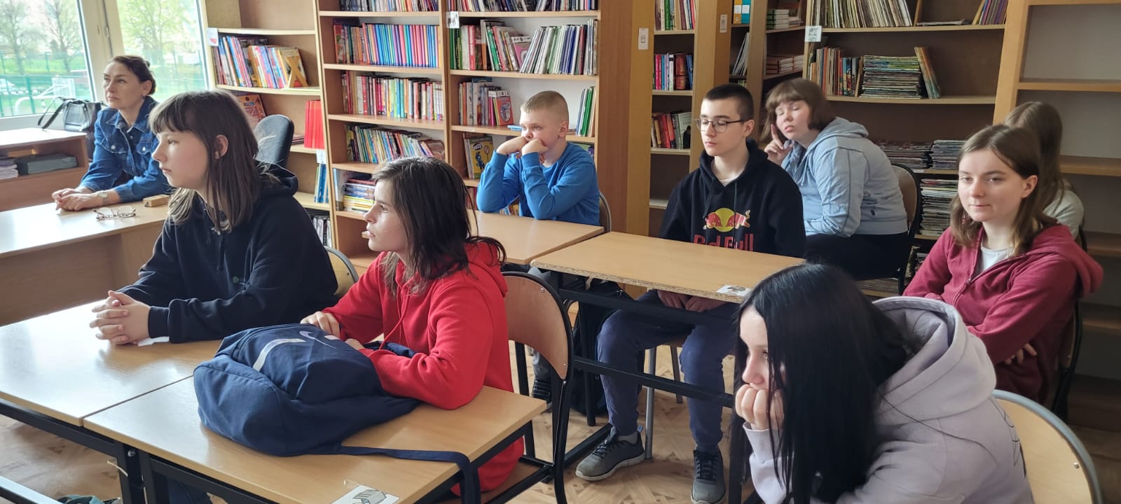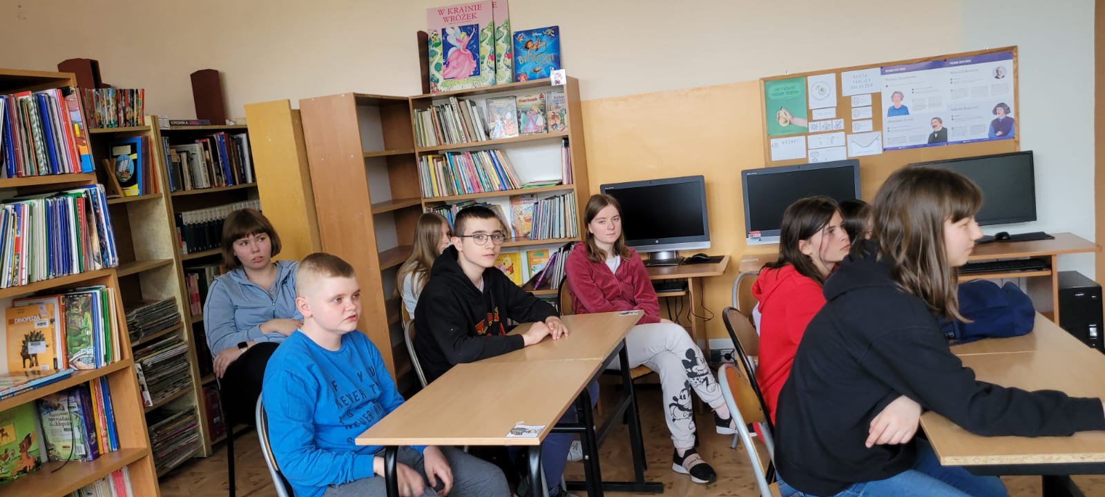 Wyjątkową przygodę z historią książki w tle odbyli uczniowie klasy 5a i 8b SP. Z okazji Światowego Dnia Książki i Praw Autorskich biblioteka szkolna zamieniła się w wehikuł czasu. Pani Magdalena Janiak prowadziła uczniów przez różne epoki i kraje, pokazując, że historia rozwoju książki  jest nie tylko bardzo długa, ale też niezwykle ciekawa. Uczniowie podczas prezentacji na temat „Historii książki” zapoznali się z etapami powstawania książki od czasów najdawniejszych do współczesnych. Już na samym początku dowiedzieli się, czym było pismo obrazkowe. Mogli też przyjrzeć się pierwszym książkom, które pisane były na rozmaitych materiałach: tabliczkach z gliny, jedwabiu, papirusie (wykonanym z trzciny), pergaminie (skórach zwierzęcych) i papierze (z rozdrobnionych szmat). Następnie uczniowie przenieśli się do starożytnej Grecji i Rzymu, gdzie poznali takie pojęcia jak: tabliczka woskowa i zwój.  Kolejnym „przystankiem” w podróży było średniowiecze. Tu nie mogło zabraknąć historii o pięknie zdobionych rękopisach i kodeksach. Z epoki średniowiecza uczniowie przenieśli się do czasów książki drukowanej. Dowiedzieli się, że przełomem w historii książki było wynalezienie druku przez Gutenberga. Dalsza część zajęć przedstawiała historię powstania książek drukowanych od  XVIII  do XX wieku. Podróż po historii książki zakończyła się w czasach współczesnych. Uczniowie poznali popularne obecnie formy książek, czyli audiobooki oraz książki elektroniczne (e-booki).